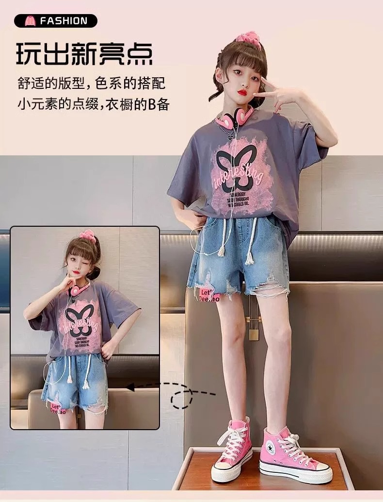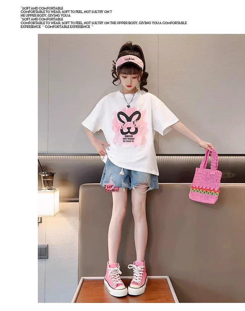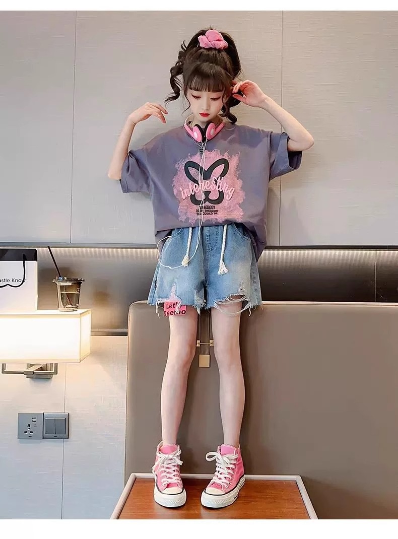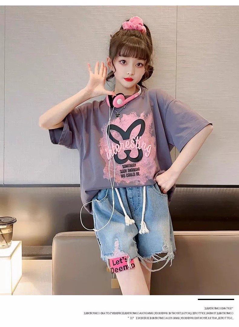 소녀 여름 캐주얼베이스 셔츠 2024 새로운 유행 어린이 세련 된 반팔 티셔츠 아동복 소녀 탑스토어 가기