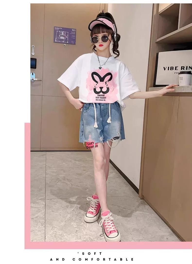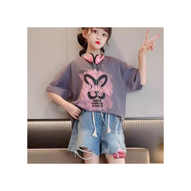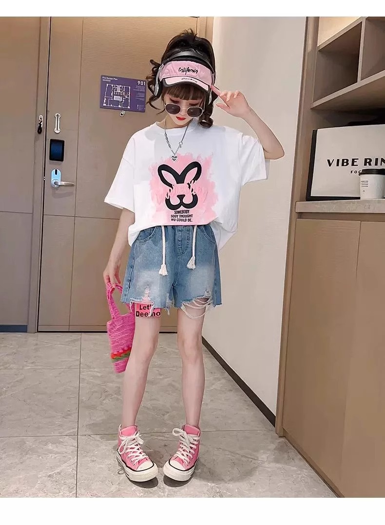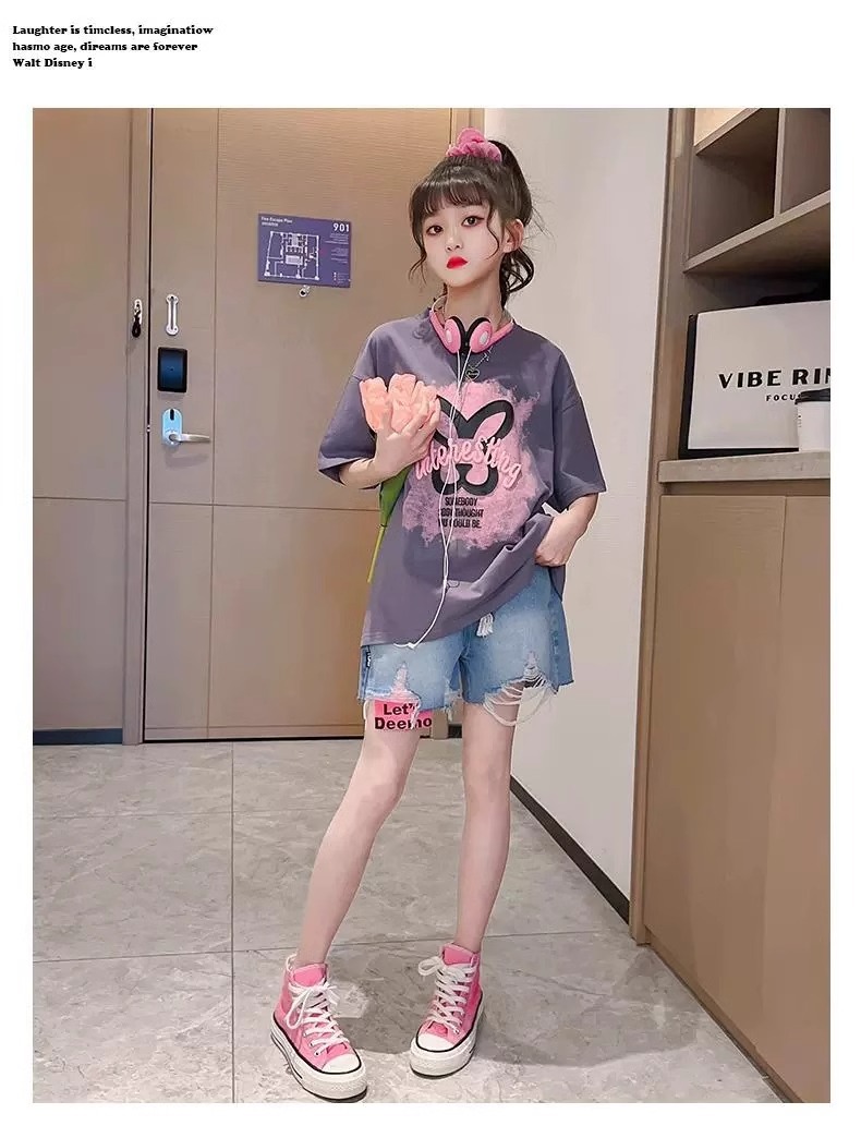 소녀 여름 캐주얼베이스 셔츠 2024 새로운 유행 어린이 세련 된 반팔 티셔츠 아동복 소녀 탑스토어 가기