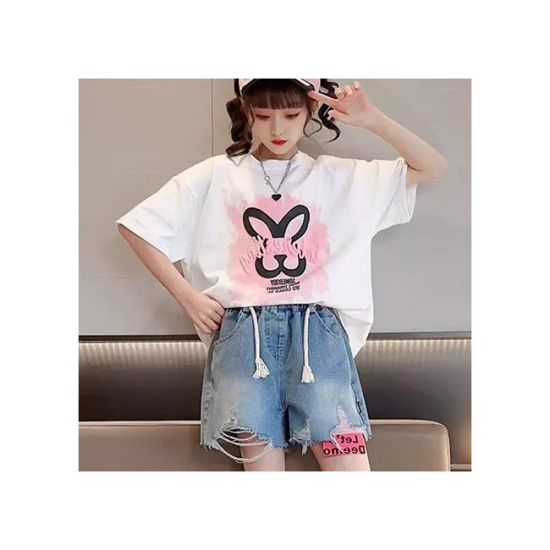 소녀 여름 캐주얼베이스 셔츠 2024 새로운 유행 어린이 세련 된 반팔 티셔츠 아동복 소녀 탑