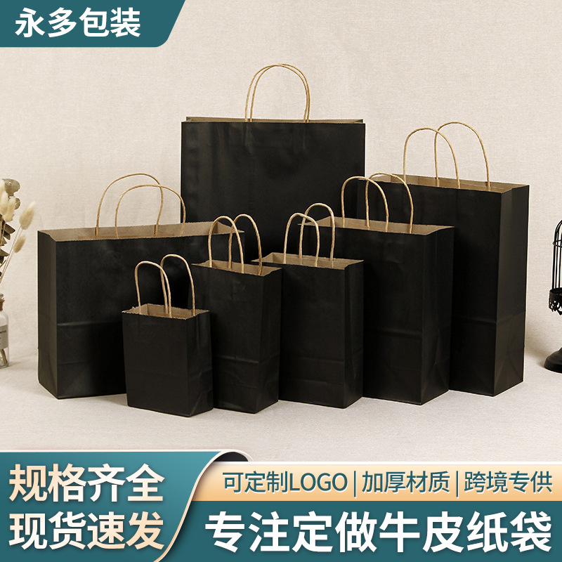 재고 있음 휴대용 종이 봉투 도매 검은 쇼핑 핸드백 크리스마스 선물 포장 크래프트 종이 봉투 인쇄 로고스토어 가기
