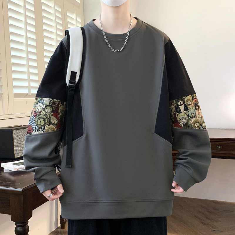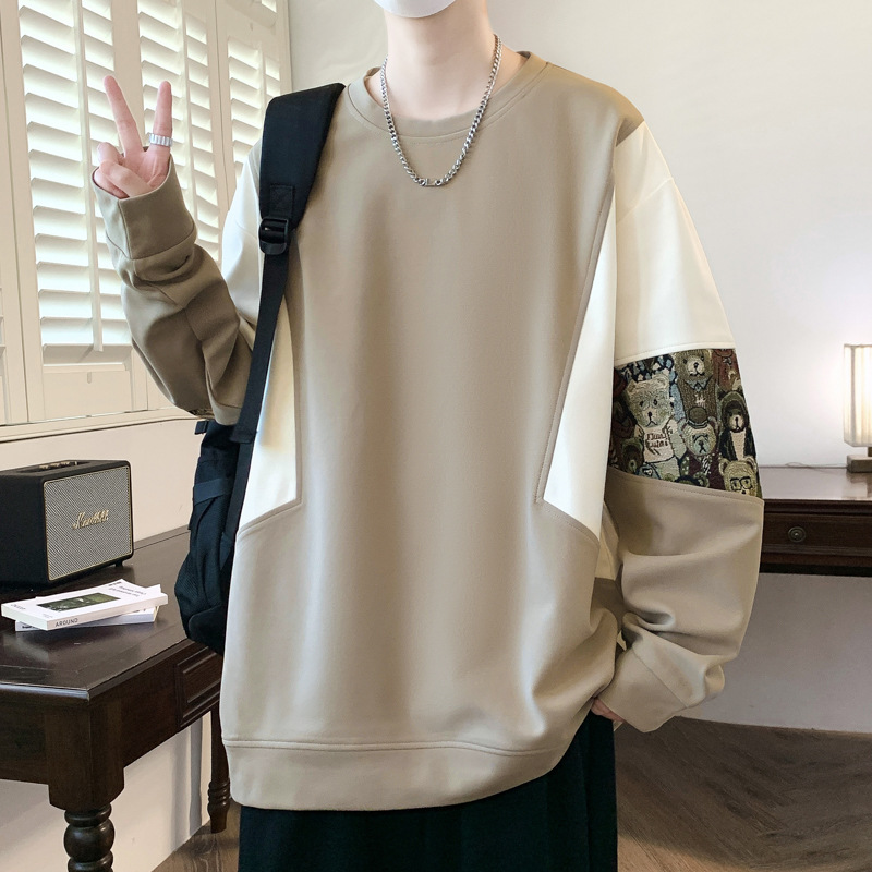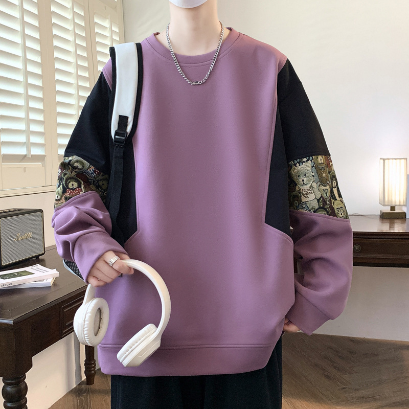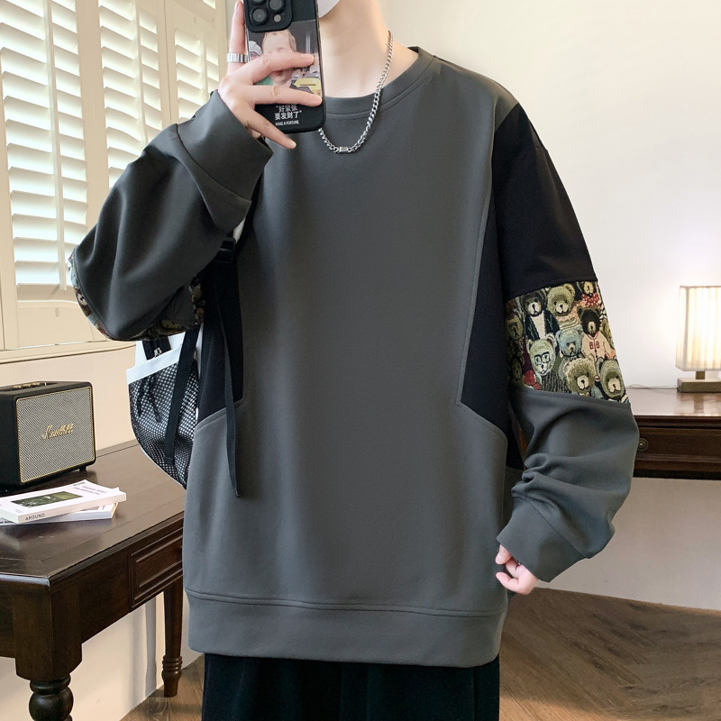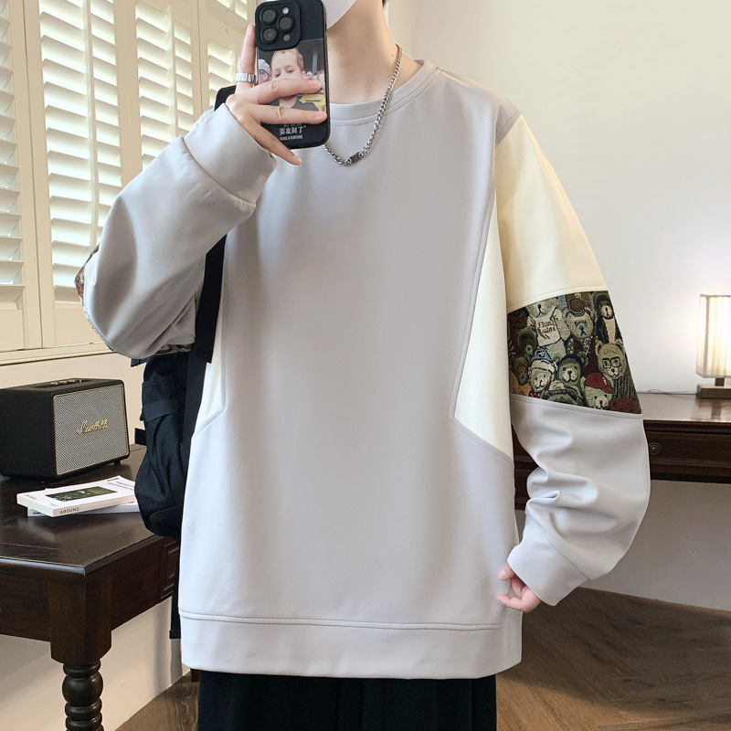 새로운 스웨트 셔츠 가을과 봄 한국 스타일 라운드 넥 패션 트렌디 프린트 남성용 그라디언트 컬러 블록 캐주얼 탑스토어 가기