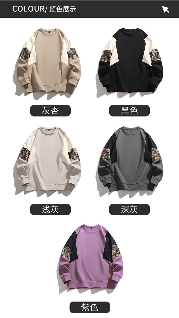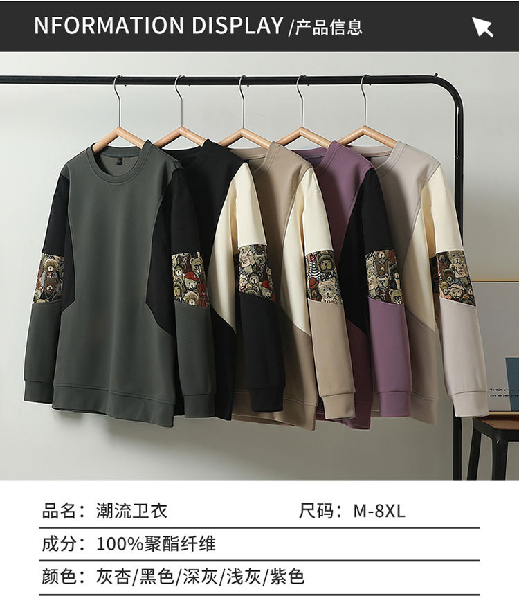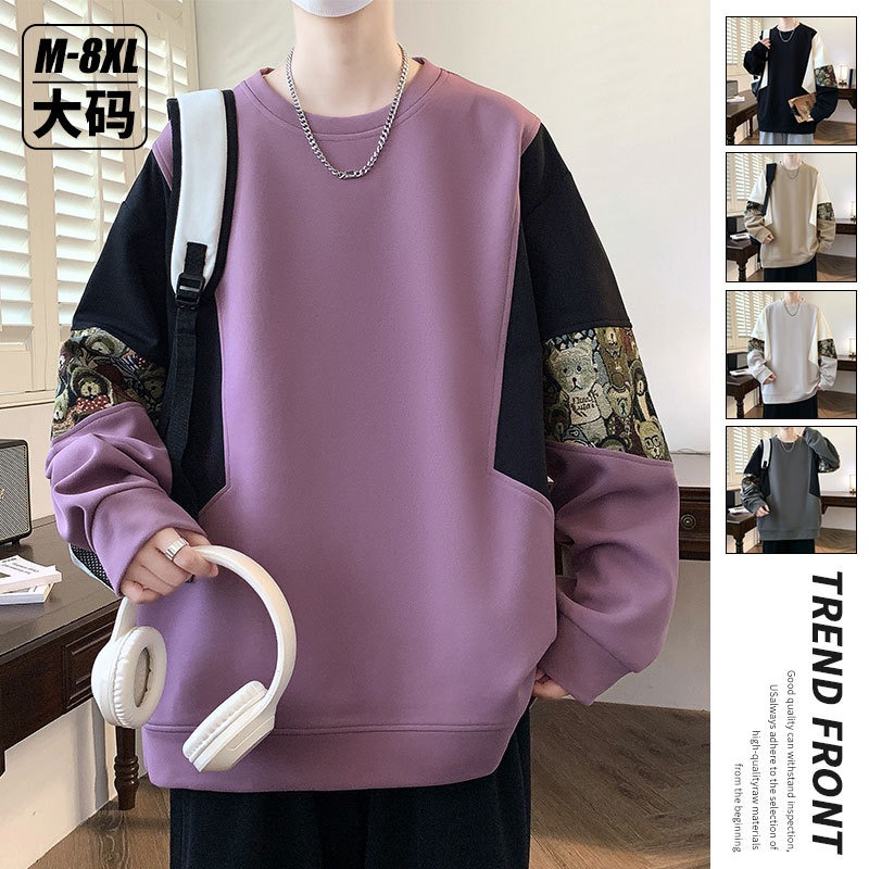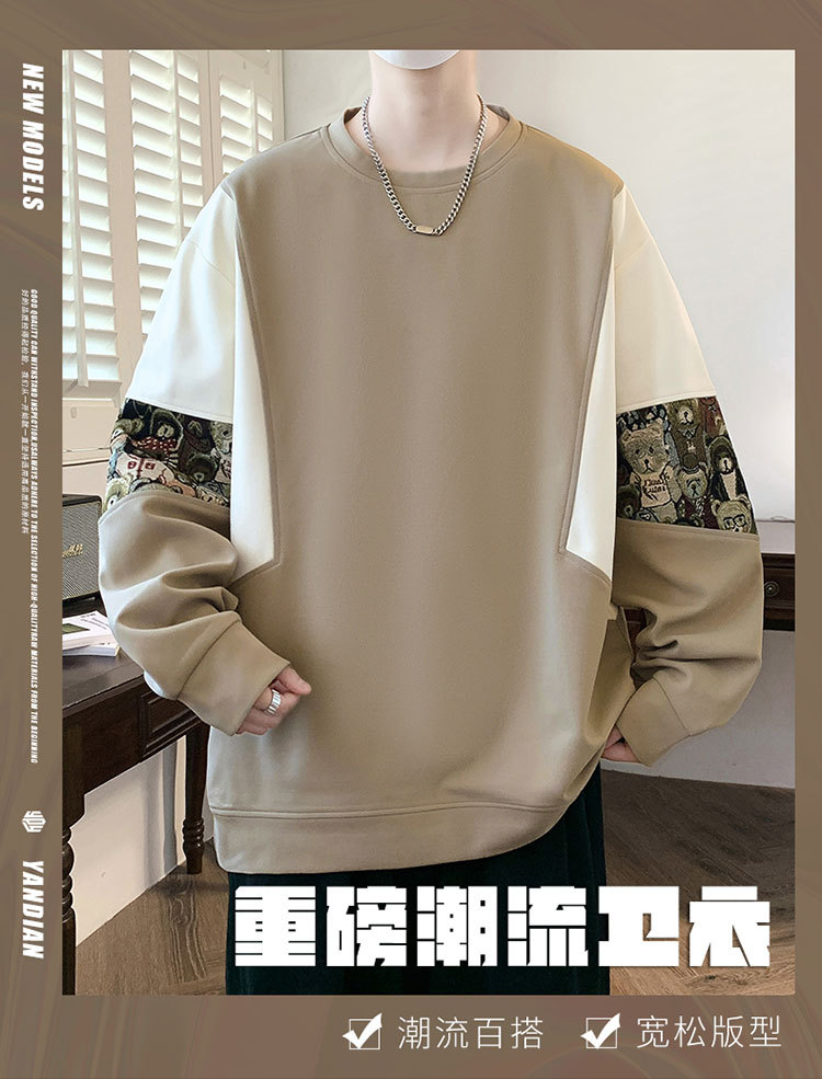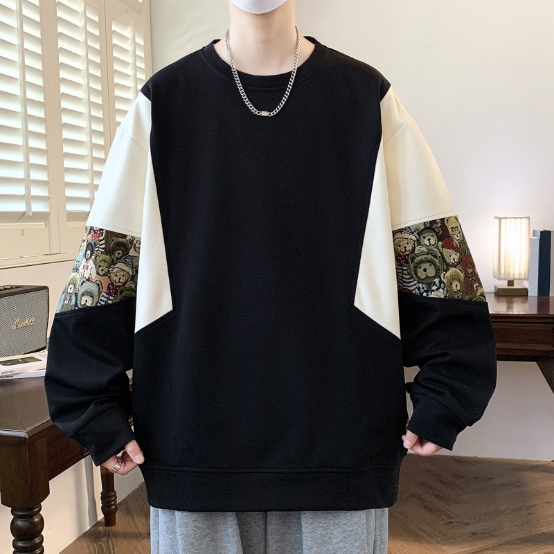 새로운 스웨트 셔츠 가을과 봄 한국 스타일 라운드 넥 패션 트렌디 프린트 남성용 그라디언트 컬러 블록 캐주얼 탑스토어 가기