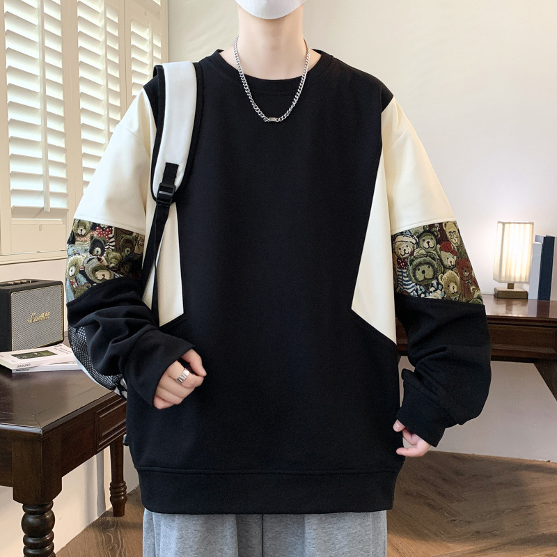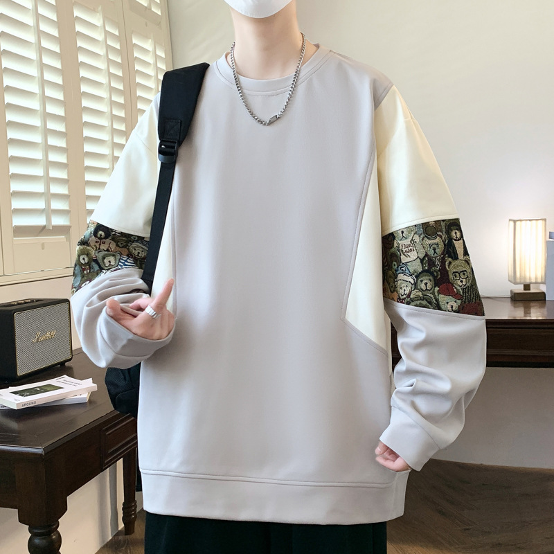 새로운 스웨트 셔츠 가을과 봄 한국 스타일 라운드 넥 패션 트렌디 프린트 남성용 그라디언트 컬러 블록 캐주얼 탑