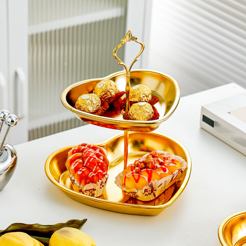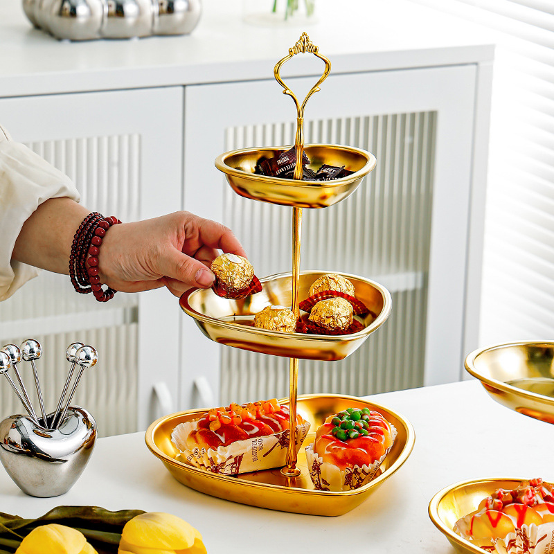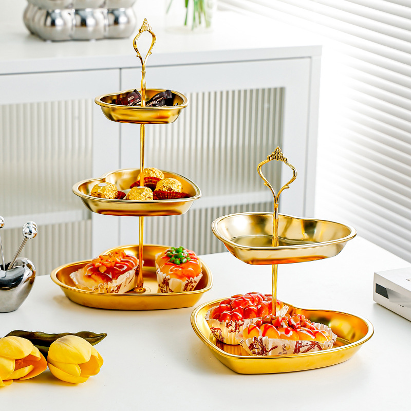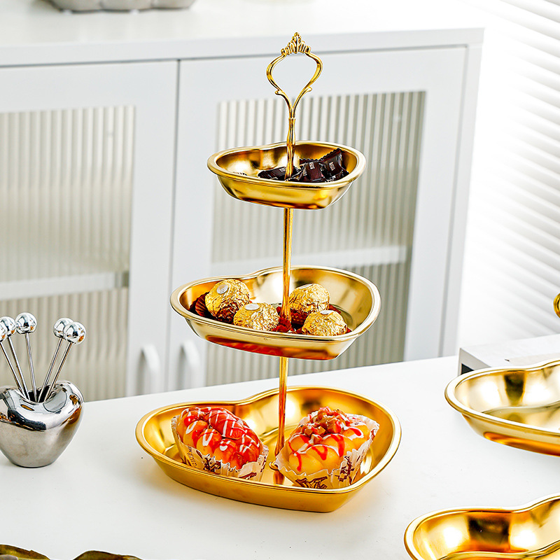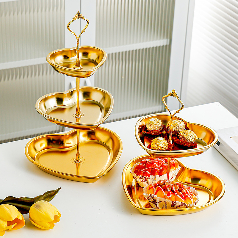 사랑 황금 멀티 레이어 스테인레스 스틸 문자열 디저트 테이블 오후 차 과일 플레이트 테이블 케이크 생일 과일 플레이트 문자열