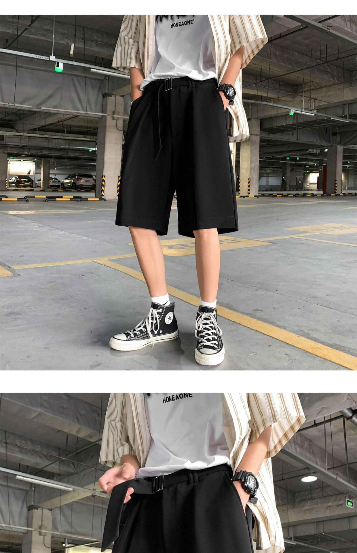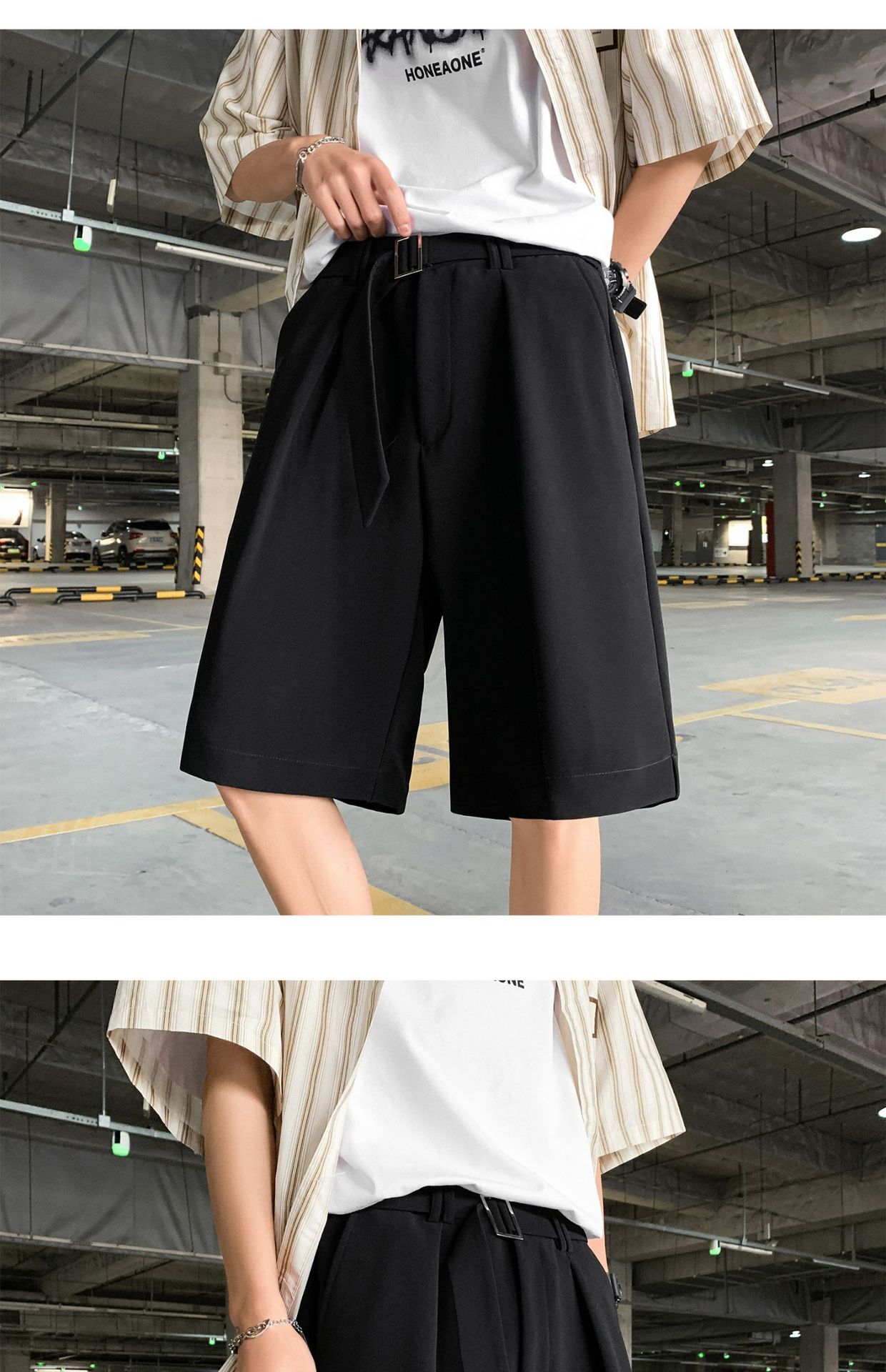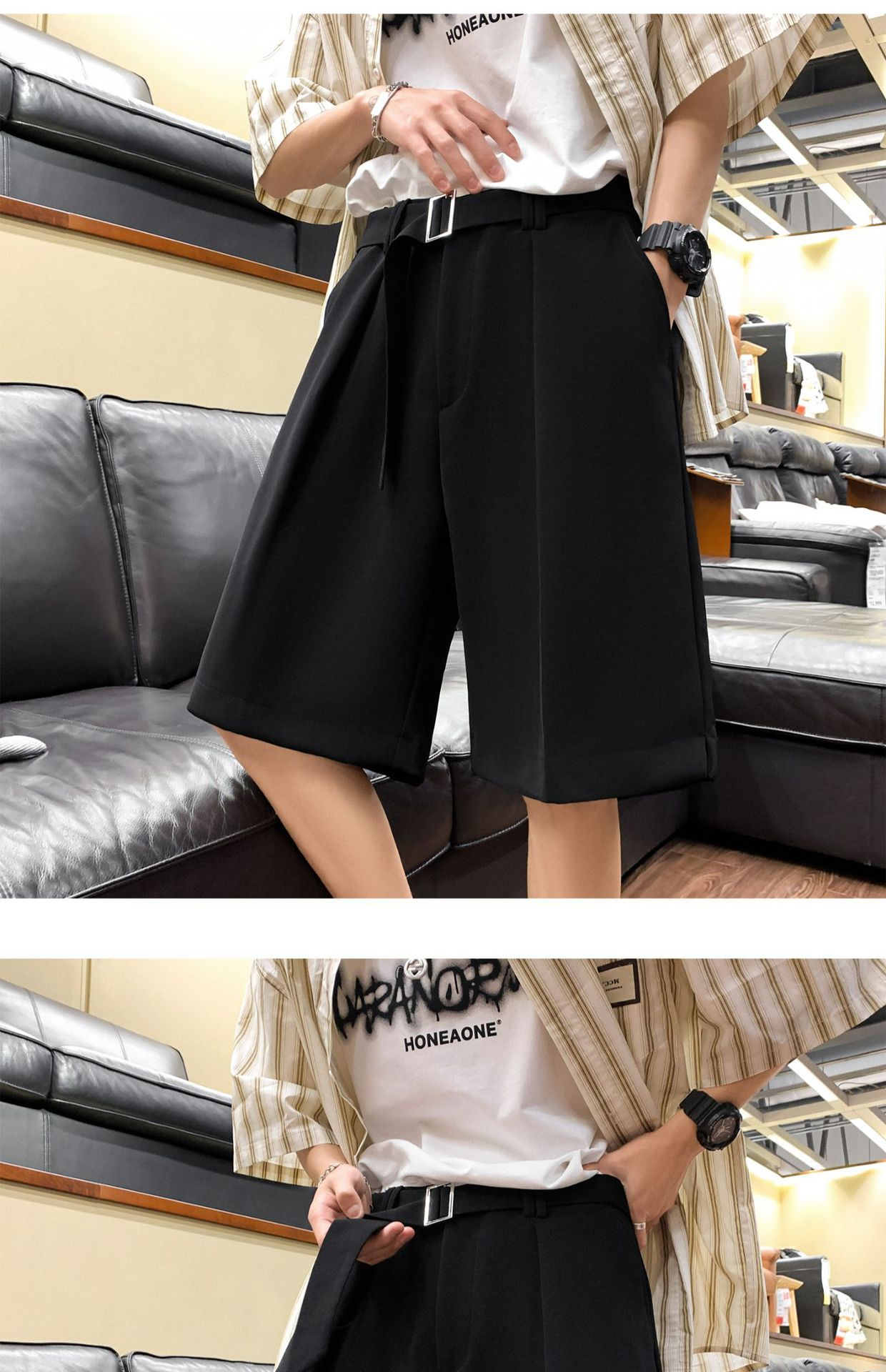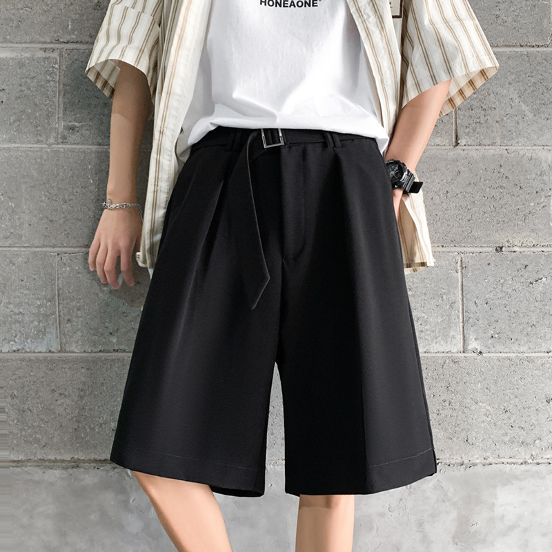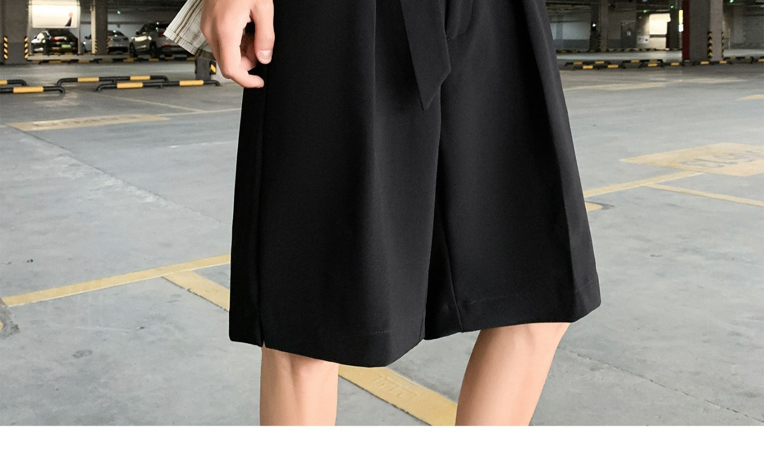플러스 사이즈 블랙 정장 반바지 남성 여름 트렌디 브랜드 하이 엔드 작은 서양 바지 루즈 캐주얼 아이스 실크 무릎 위 반바지