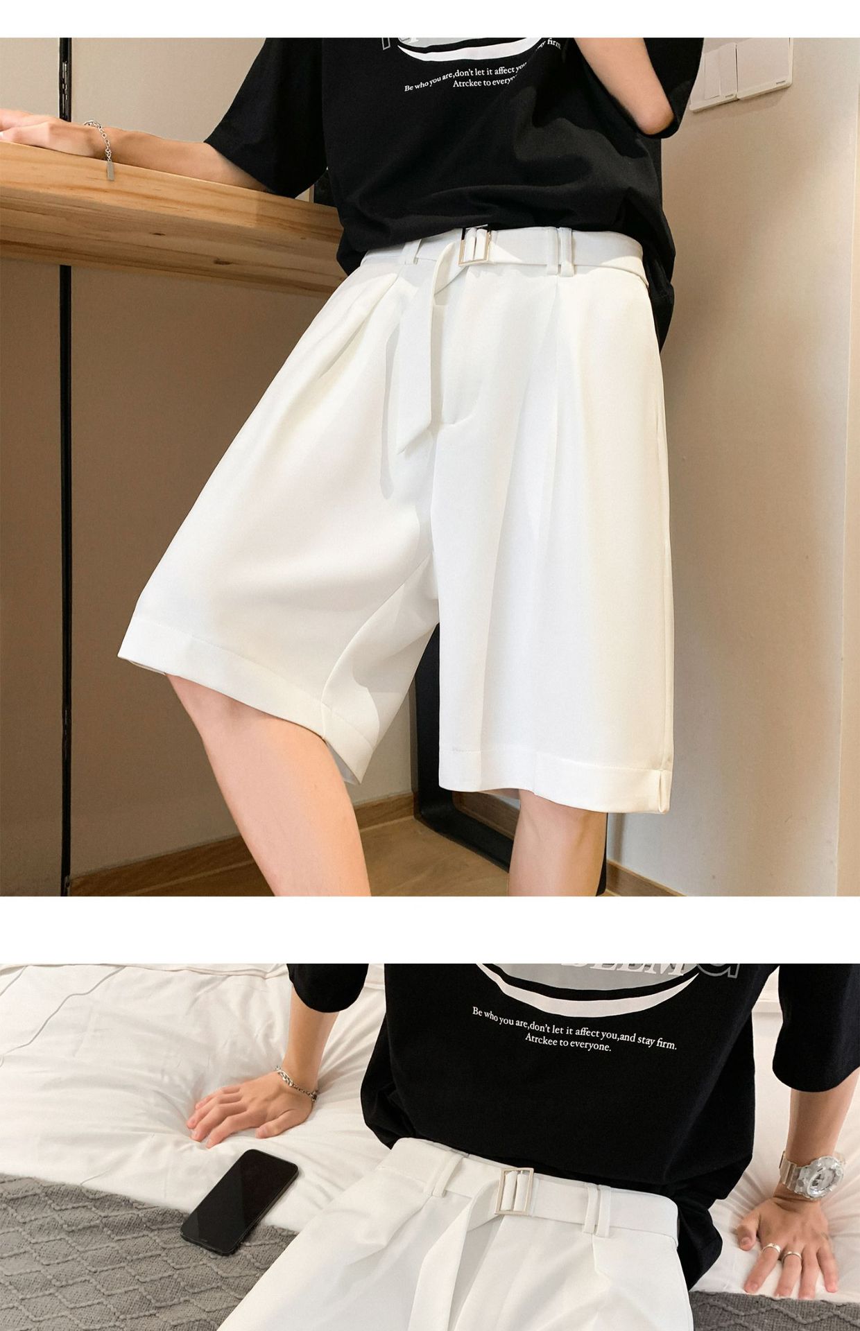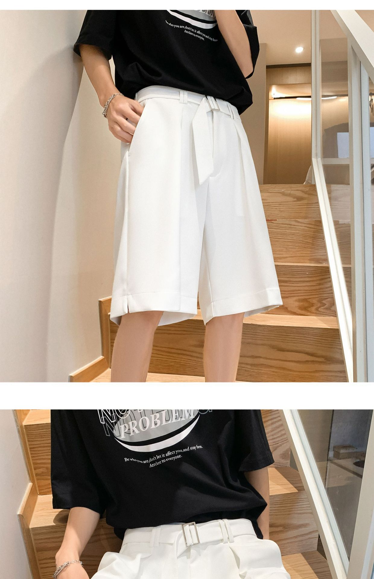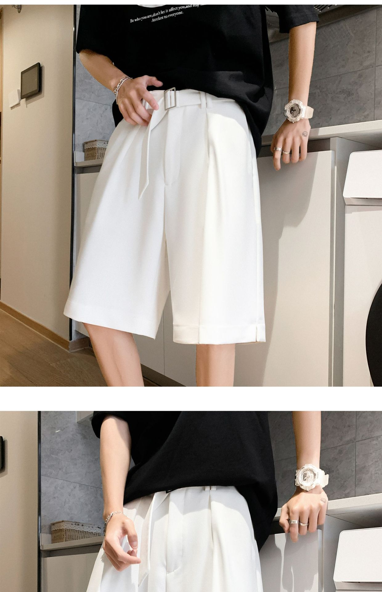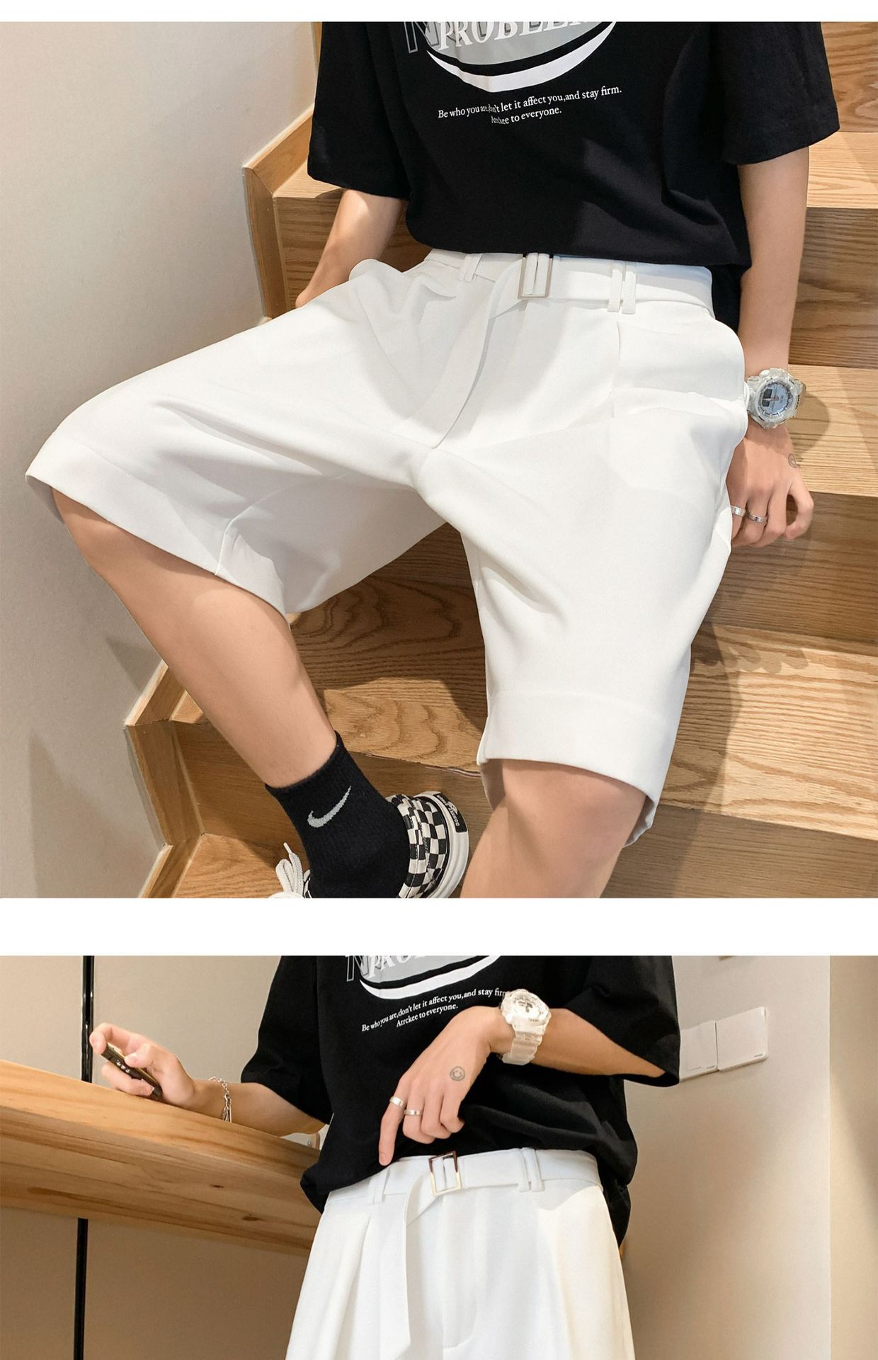 플러스 사이즈 블랙 정장 반바지 남성 여름 트렌디 브랜드 하이 엔드 작은 서양 바지 루즈 캐주얼 아이스 실크 무릎 위 반바지