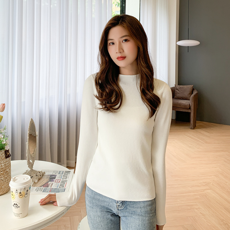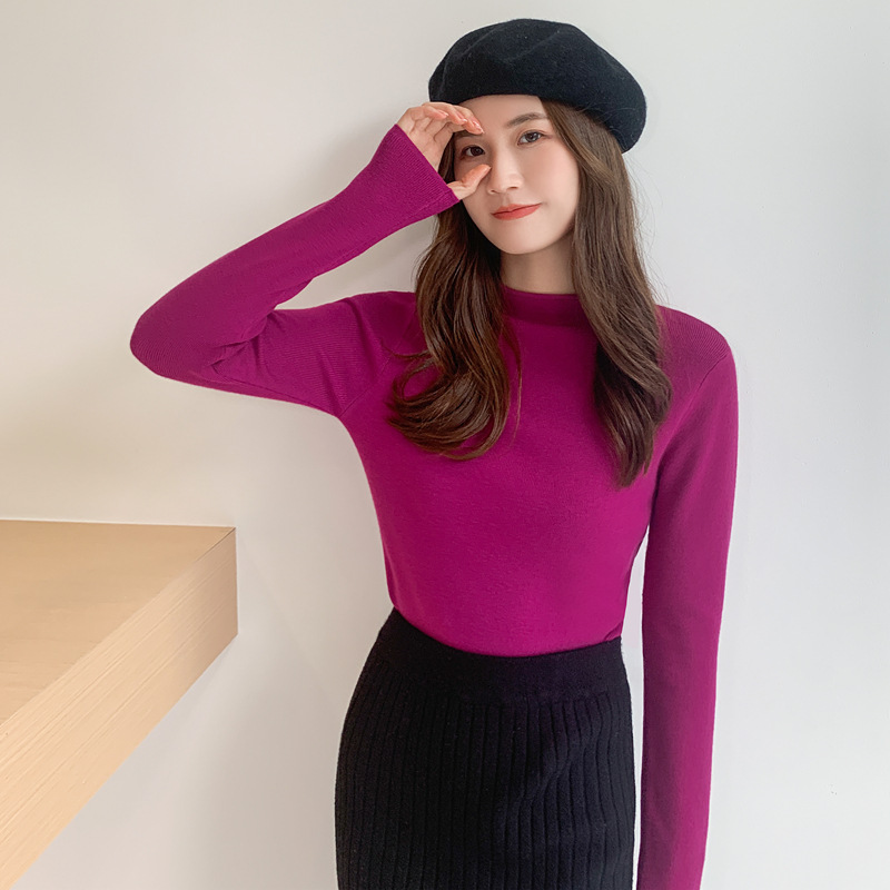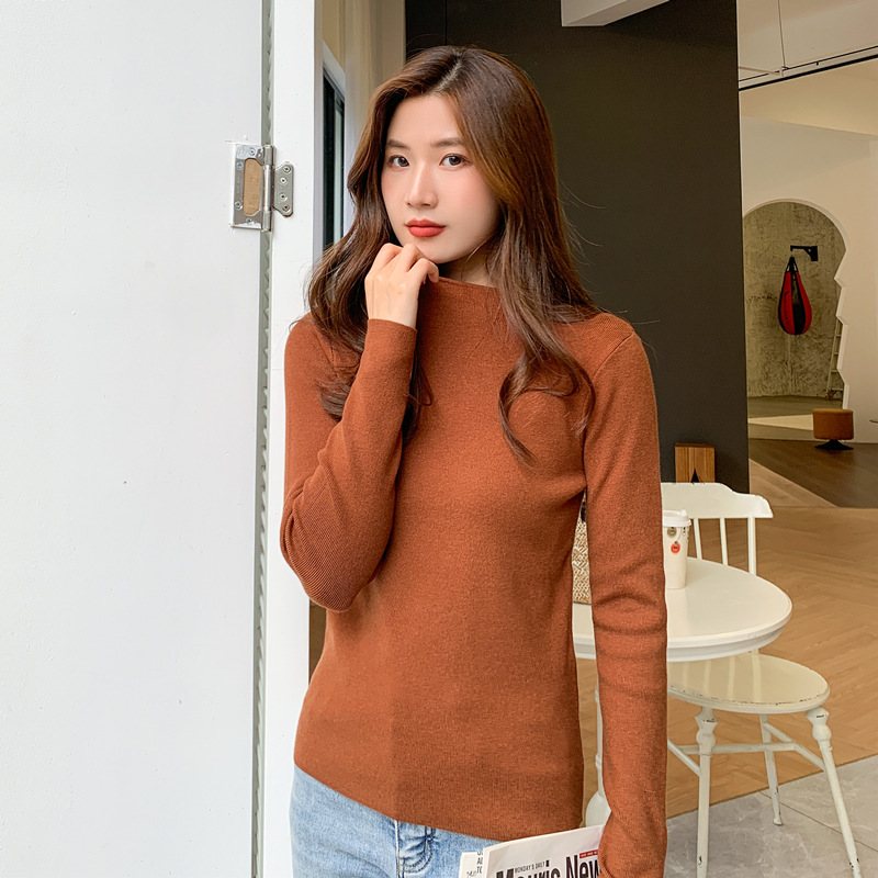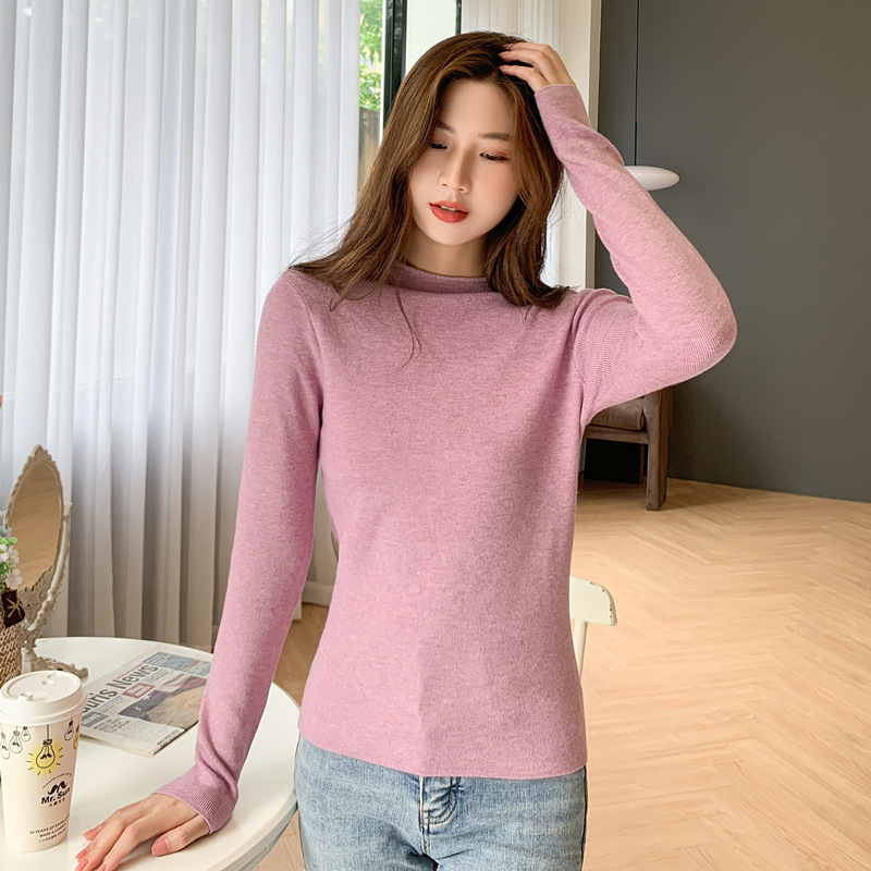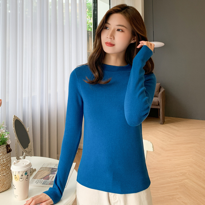 라이브 방송 라운드 넥 솔리드 컬러 니트베이스 셔츠 봄과 가을 새로운 여성의 긴 소매 기본 내부 슬림 스웨터