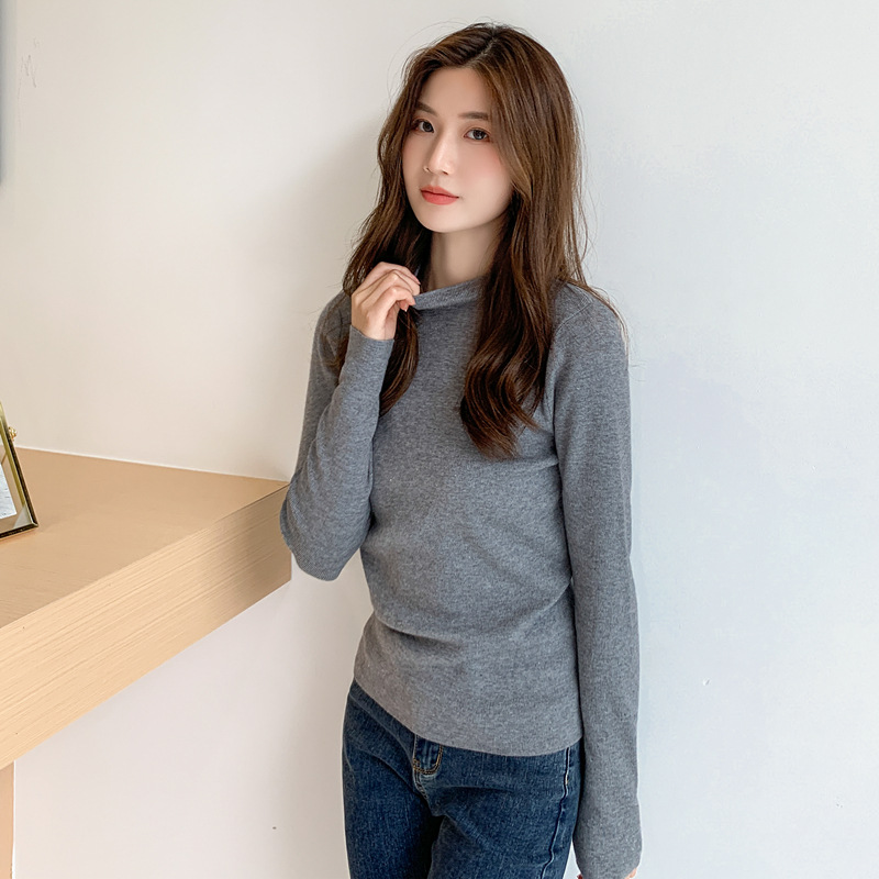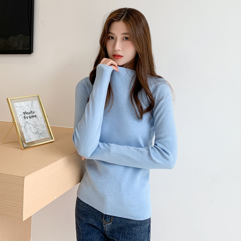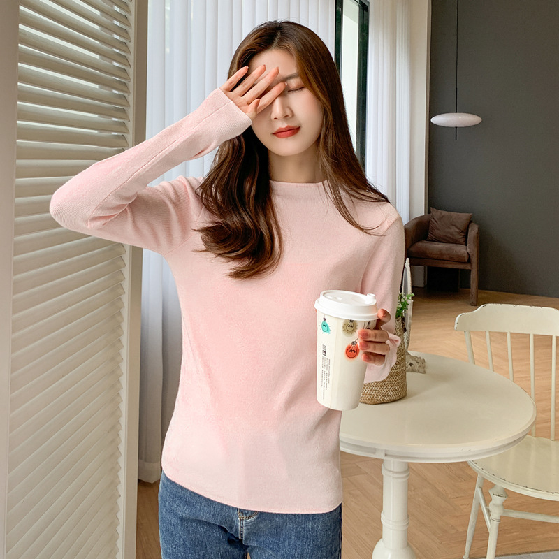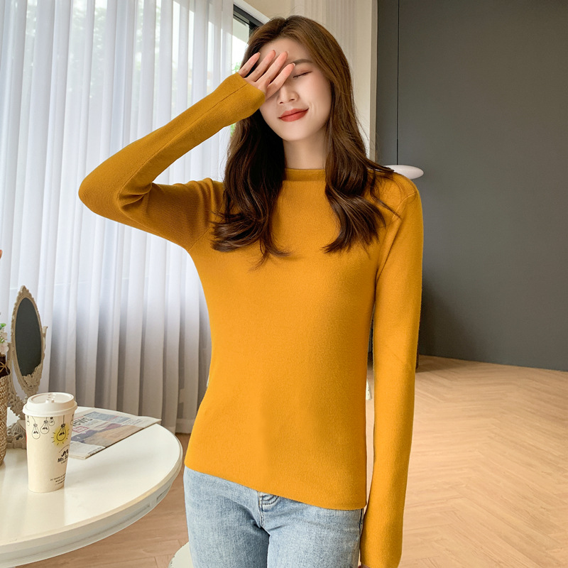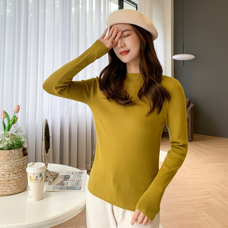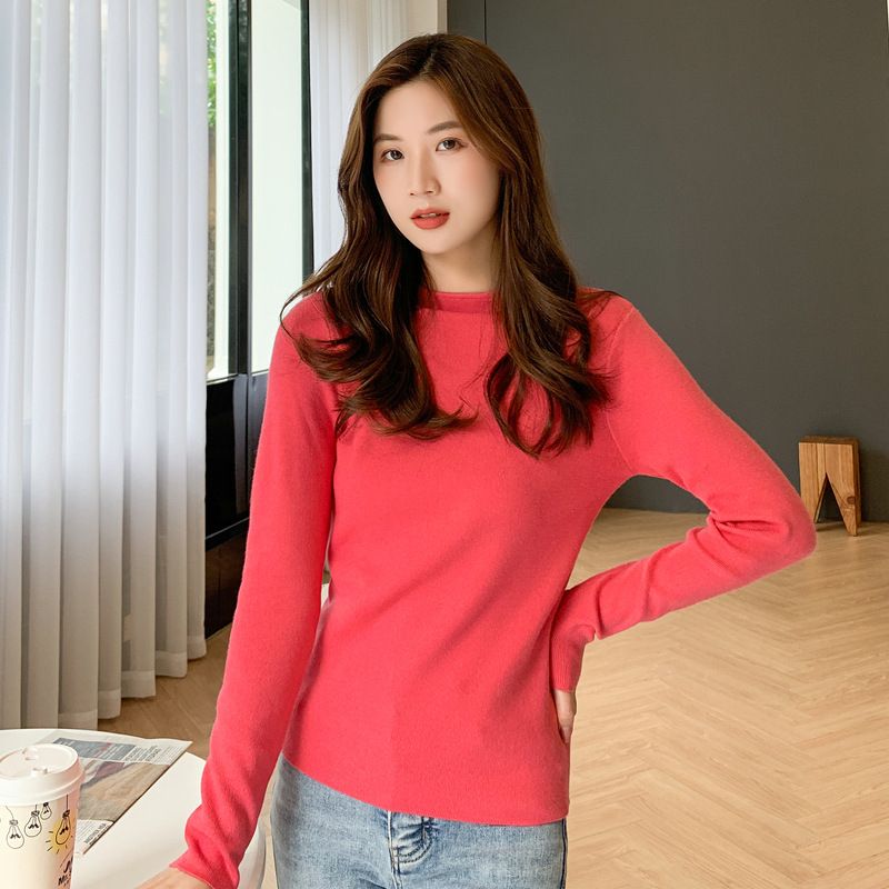 라이브 방송 라운드 넥 솔리드 컬러 니트베이스 셔츠 봄과 가을 새로운 여성의 긴 소매 기본 내부 슬림 스웨터스토어 가기