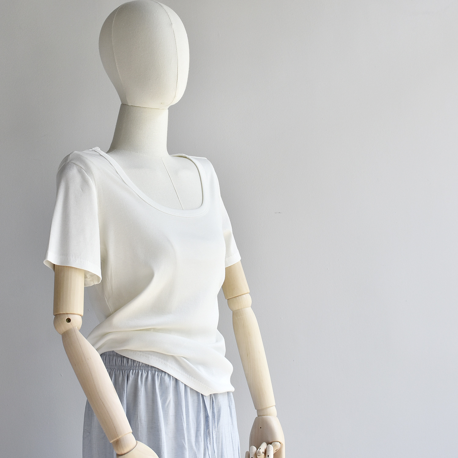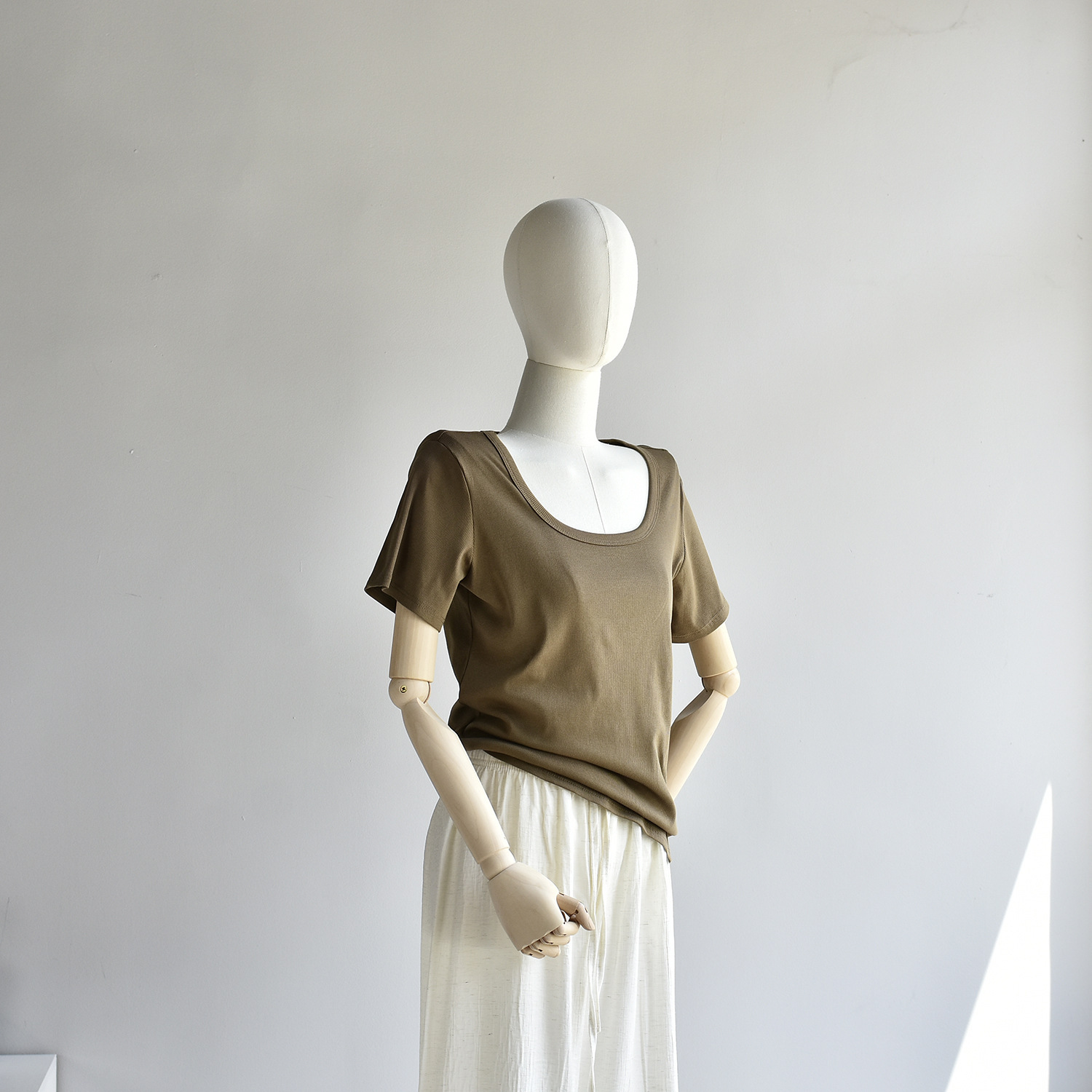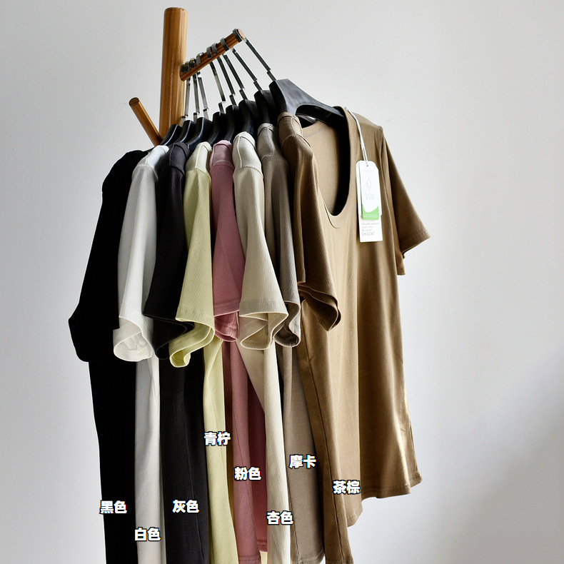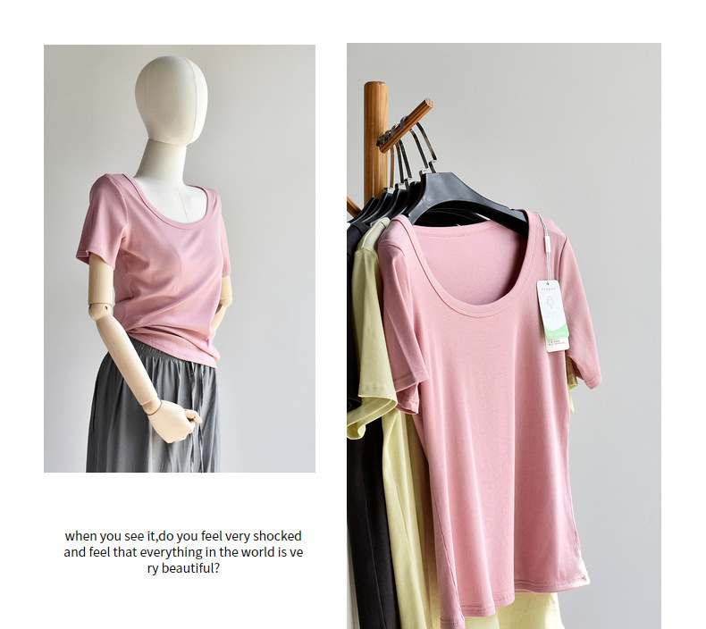 하이 엔드 유코시 방정식 티셔츠 여자 여름 2025 새로운 U 칼라 스퀘어 칼라 화이트 느슨한 반팔 로우 칼라 숄더 탑스토어 가기