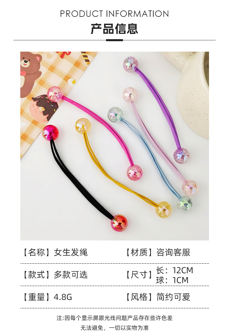 귀여운 소녀의 양머리 둥근 구슬 머리 밧줄 높은 탄성 헤어 스트랩 헤어 액세서리 어린이 패션 올 매치 헤어 로프
