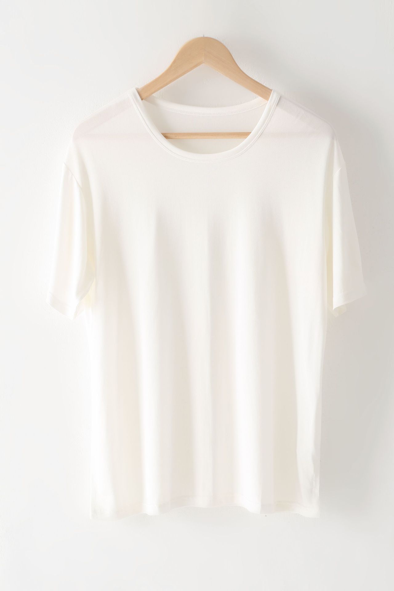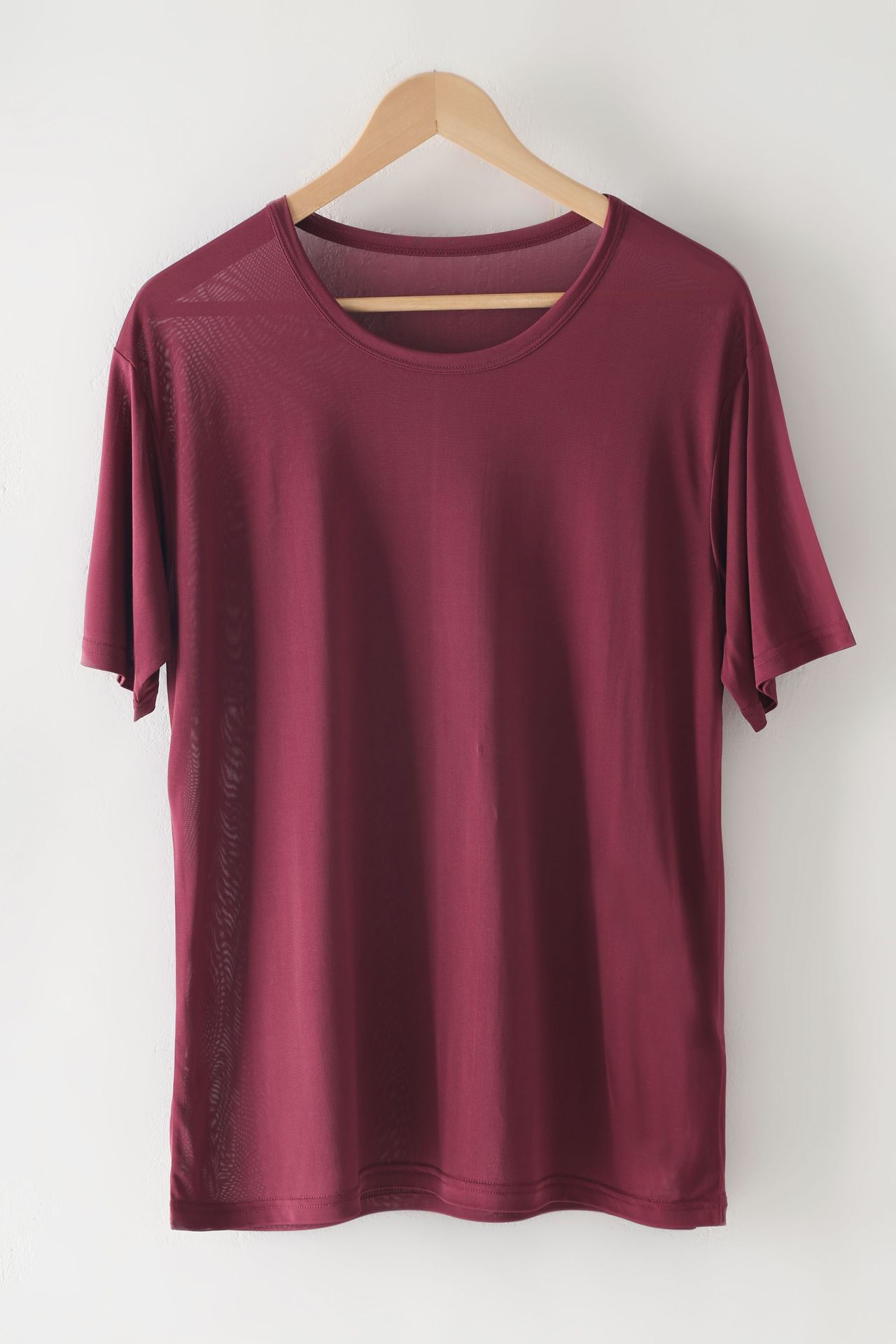Haosangyuan 청소년 남성 뽕나무 실크 느슨한 캐주얼 크루 넥 티셔츠 솔리드 컬러 풀오버 실크 티셔츠 1046스토어 가기