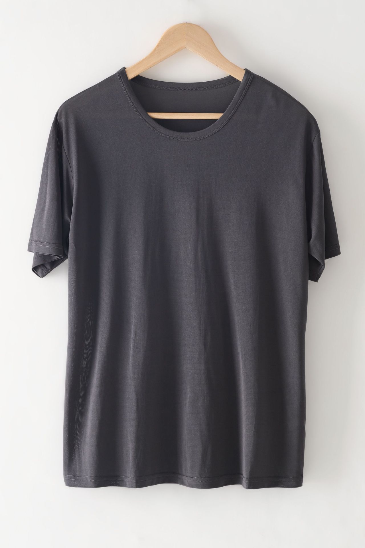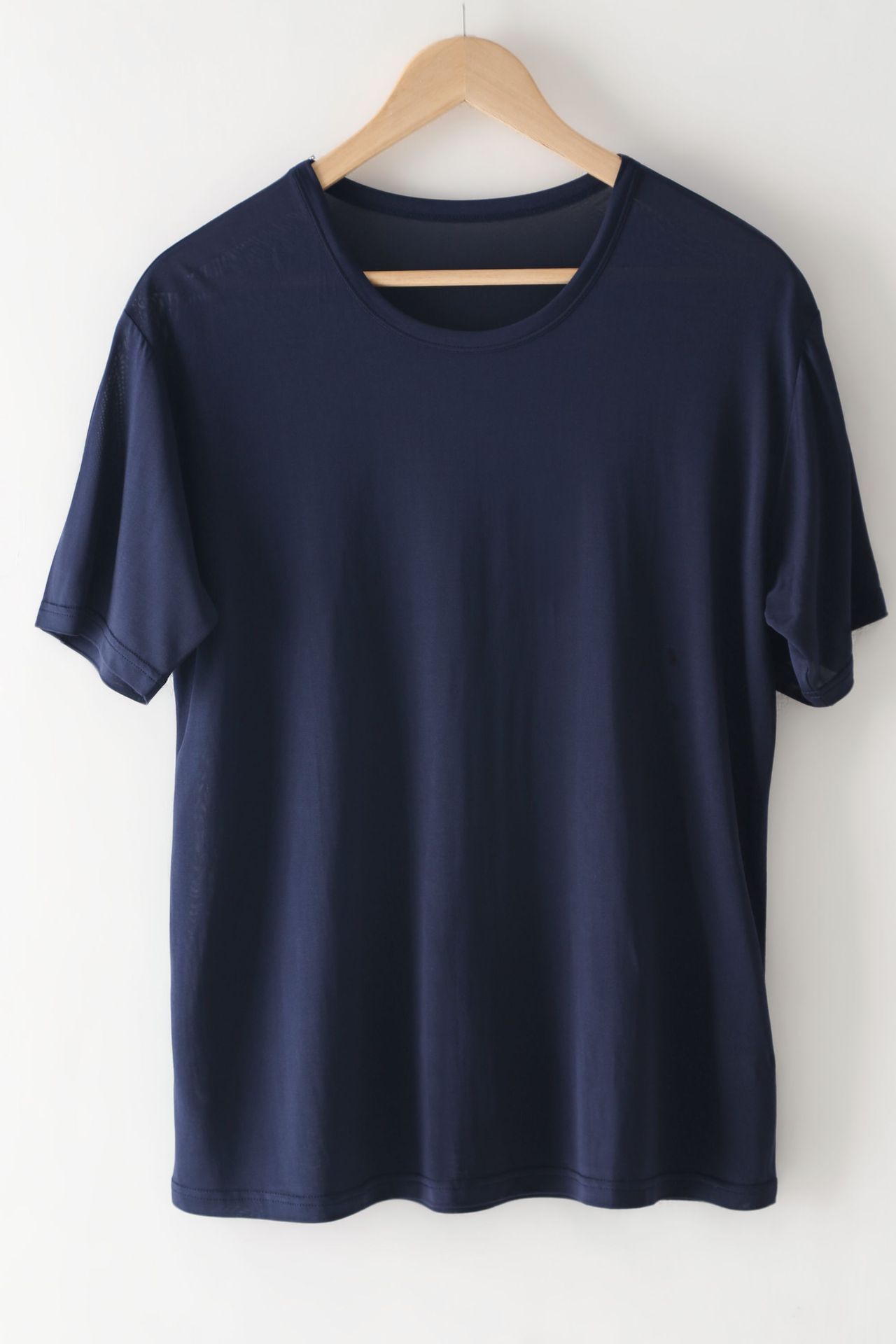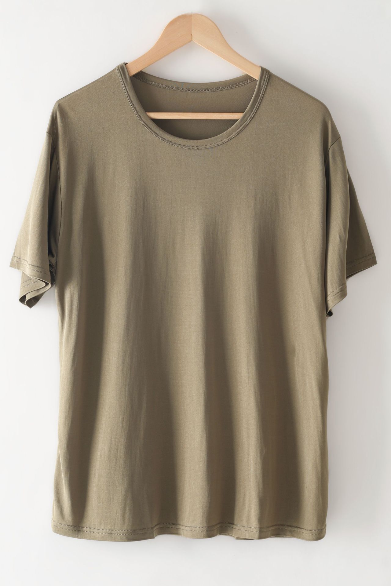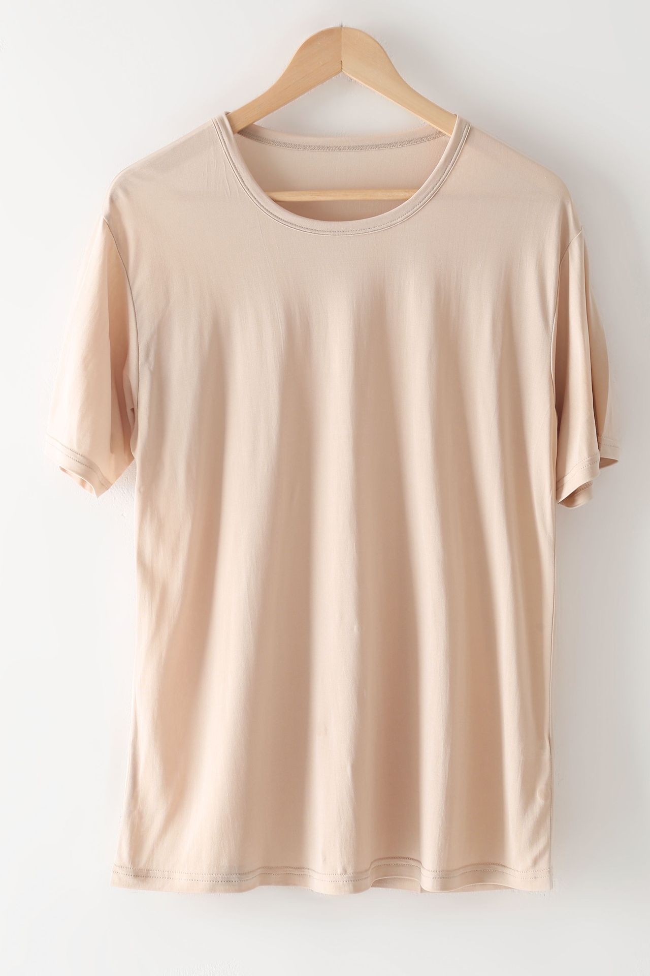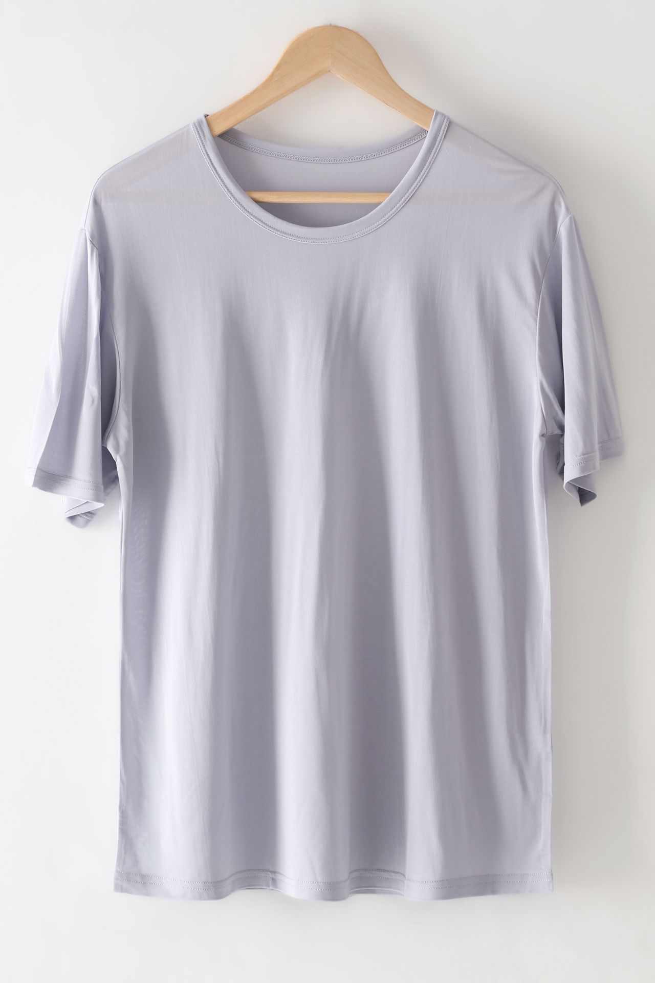 Haosangyuan 청소년 남성 뽕나무 실크 느슨한 캐주얼 크루 넥 티셔츠 솔리드 컬러 풀오버 실크 티셔츠 1046