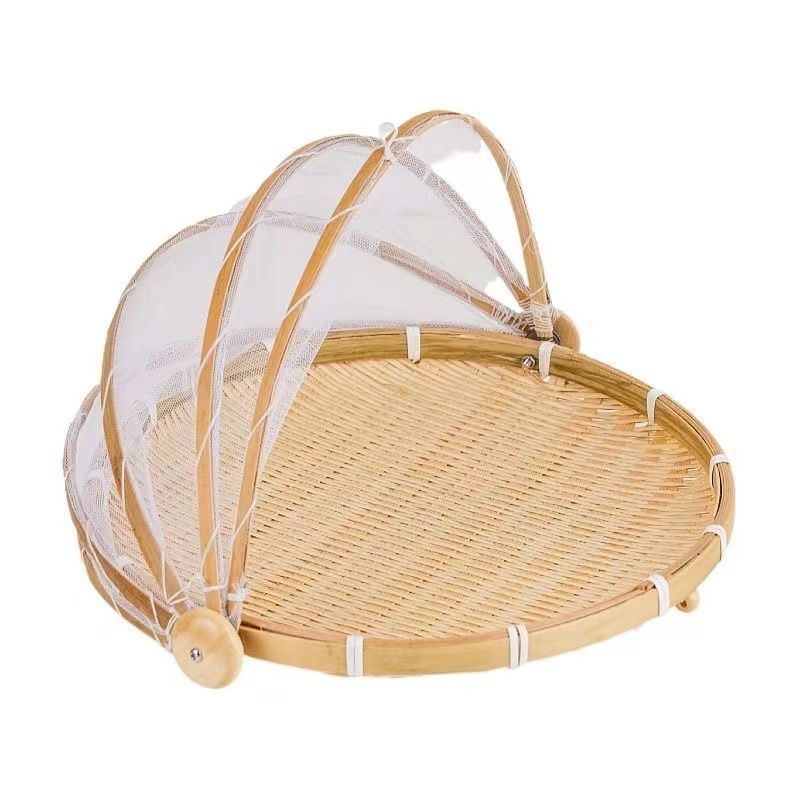 망이 달린 대나무 제품, 쓰레받기, 야채 커버, 천연 대나무 바구니, 파리 방지 과일 바구니, 생선 건조용 보관 바구니