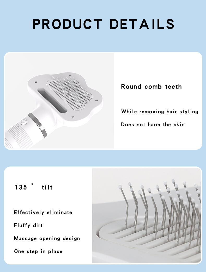 고양이용 3-in-1 애완동물 헤어드라이어, 뜨거운 공기 청소, 일체형 건조 및 빗, 개 매듭 풀기 및 털 빗, 원클릭 털 제거스토어 가기
