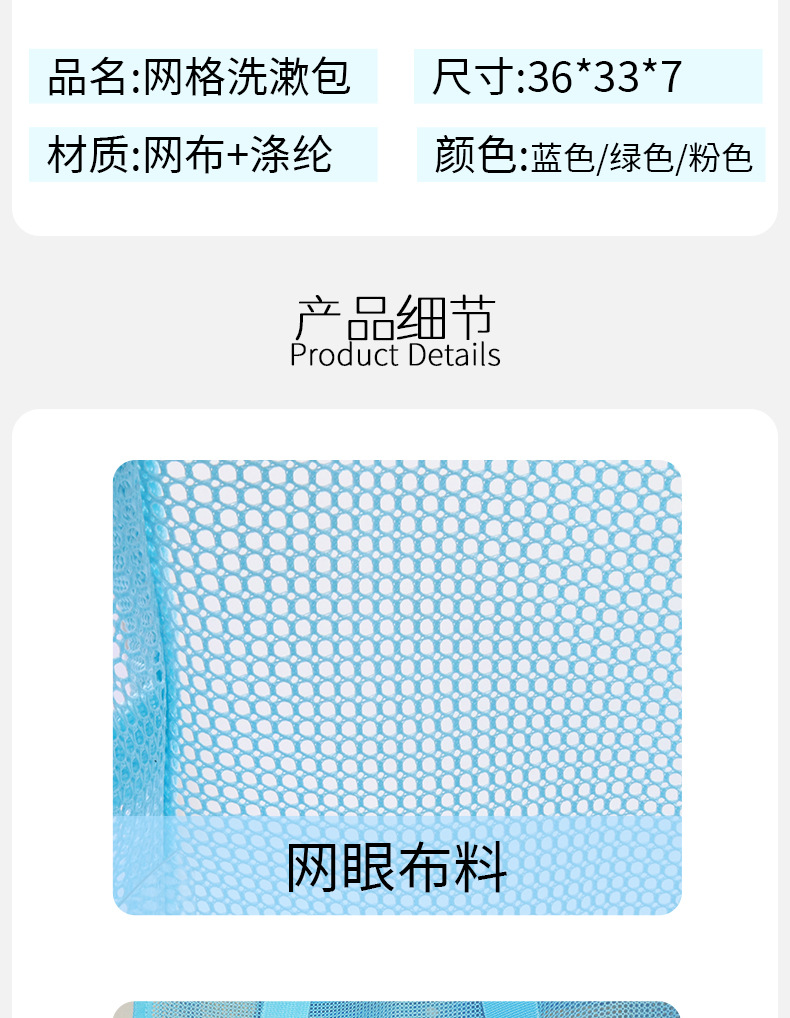 • 단색 사각형 메쉬 세면도구 가방 핑크 33*36*7cm