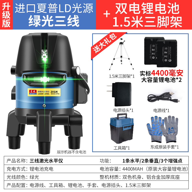 • [충전 및 사용] 녹색등 3줄 [듀얼 배터리 삼각대] 도구 키트 [밝기 조절 가능]