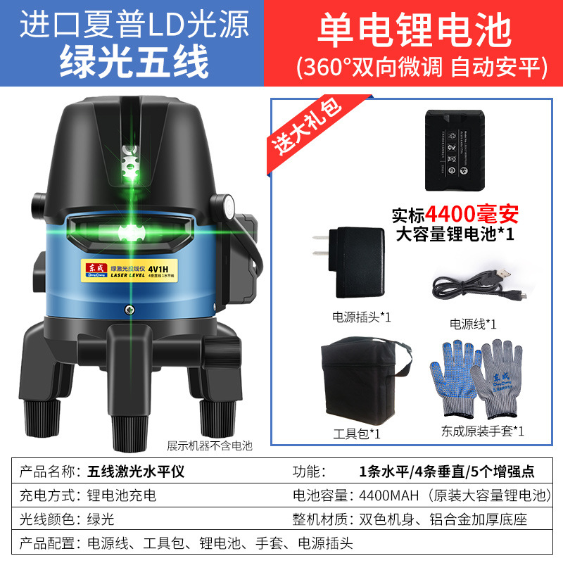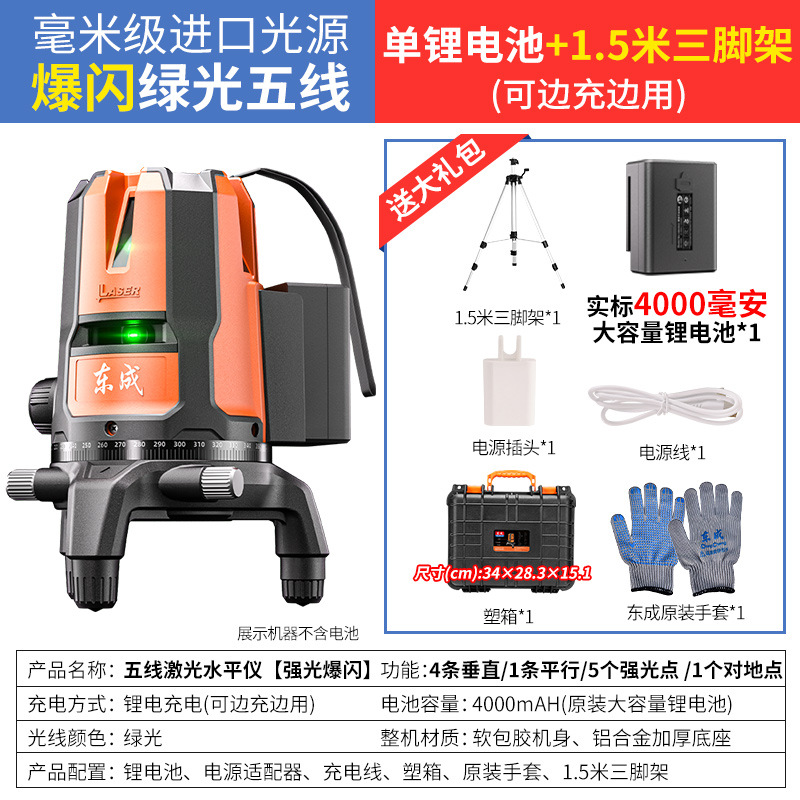 • [충전 및 사용] 녹색등 5줄 [단일 배터리 삼각대] 도구 키트 [밝기 조절 가능]