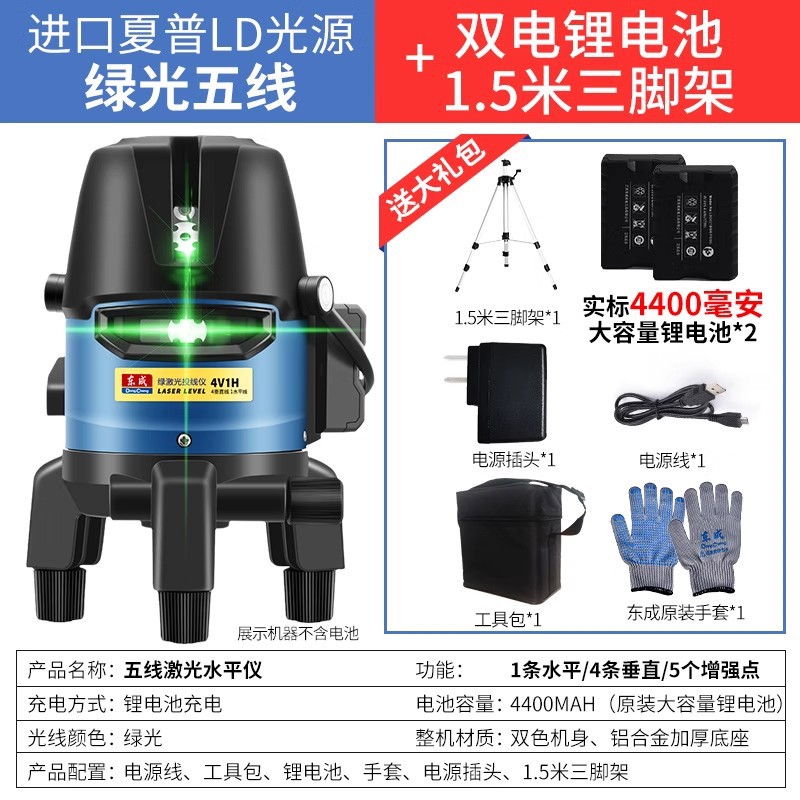 • [충전 및 사용] 녹색등 5줄 [듀얼 배터리 삼각대] 도구 키트 [밝기 조절 가능]