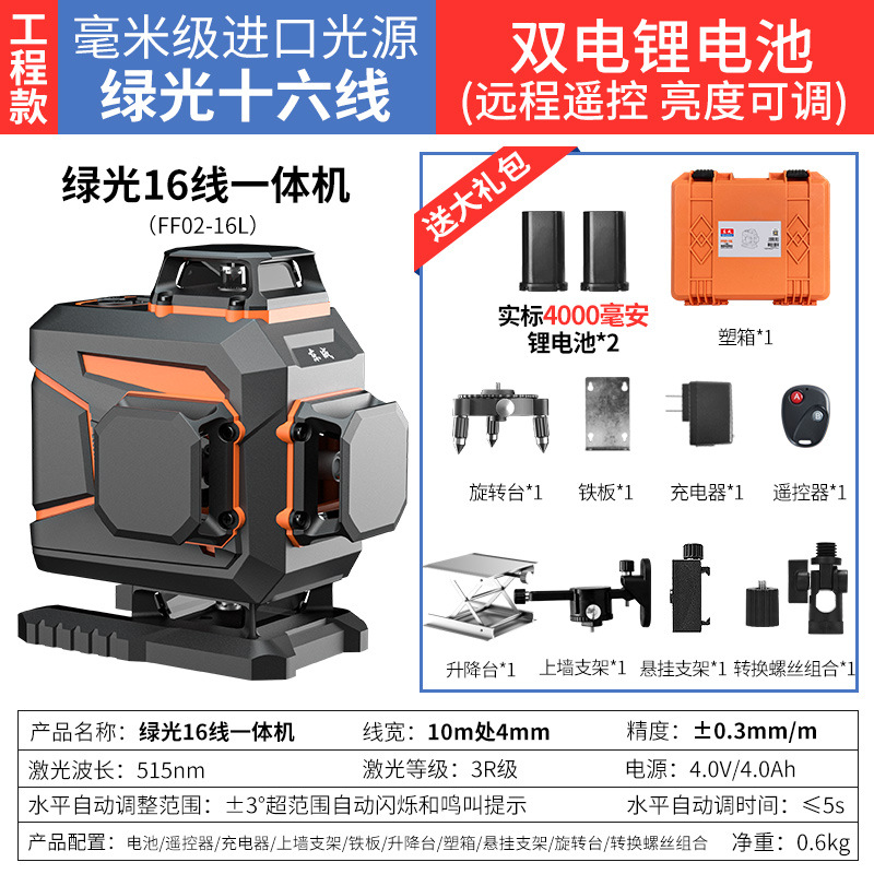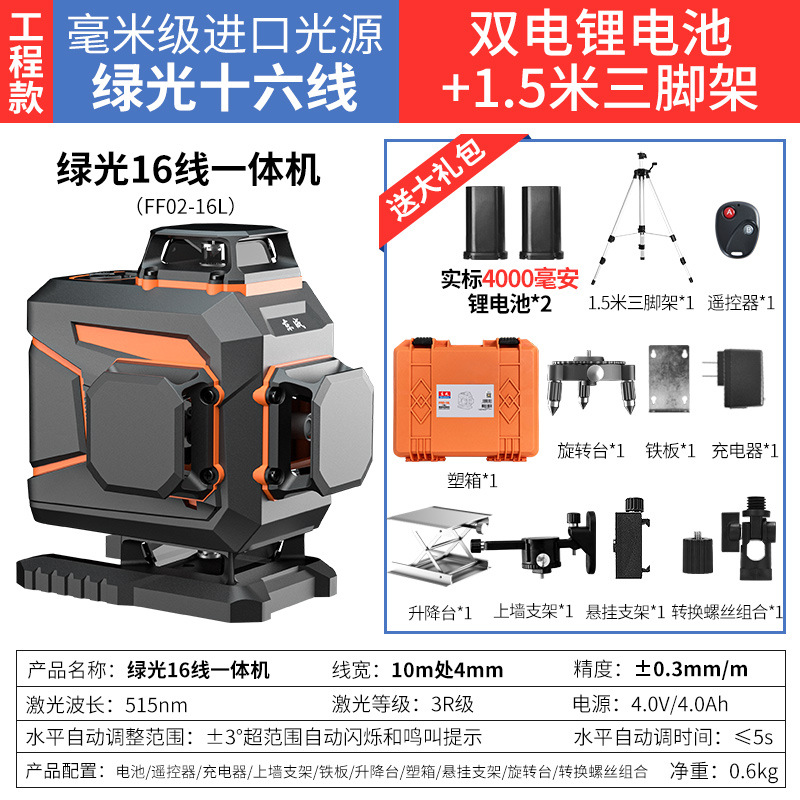 • [리모컨] 그린라이트 16라인 일체형기 [듀얼전동삼각대] + 월랙 + 베이스 [밝기조절가능] FF02-16L