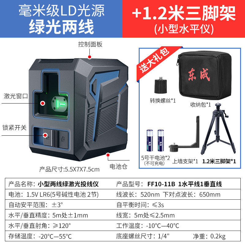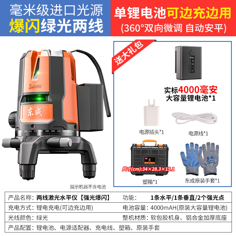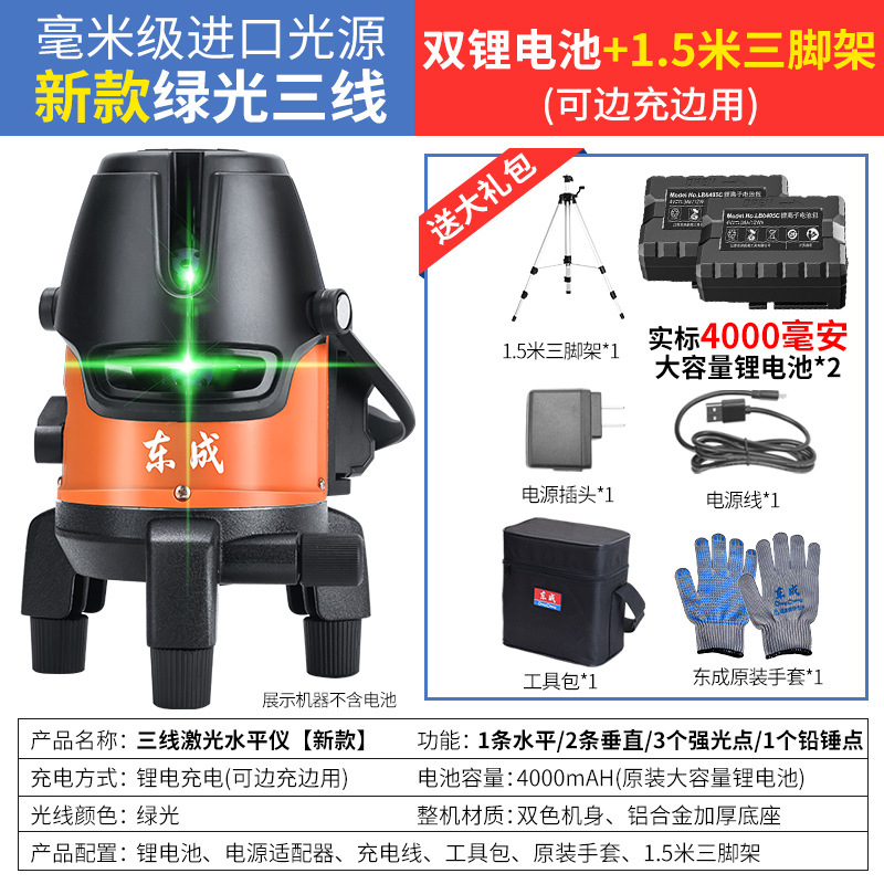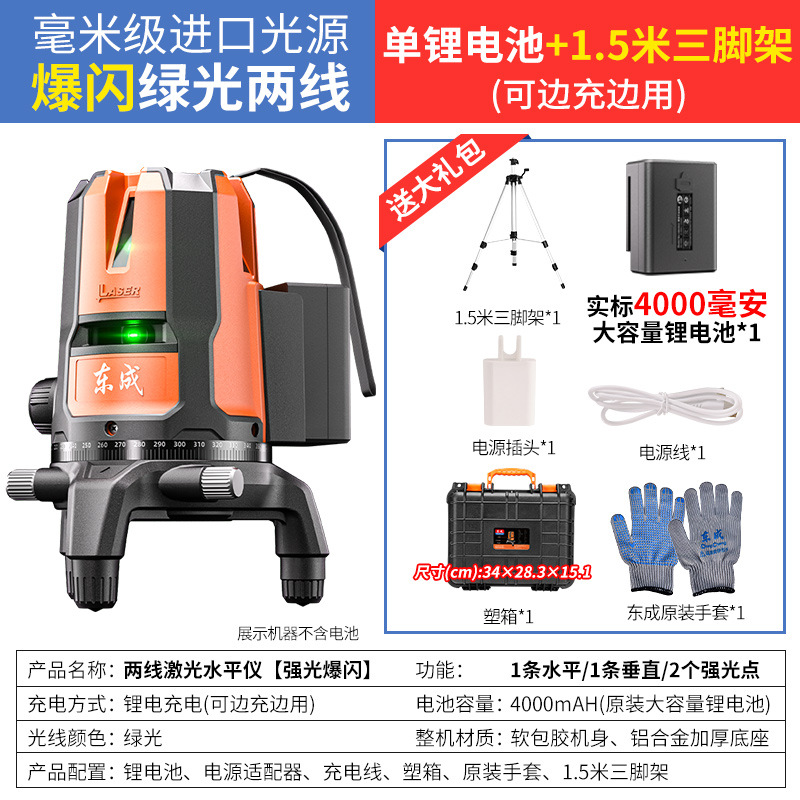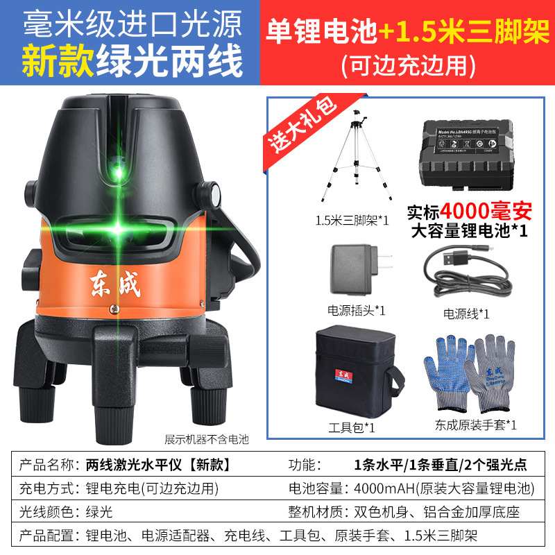 • [충전 및 사용] 녹색등 2줄 [단일 배터리 삼각대] 도구 키트 [밝기 조절 가능]