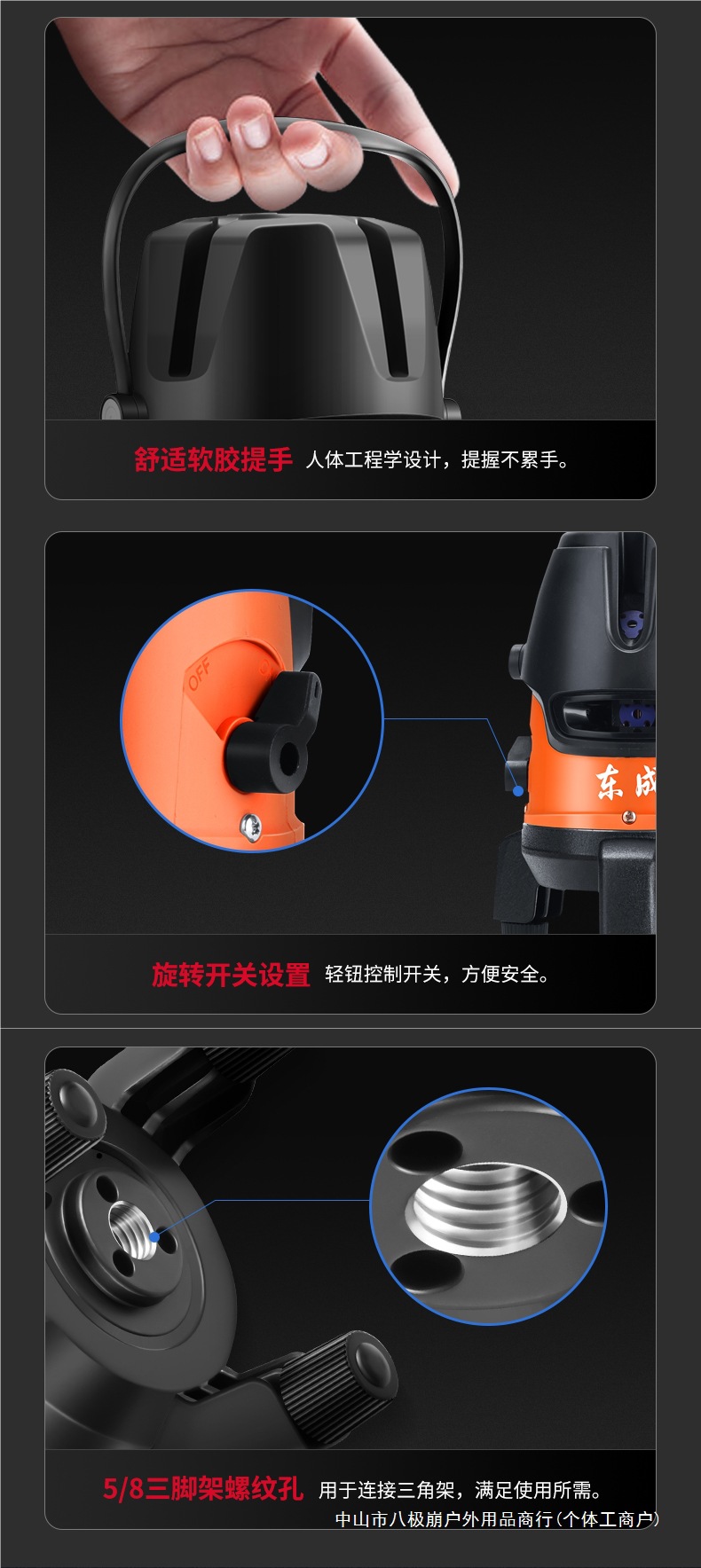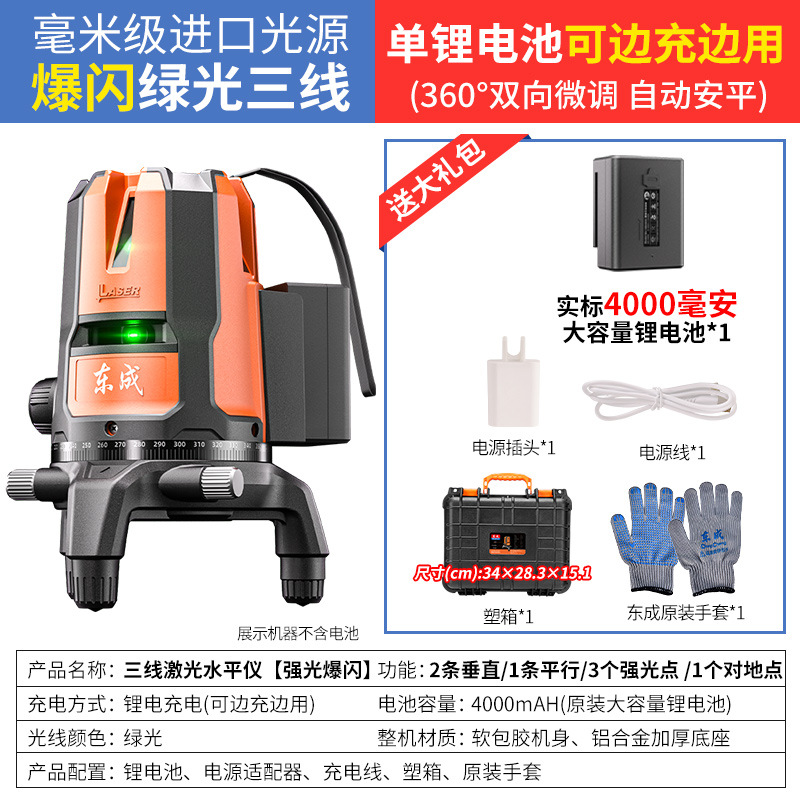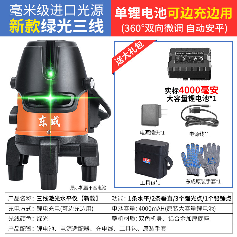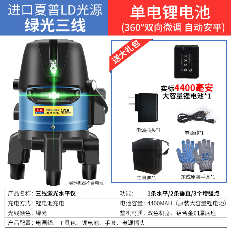 • [충전 및 사용] 녹색등 3줄 [단일 배터리 삼각대] 도구 키트 [밝기 조절 가능]