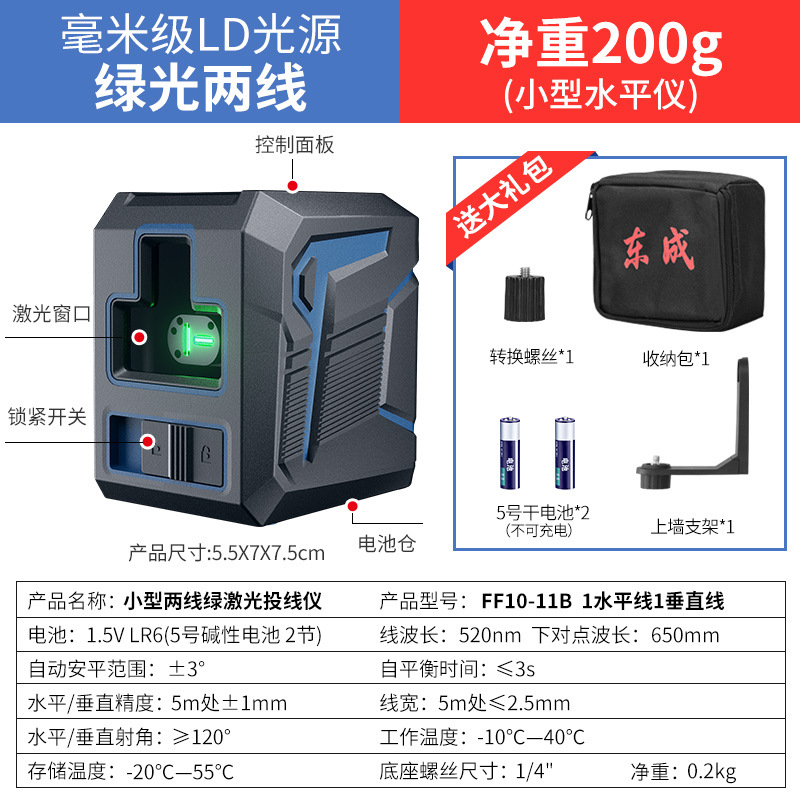 • 수입 LD 녹색등 5선 [이중 전원] 도구 키트 [밝기 조절 가능]
