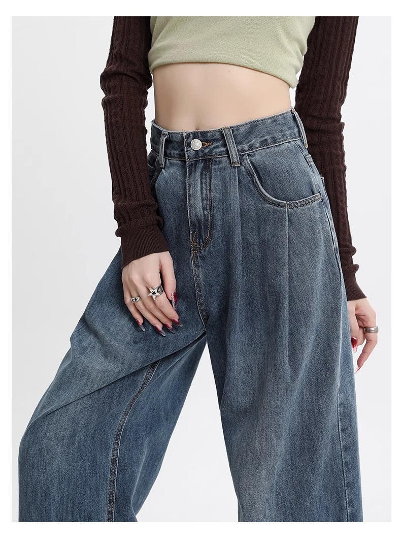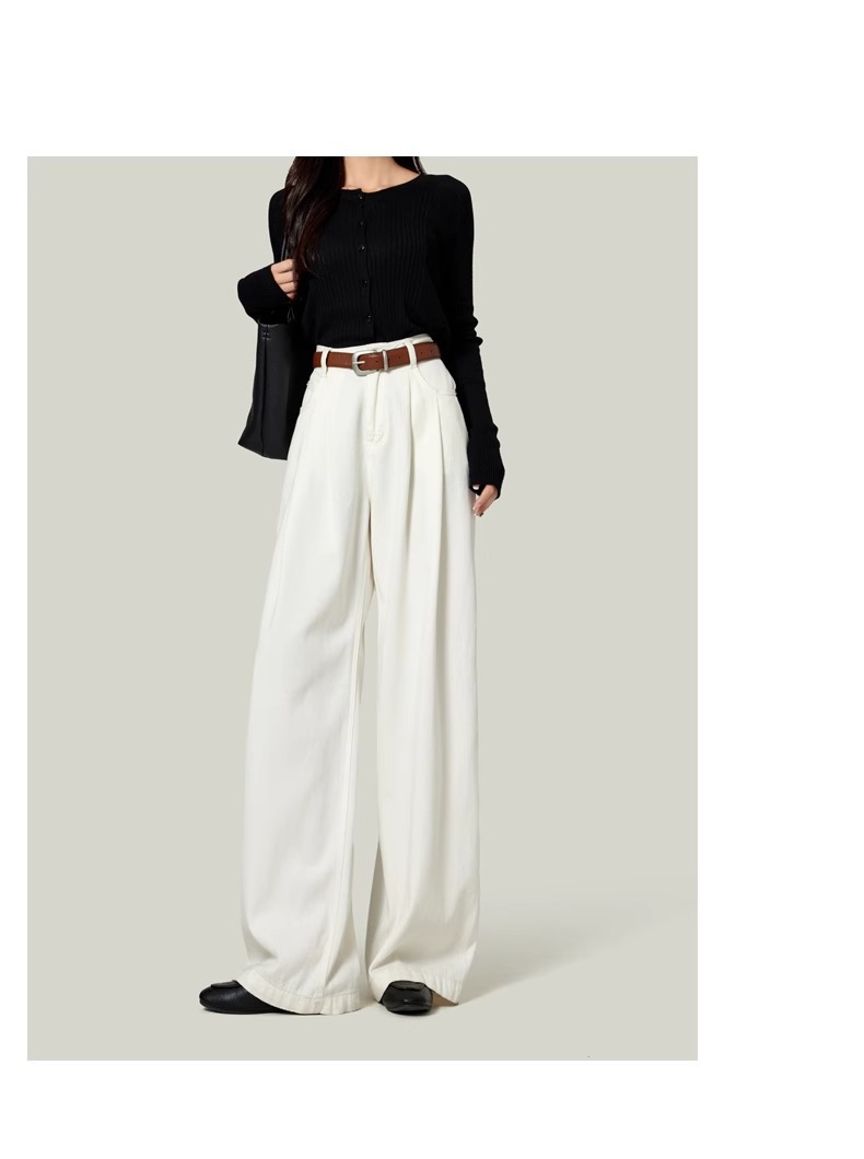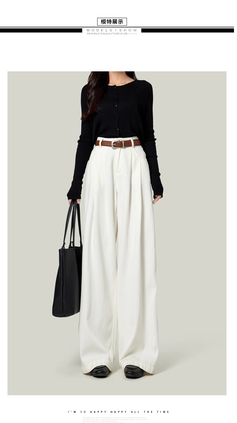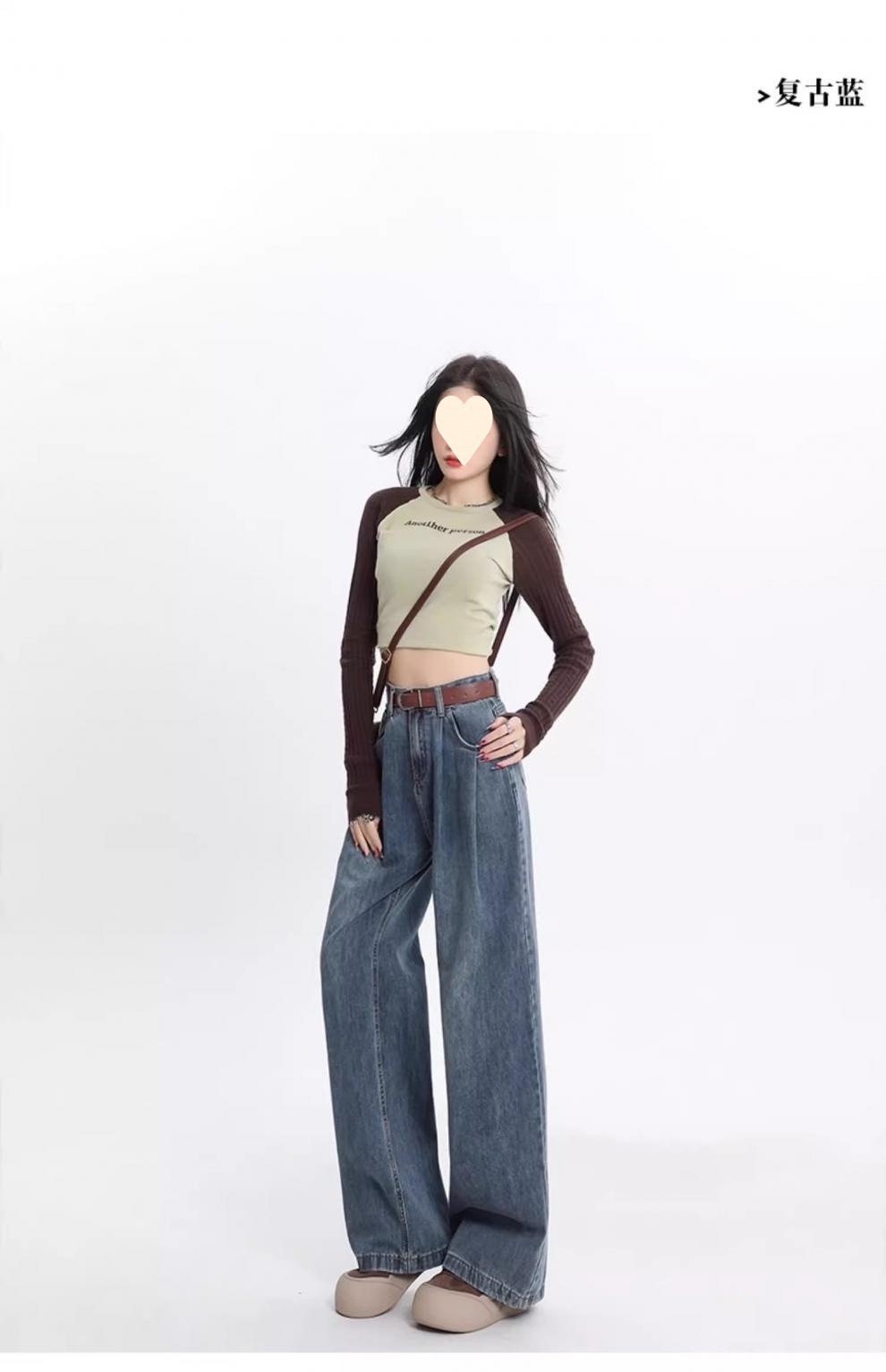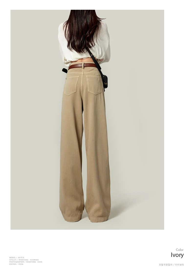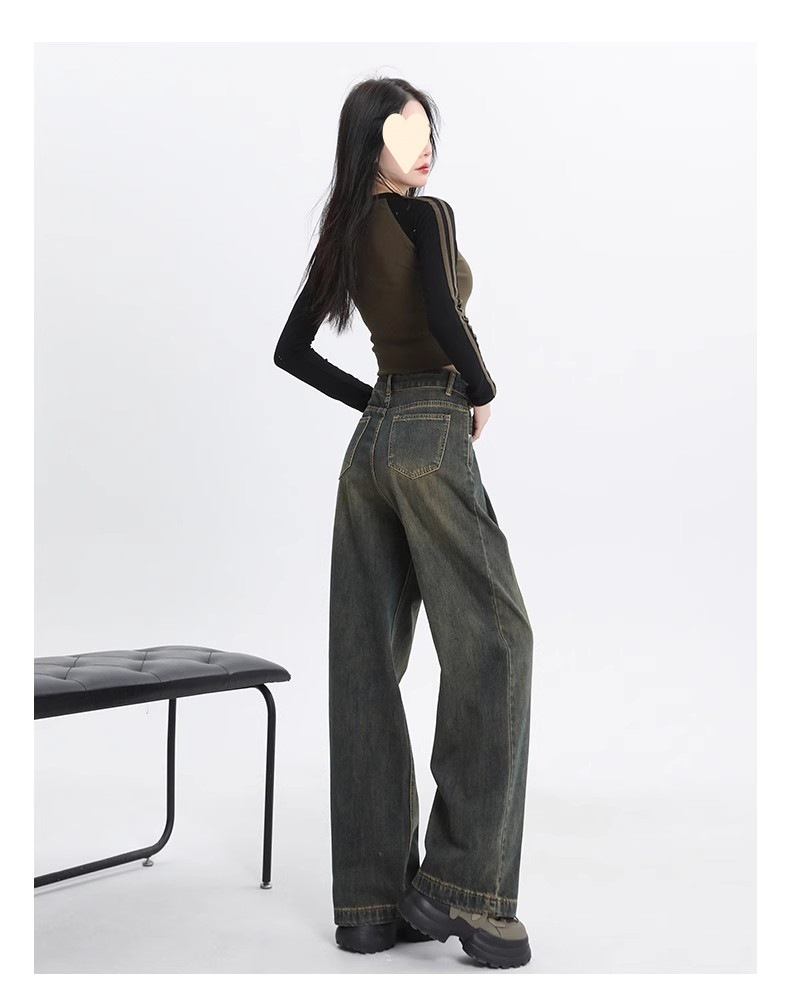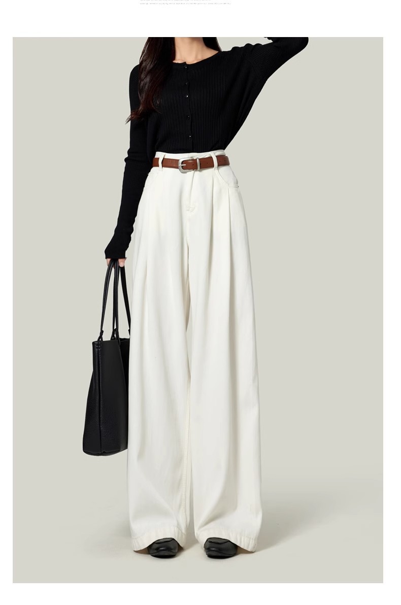 여성용 카키색 하이웨이스트 와이드 팬츠 2024 가을 신상 주름 디자인 루즈한 살을 커버하고 슬림해 보이는 스트레이트 팬츠스토어 가기