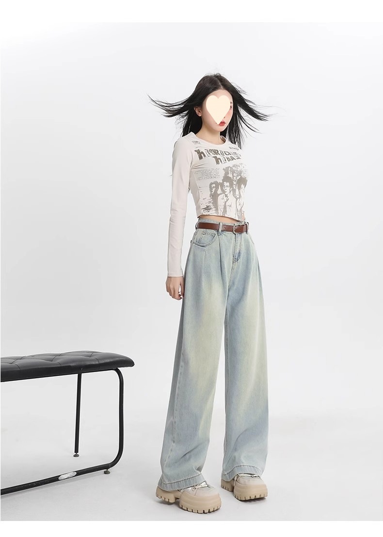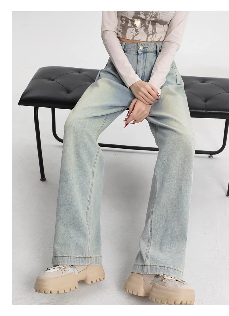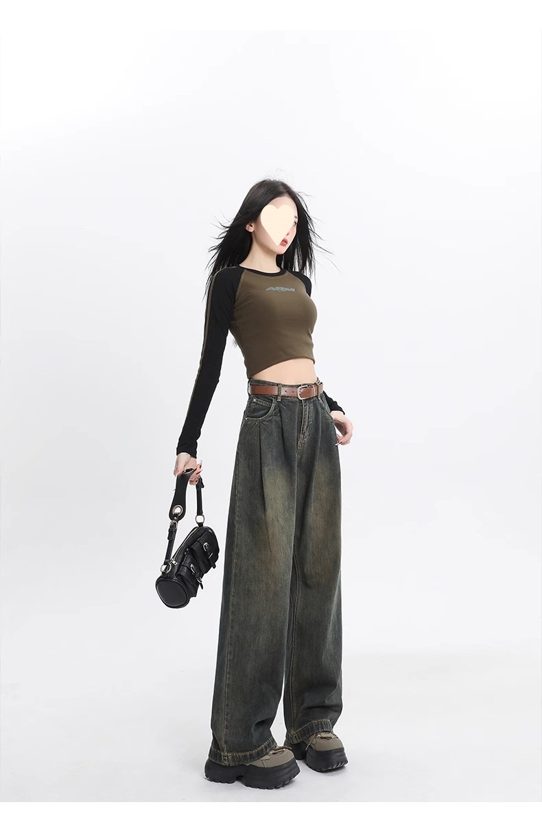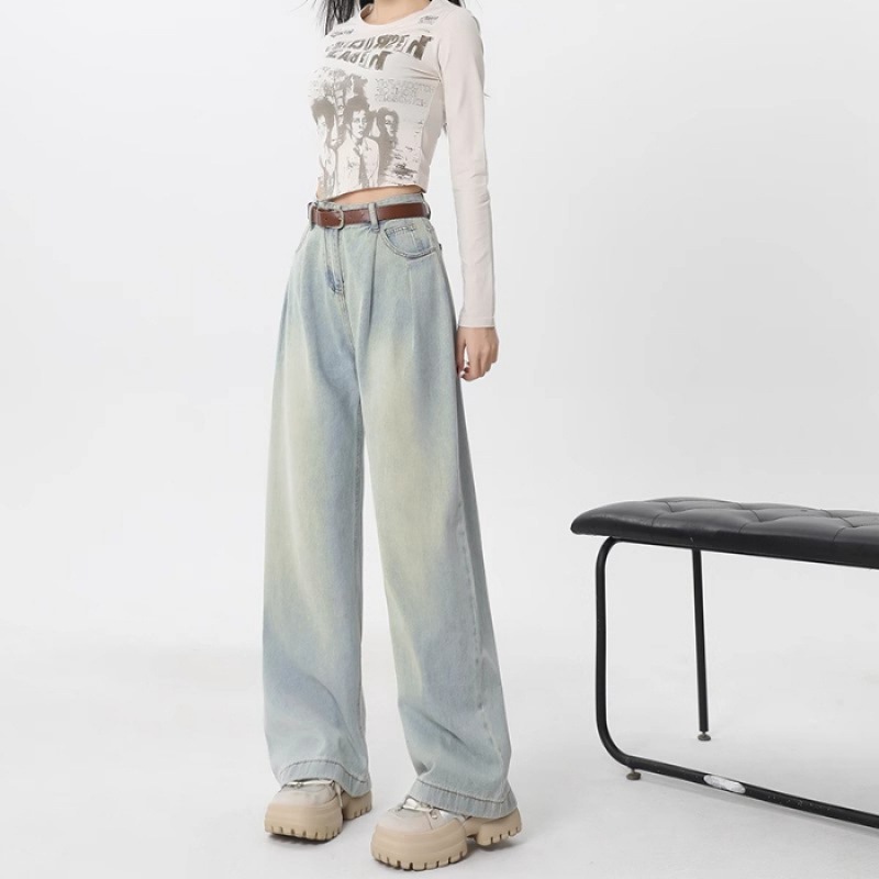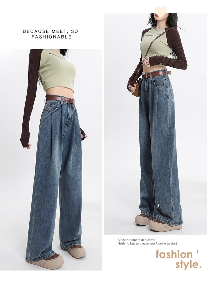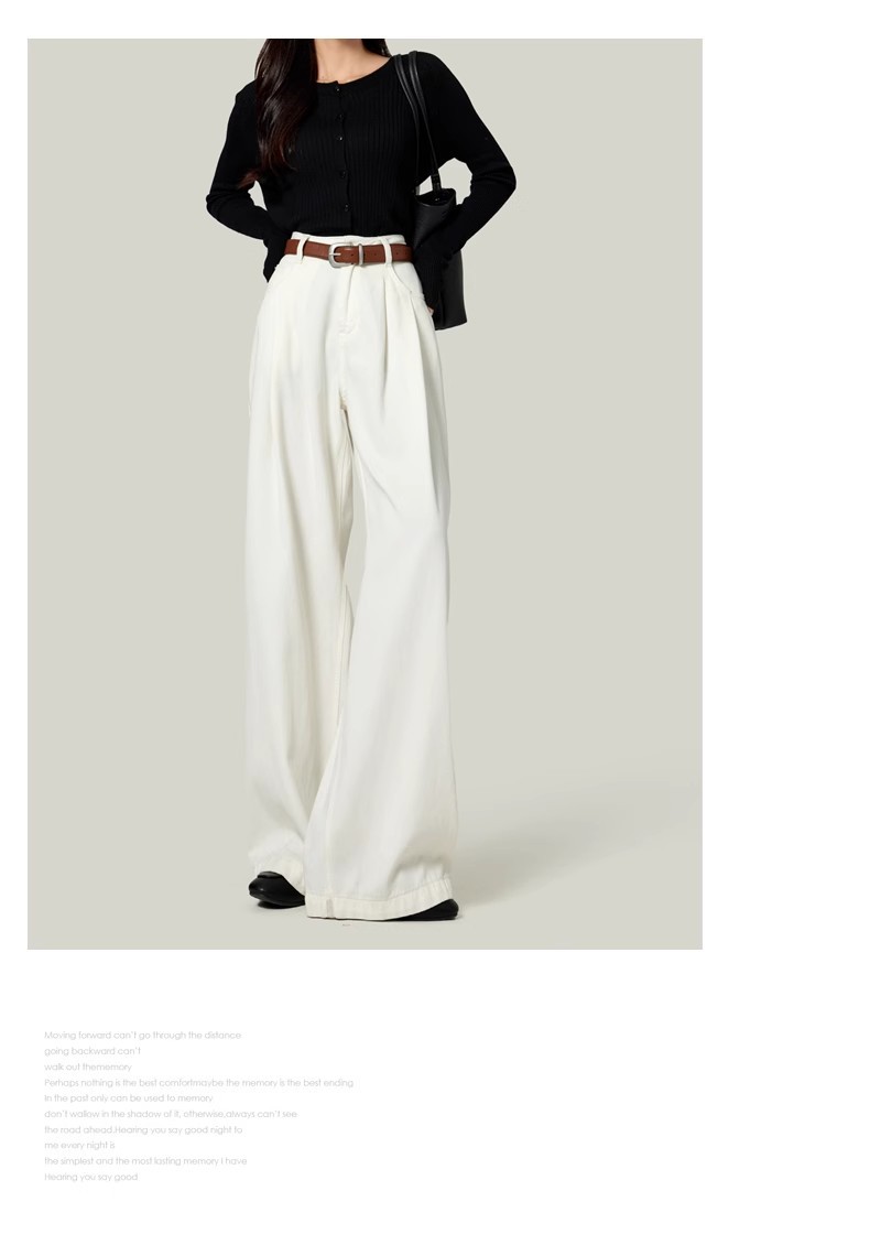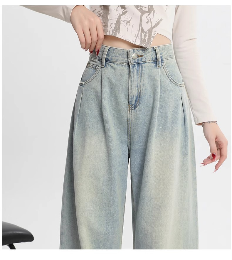 여성용 카키색 하이웨이스트 와이드 팬츠 2024 가을 신상 주름 디자인 루즈한 살을 커버하고 슬림해 보이는 스트레이트 팬츠스토어 가기