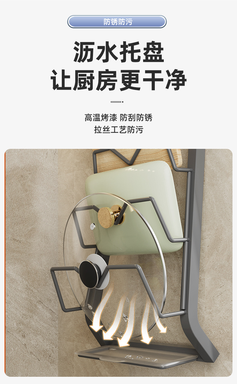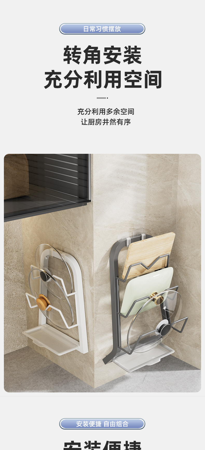 냄비 뚜껑 랙 벽걸이 형 펀치없는 주방 보관 랙 다기능 가정용 보관 랙 도마 랙 다층 도마 랙스토어 가기