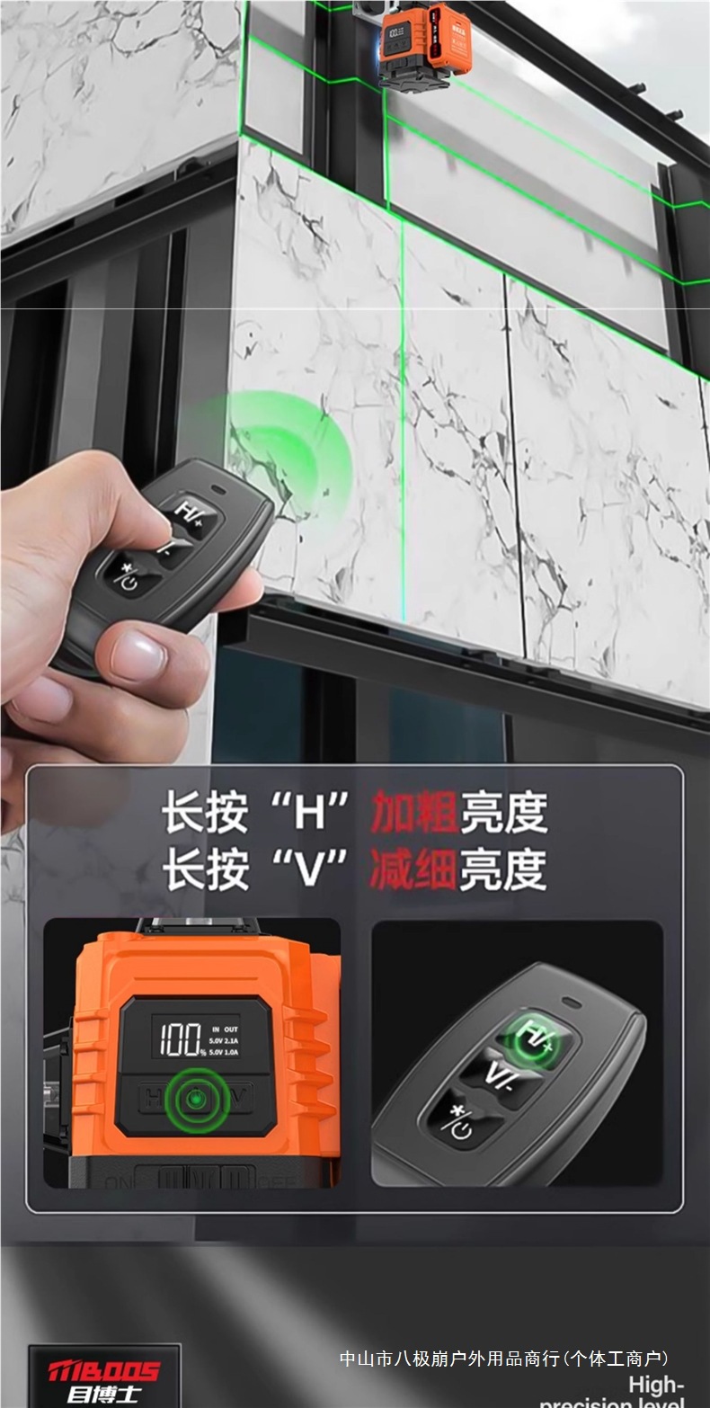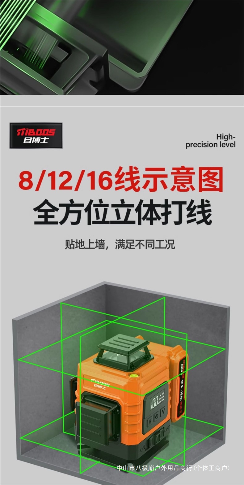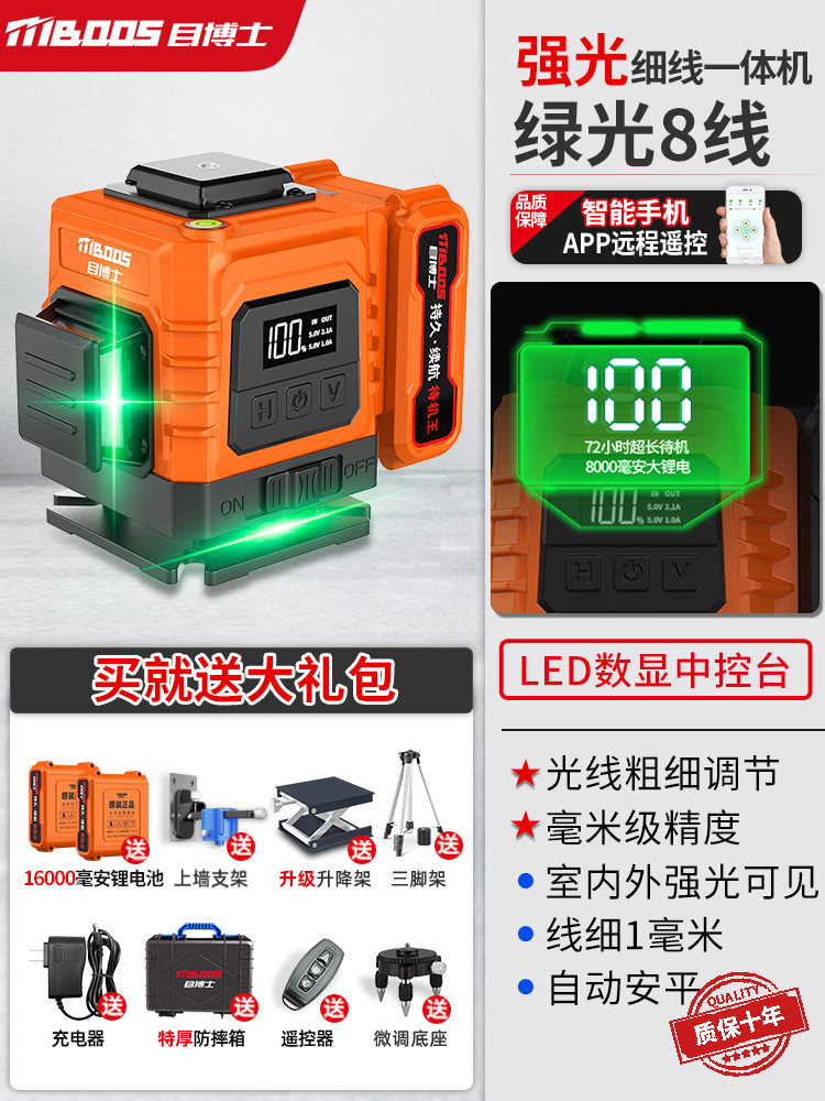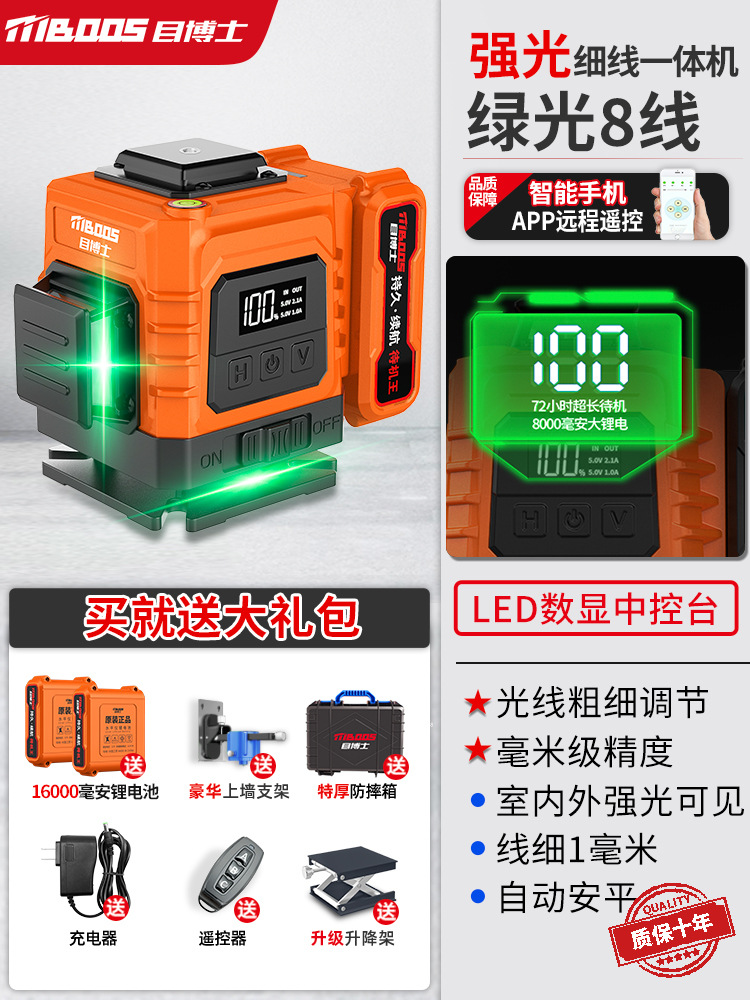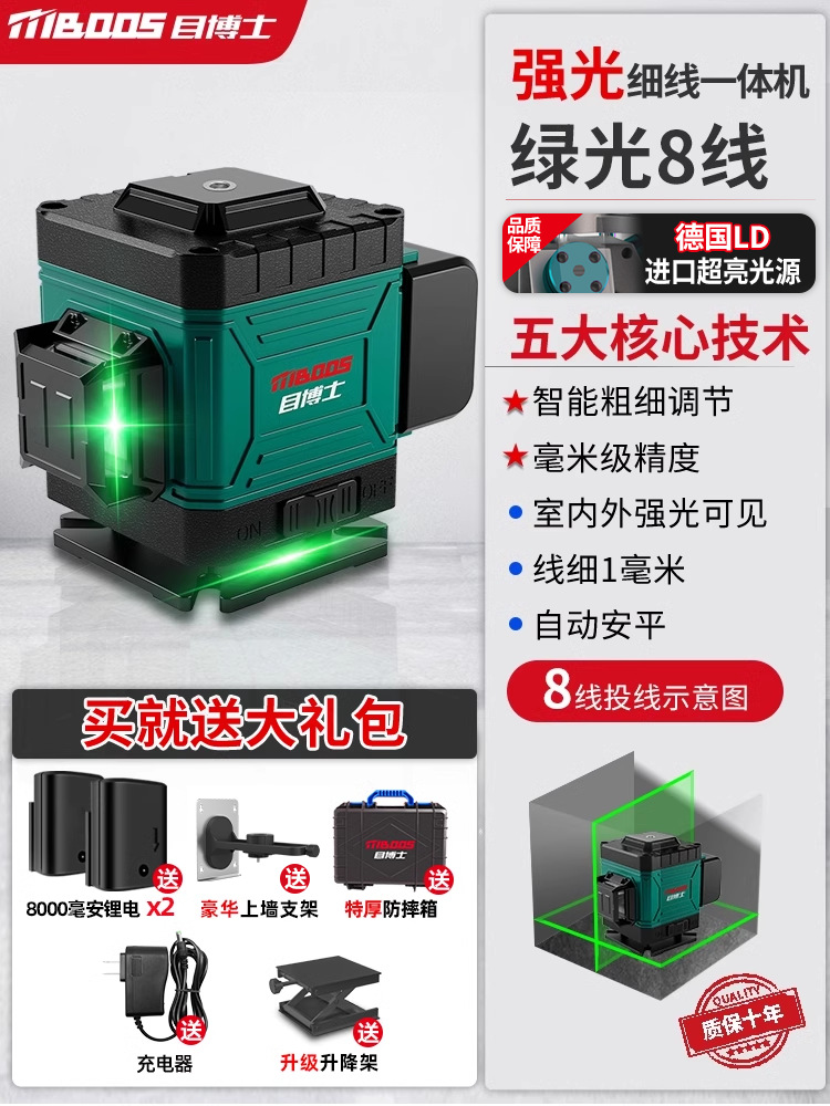 • 매우 밝은 녹색광 [수입 레이저 튜브] 8선 이중 전원 + 벽걸이