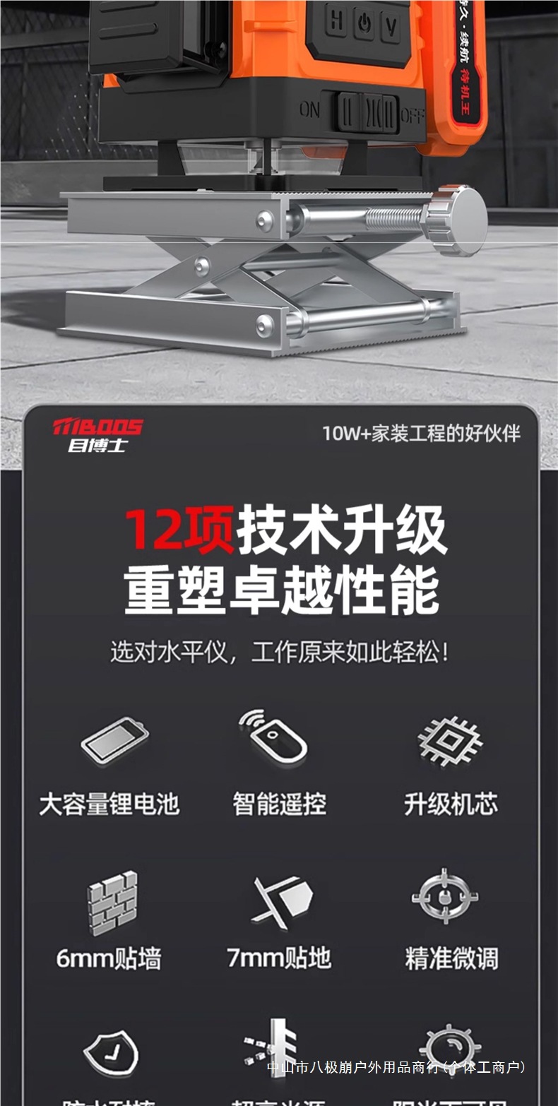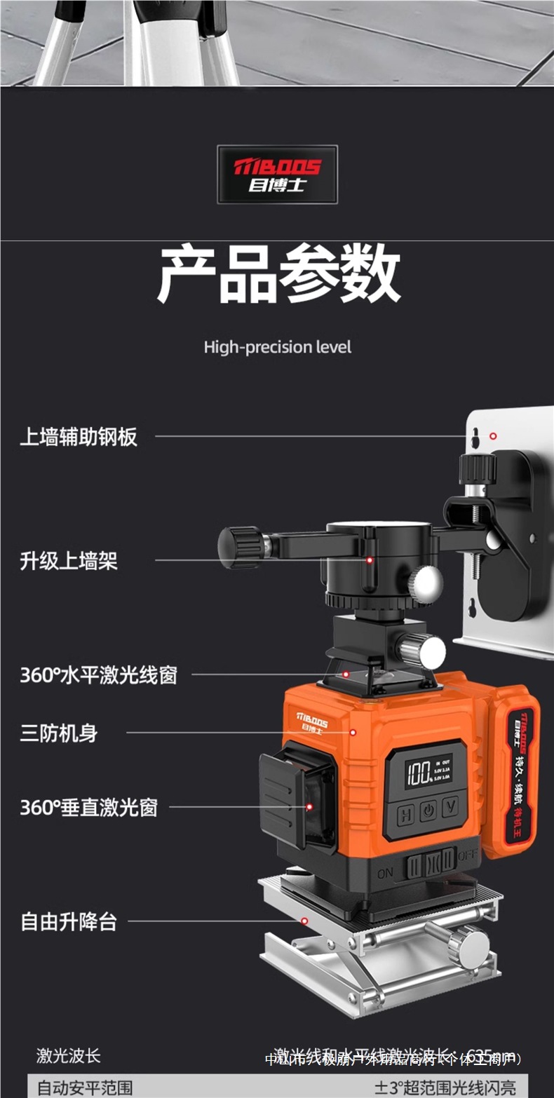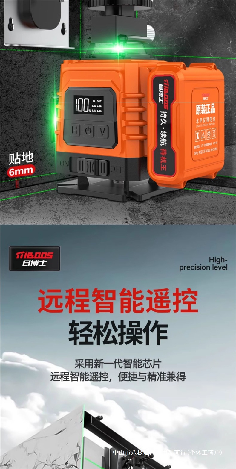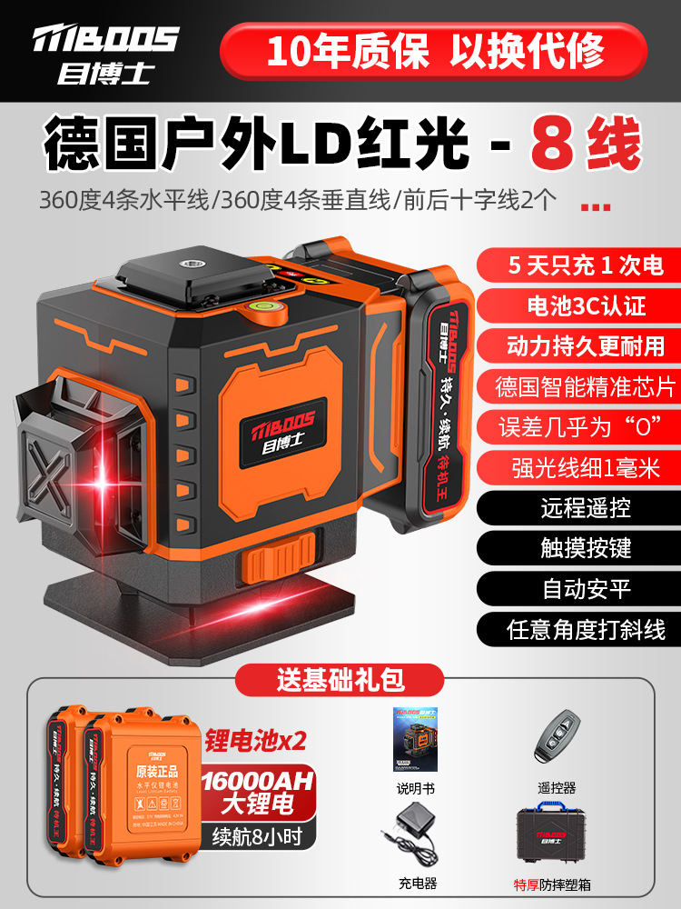 • 매우 밝은 녹색광 [수입 레이저 튜브] 8선 이중 전원 + 벽걸이