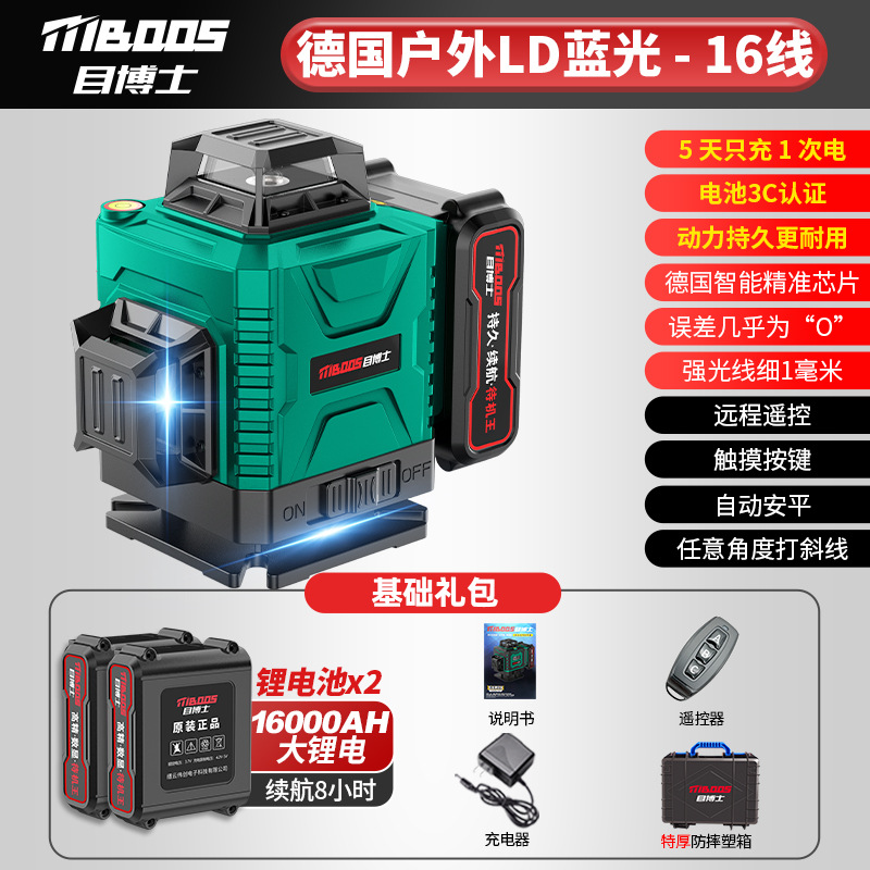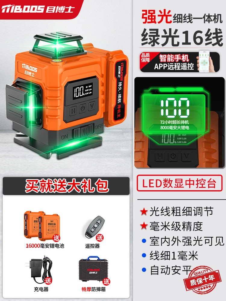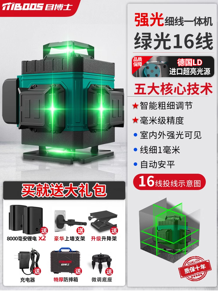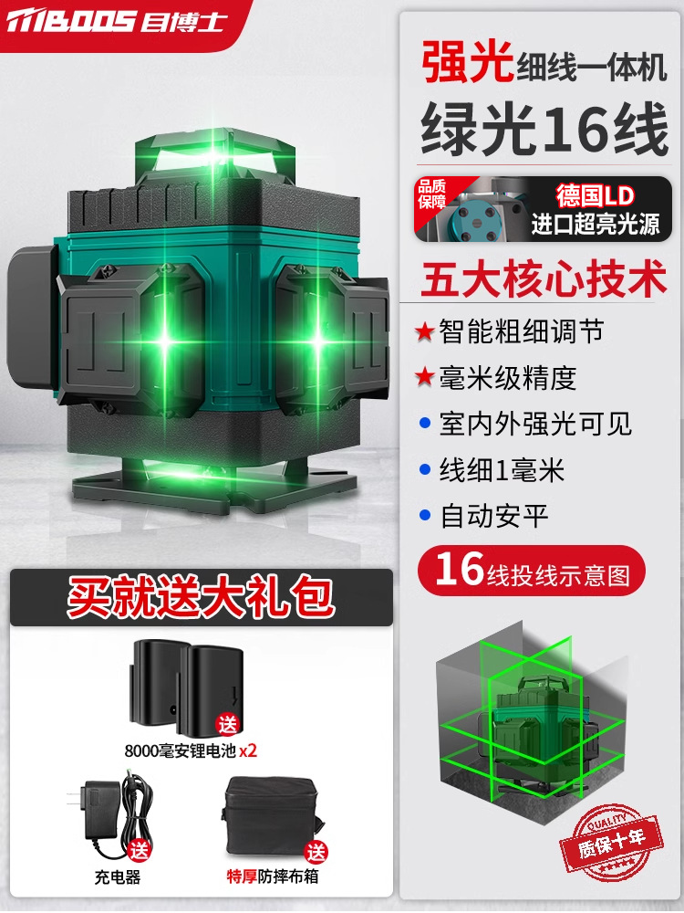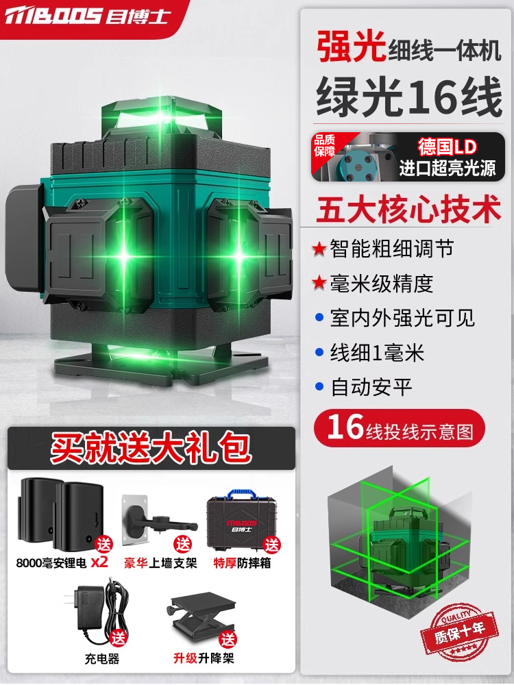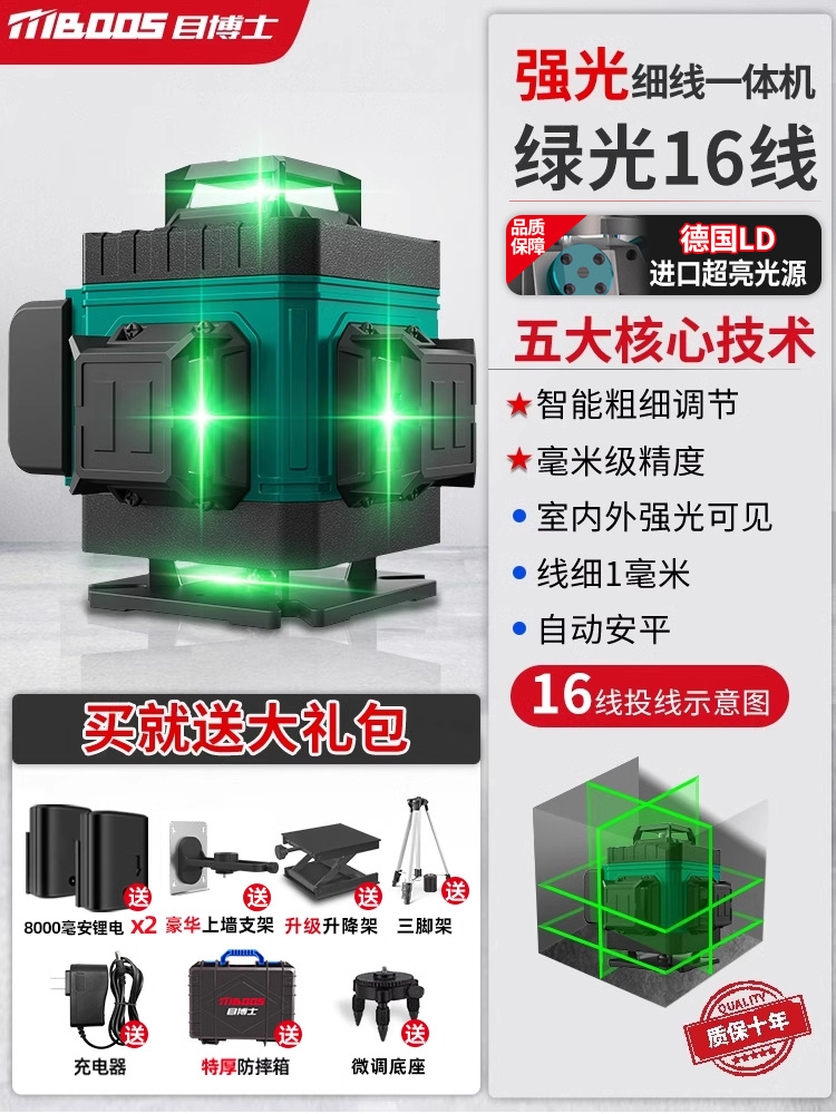 • 매우 밝은 녹색광 [수입 레이저 튜브] 16 라인 이중 전기 + 벽걸이