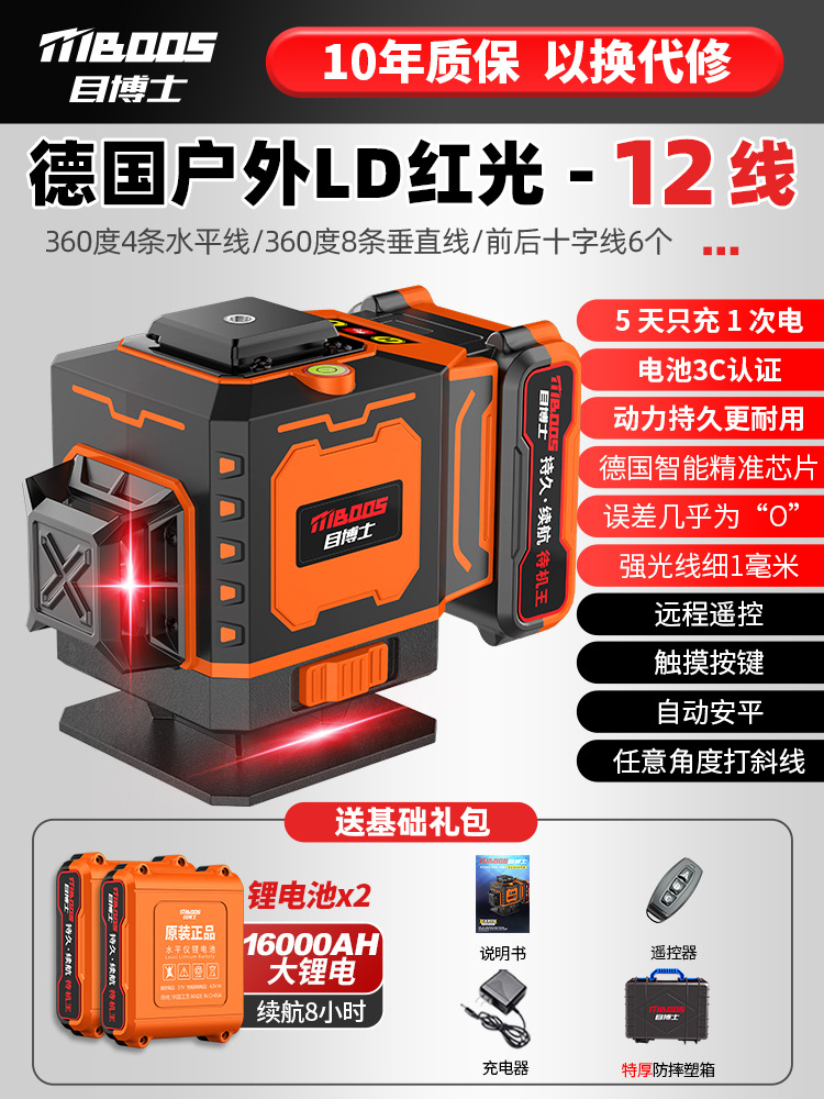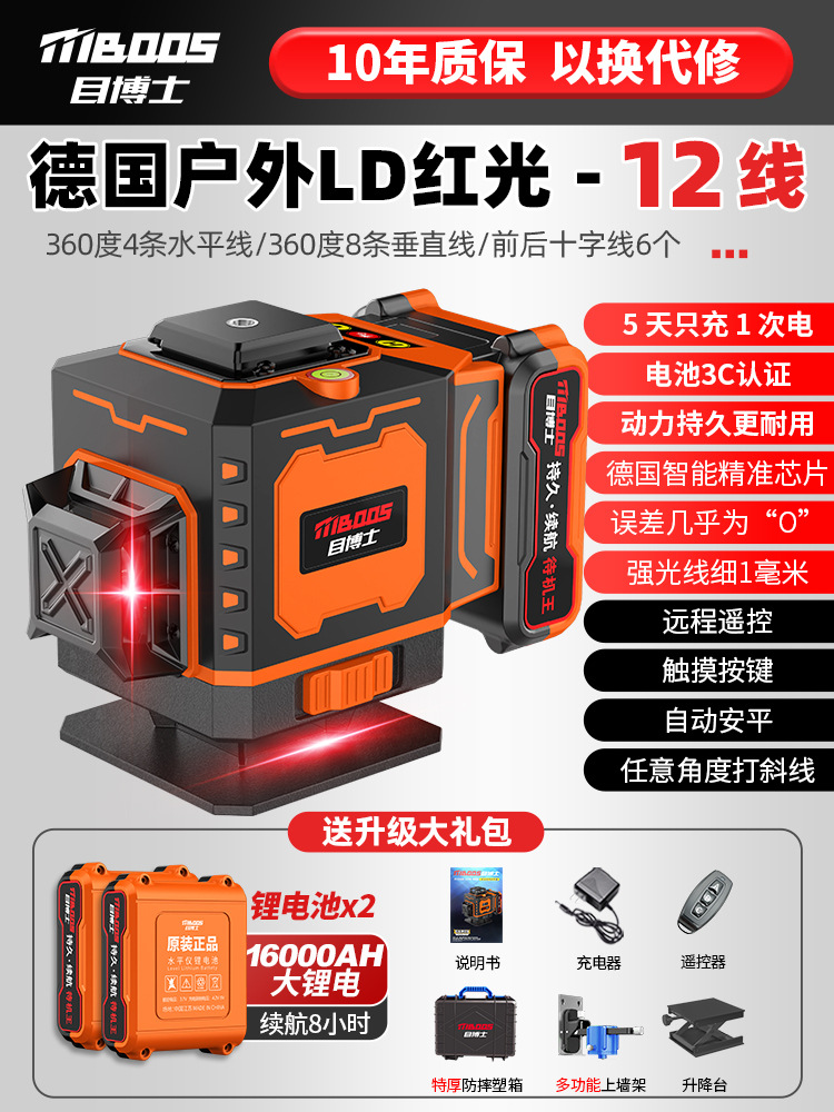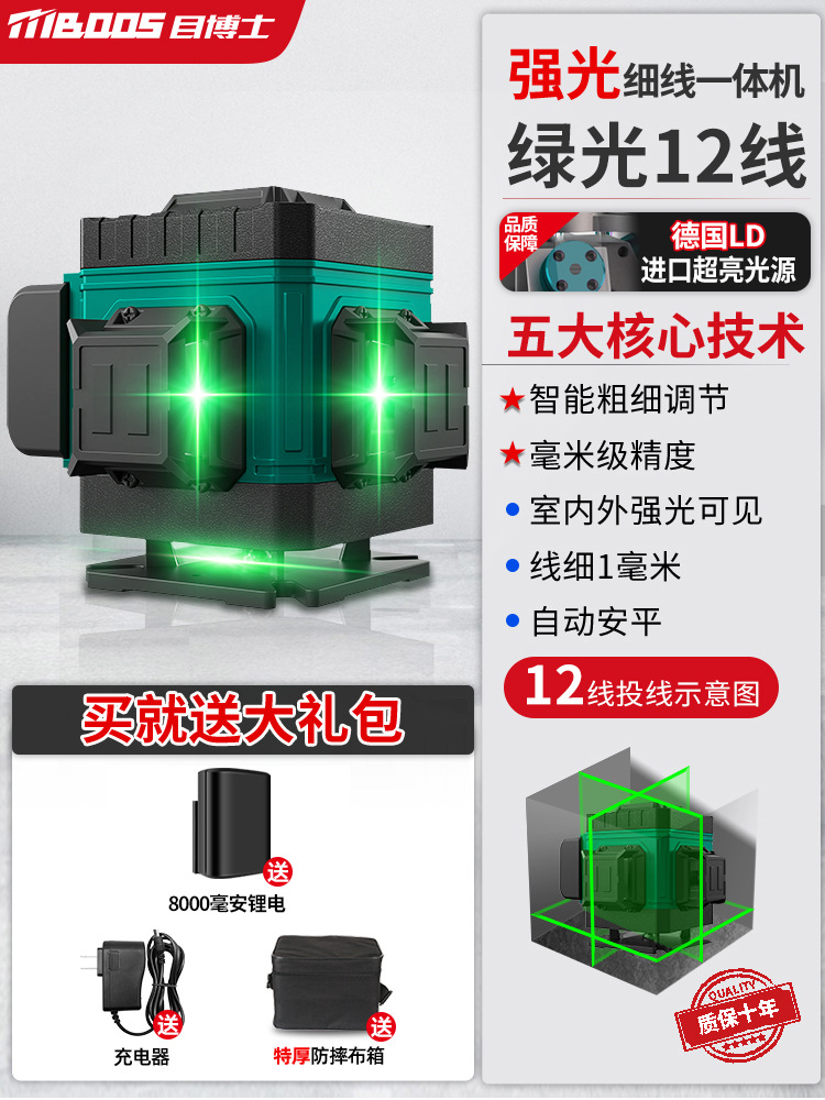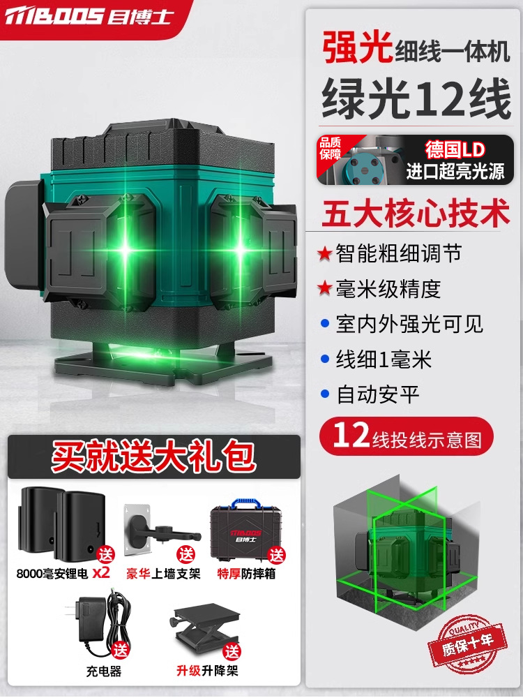 12 라인 적외선 레벨 고정밀 강한 빛 미세 라인 레이저 벽-지상 야외 녹색 빛 자동 레벨링 옥토폴스토어 가기
