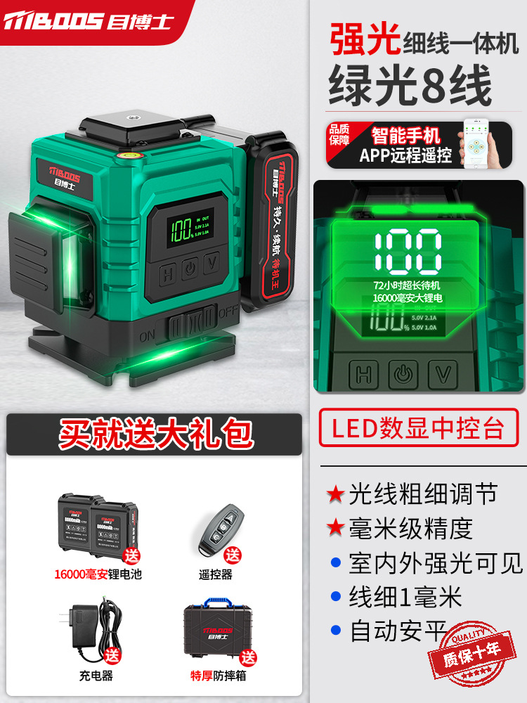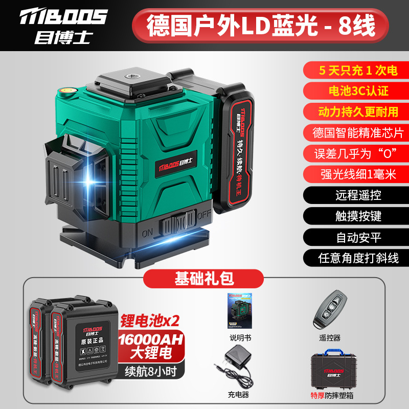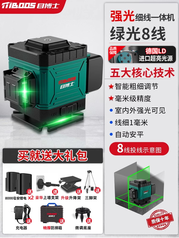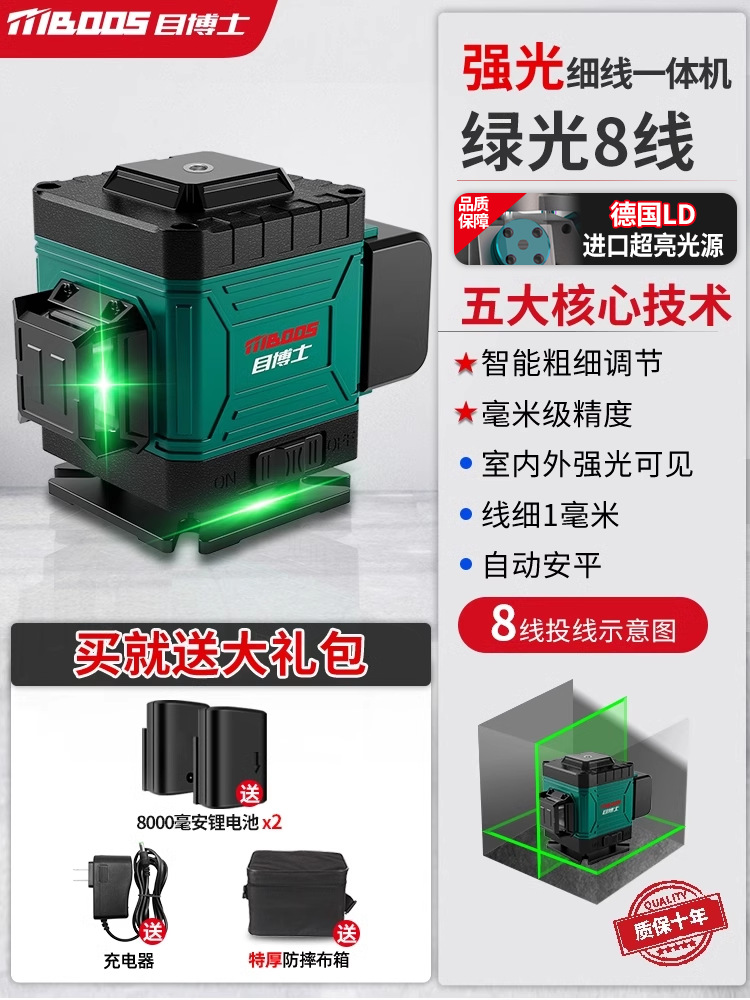 • 매우 밝은 녹색광 [수입 레이저 튜브] 8선 듀얼 전기 + 베이스