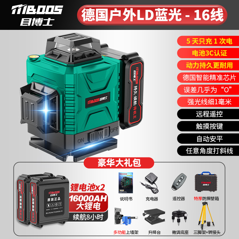 • 매우 밝은 녹색광 [수입 레이저 튜브] 16 라인 이중 전기 + 삼각대