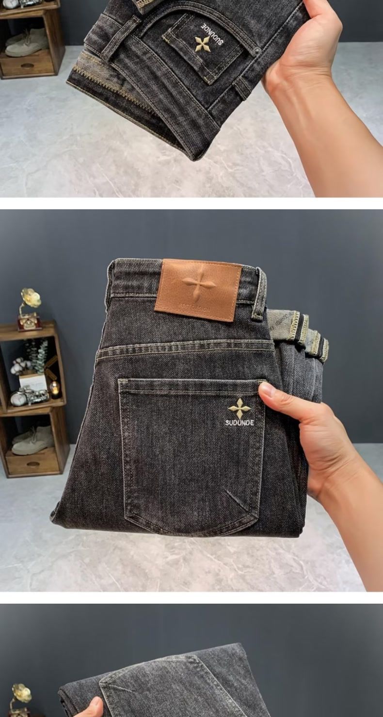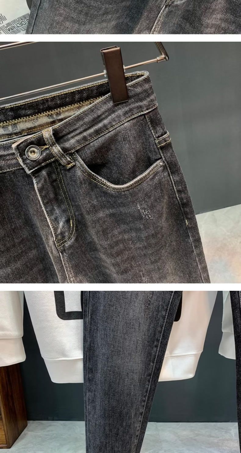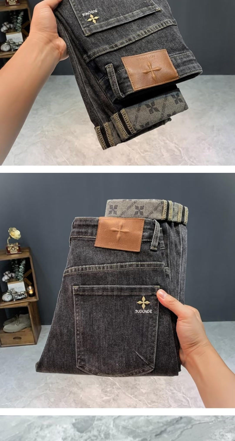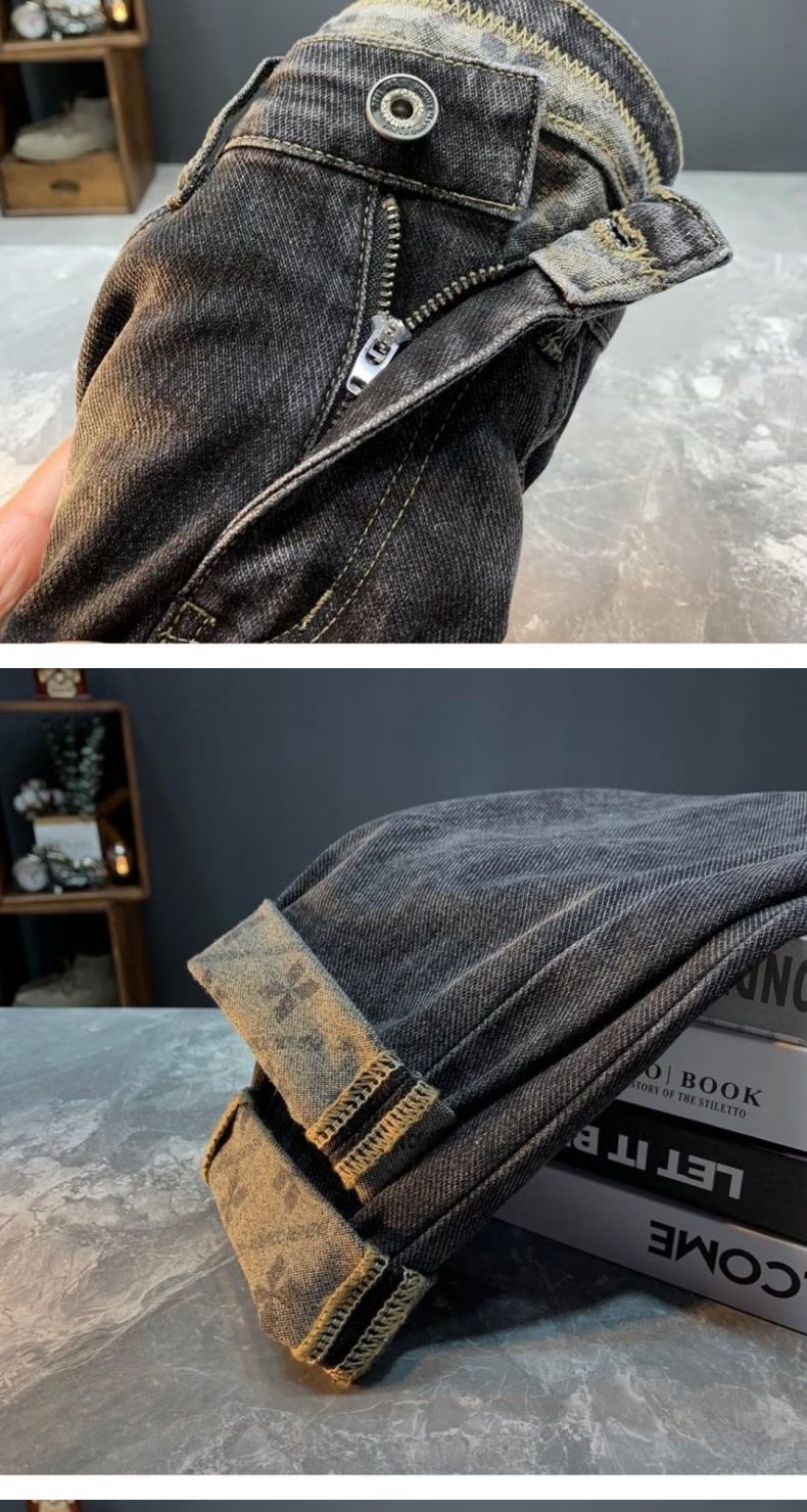 청바지 남자의 가을 새로운 하이 엔드 더피 잘 생긴 한국어 버전 작은 스트레이트 통기성 올 매치 트렌디 인쇄 슬림 핏 긴 바지스토어 가기
