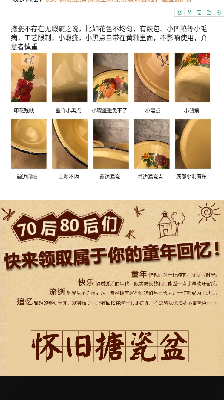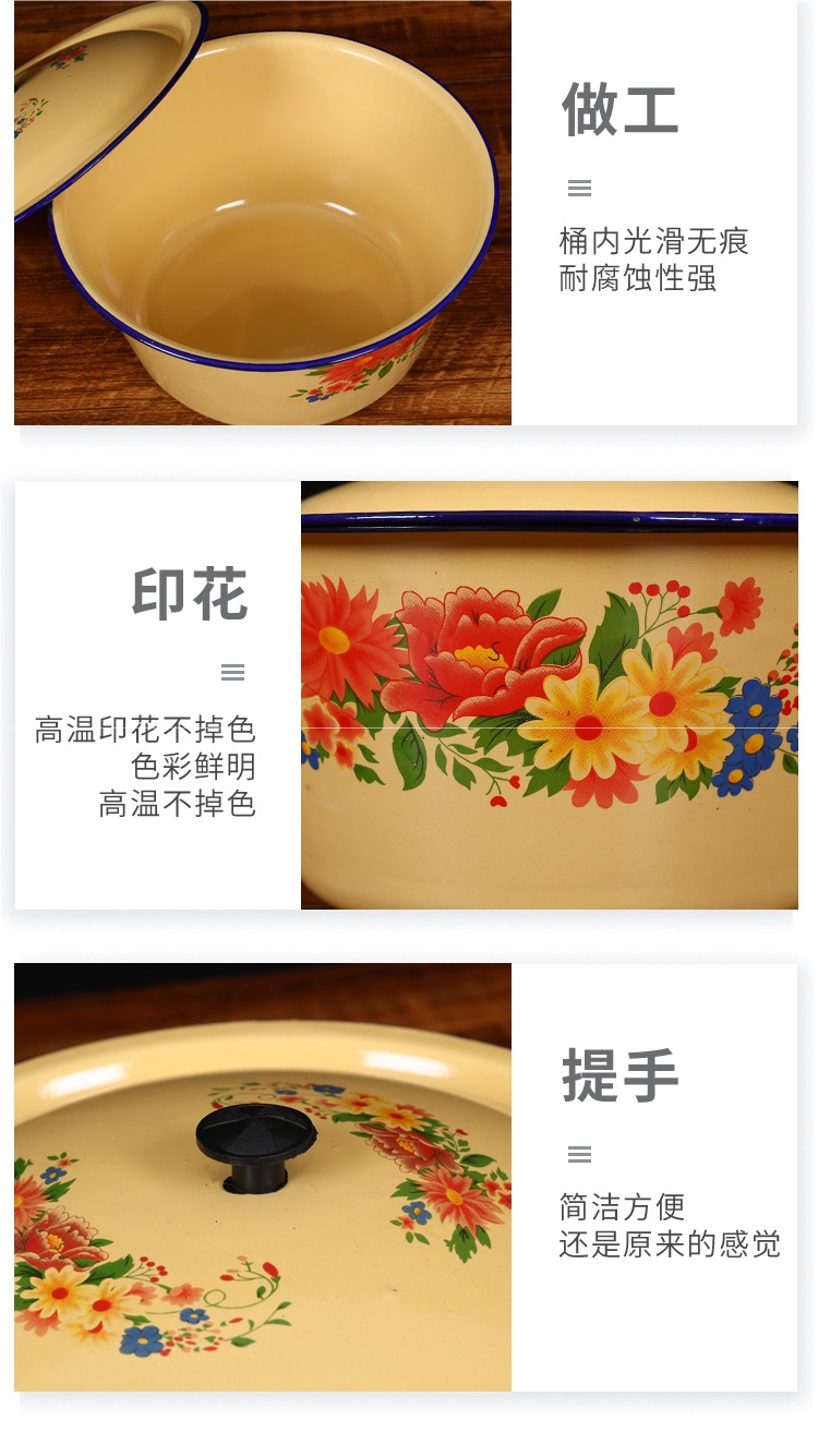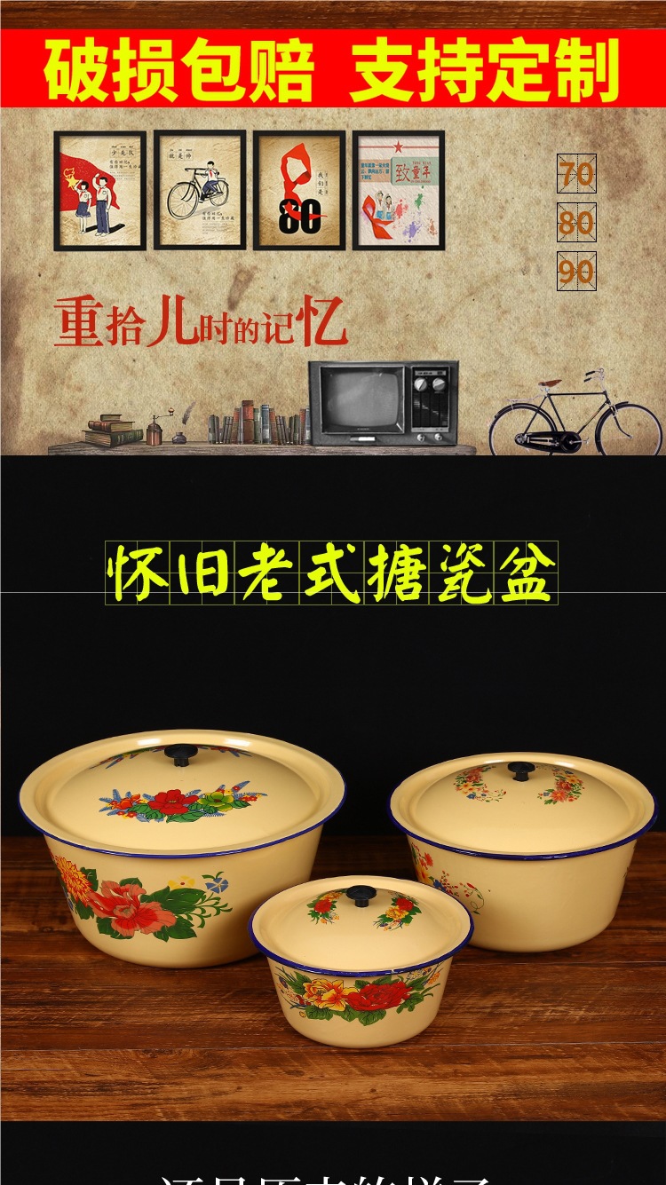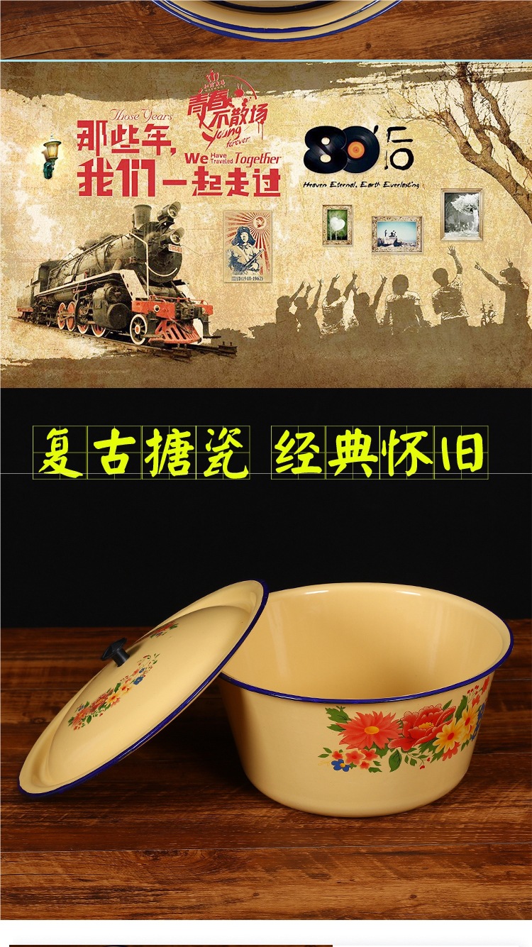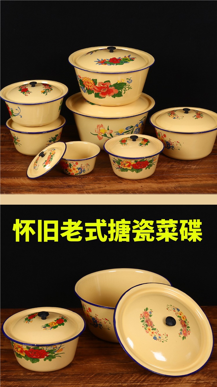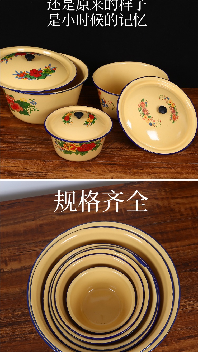 뚜껑이 있는 구식 에나멜 세면대, 향수를 불러일으키는 뚜껑이 있는 세면대, 믹싱 그릇, 반죽 그릇, 빈대 그릇, 전골 레스토랑 복고풍 조미료 그릇스토어 가기