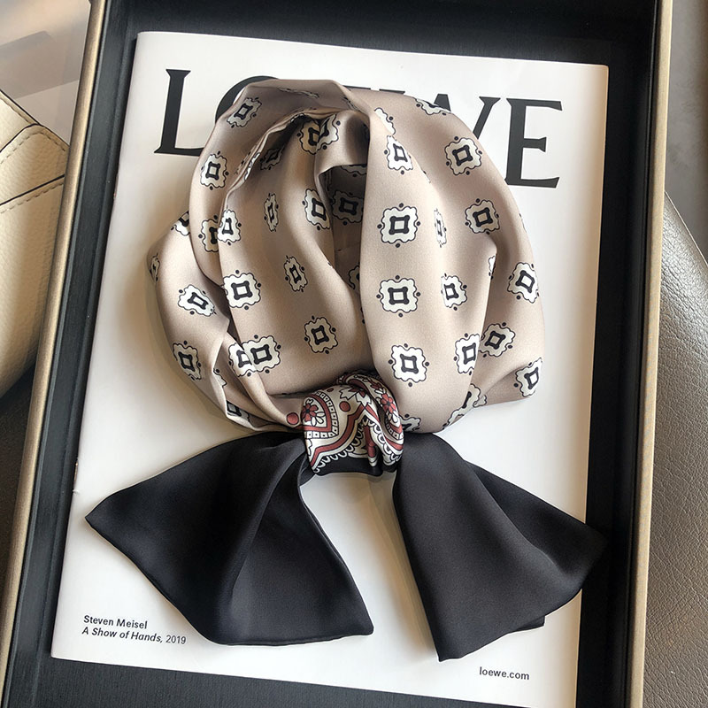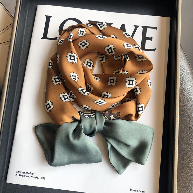 유럽과 미국의 스타일 빈티지 스티칭 컬러 매칭 실크 더블 레이어 플랫 앵글 롱 실크 스카프 여성의 프랑스 스타일 타이 백 헤어 벨트 비즈니스 착용