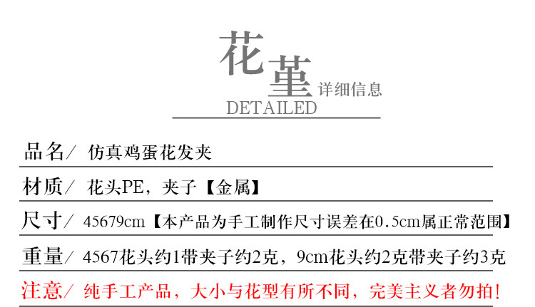 국경 간 재고 시뮬레이션 계란 꽃 헤어핀 헤드웨어 4-9cm 다이 헤어 액세서리 해변 관광 휴일 헤드웨어스토어 가기