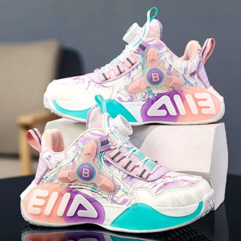 소년 농구 신발 2025 여름 새로운 어린이 운동화 소녀 회전 버튼 통기성 유행 신발 다목적 신발스토어 가기