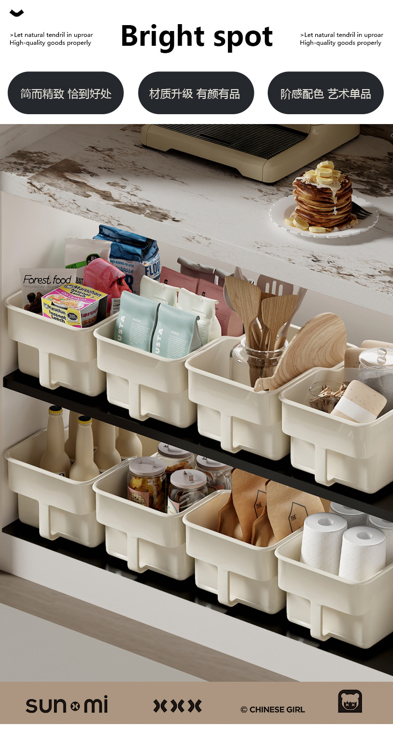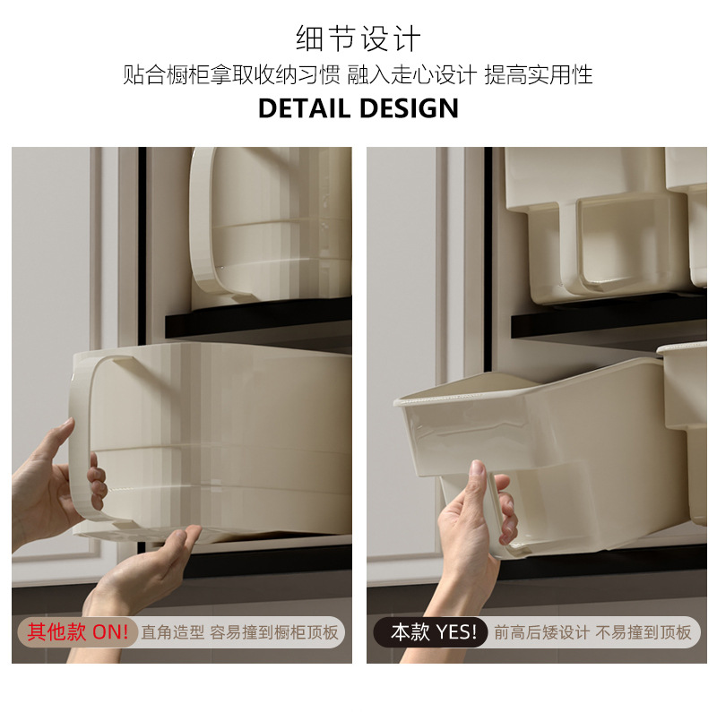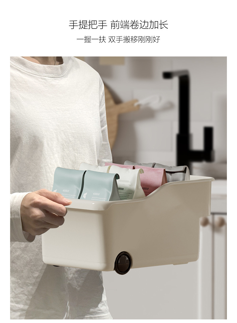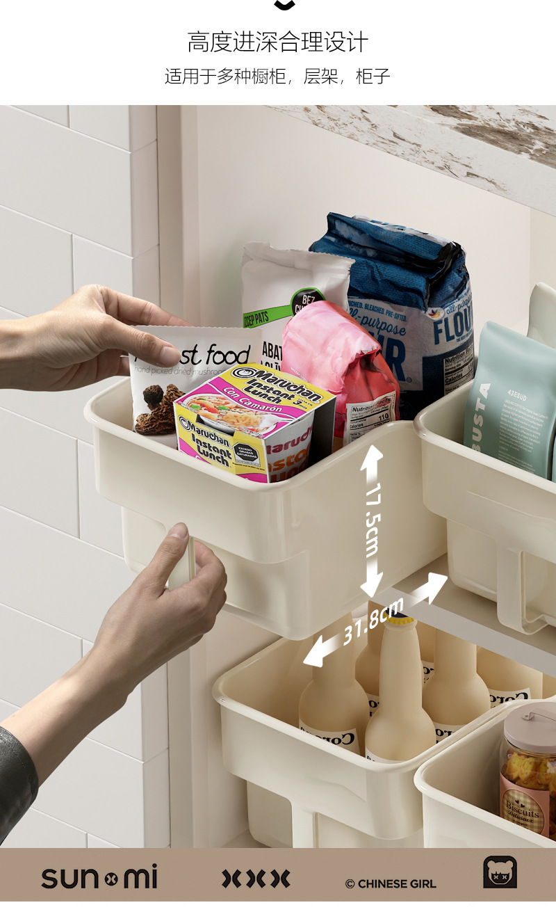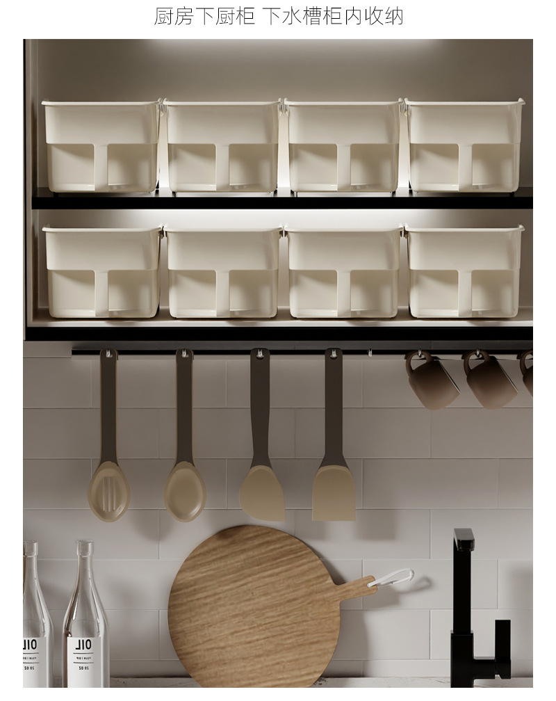 厨房厨柜内收纳盒 可放调味品 加深加高收纳盒 下水槽杂物收纳 多功能多场景适用 带滑轮 推拉便捷省力 带把手 拿取方便好抽取 吊柜收纳好帮手 高柜整理收纳盒 多功能收纳篮