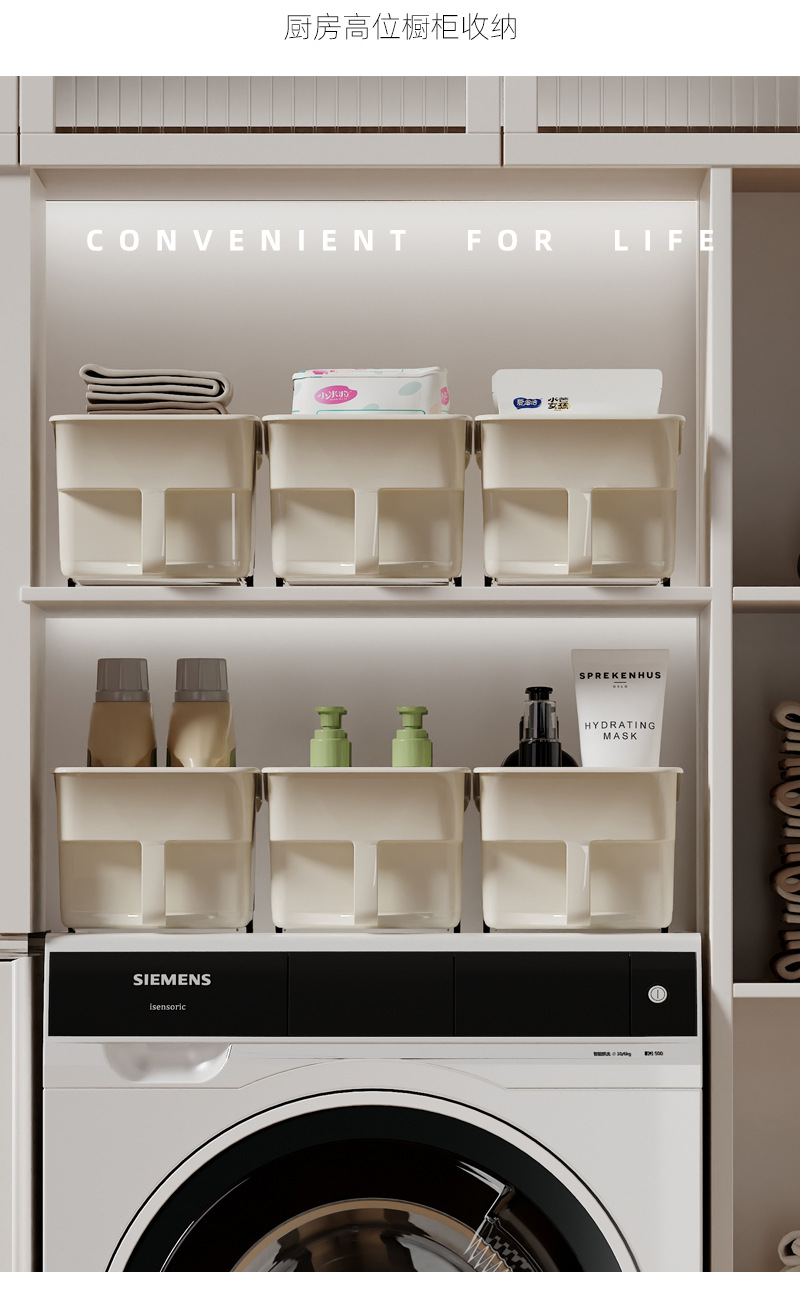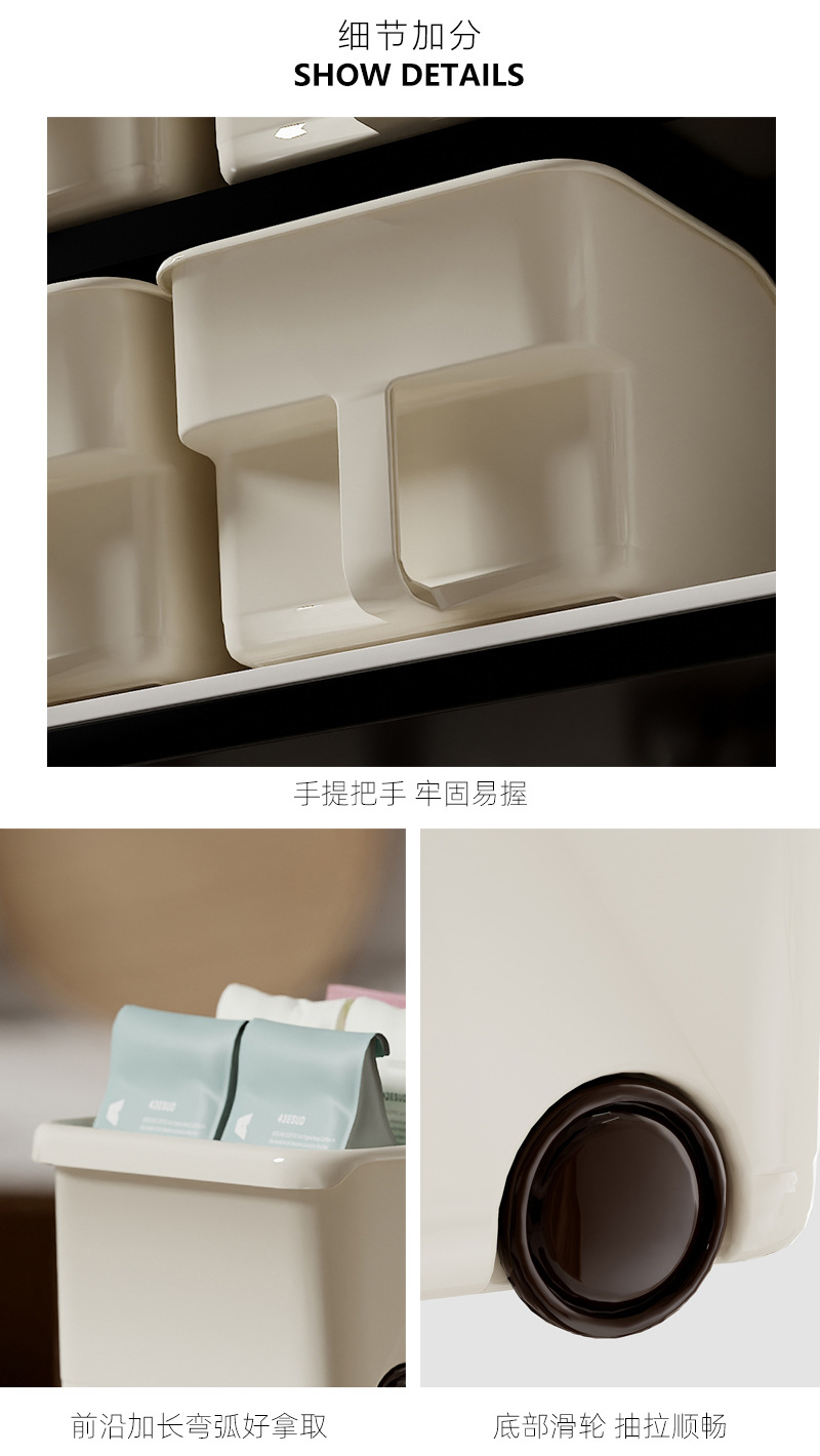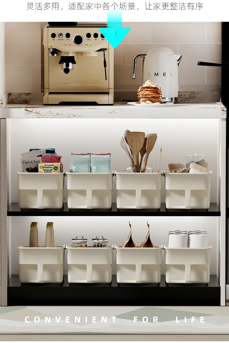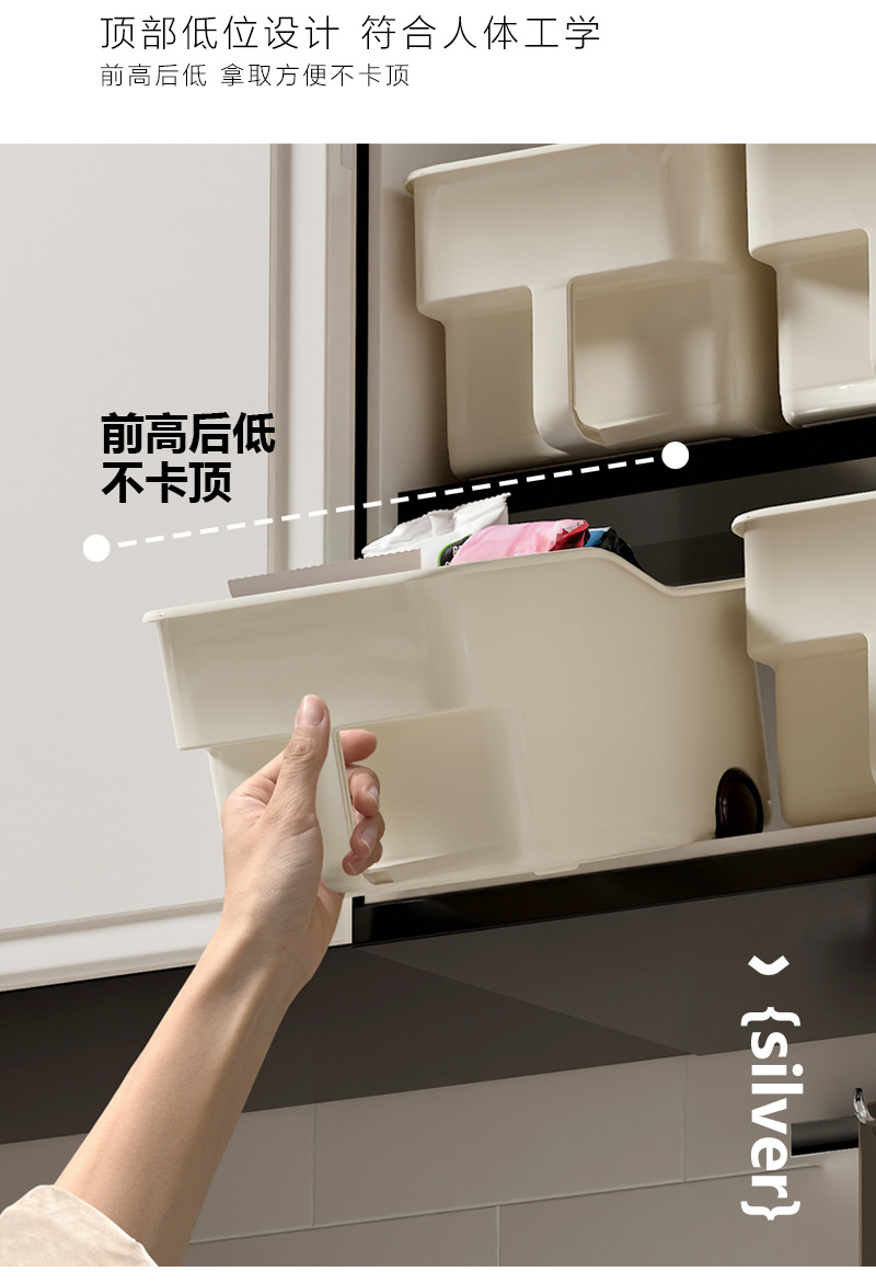 厨房厨柜内收纳盒 可放调味品 加深加高收纳盒 下水槽杂物收纳 多功能多场景适用 带滑轮 推拉便捷省力 带把手 拿取方便好抽取 吊柜收纳好帮手 高柜整理收纳盒 多功能收纳篮