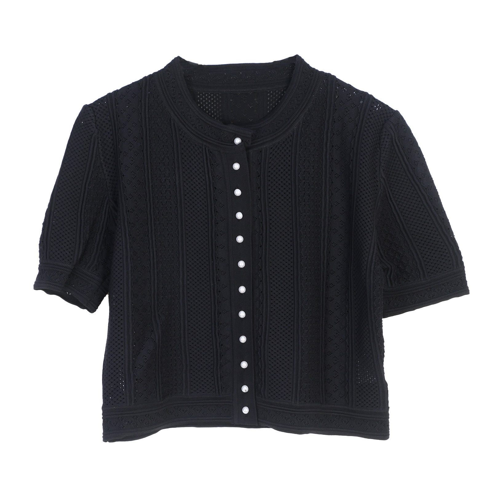 • 블랙 19513 Xiaoxiangfeng 반팔 니트 가디건