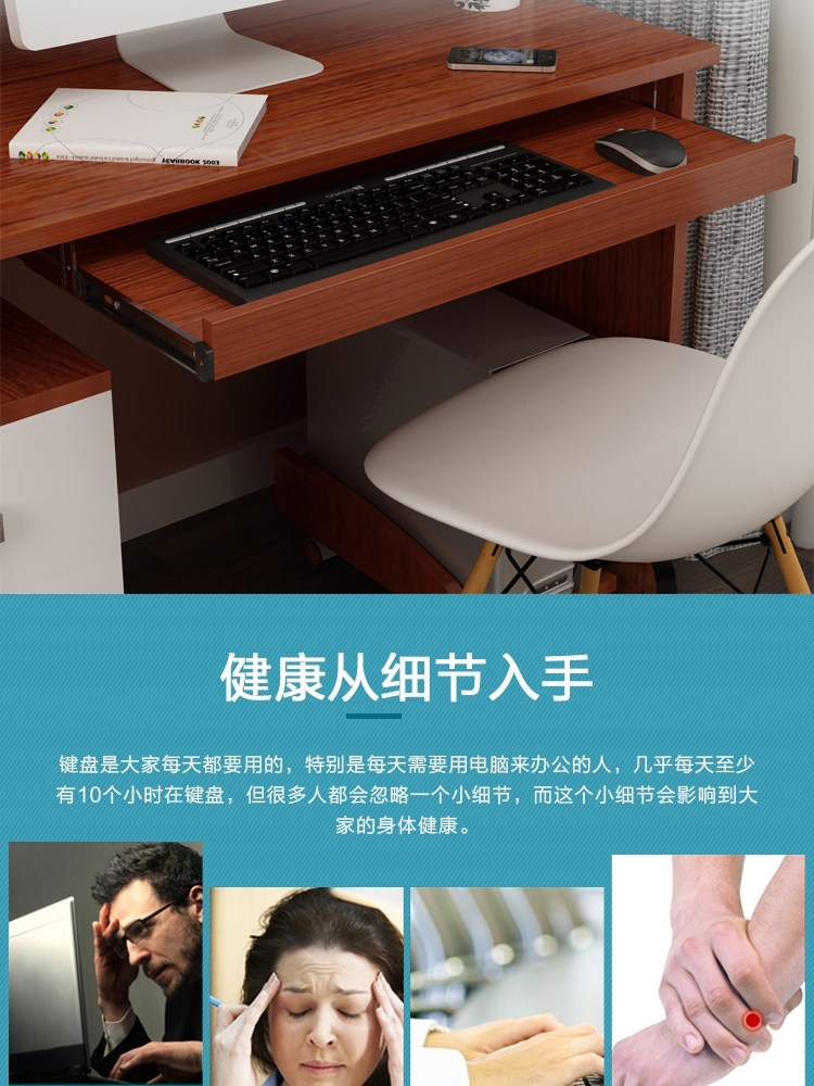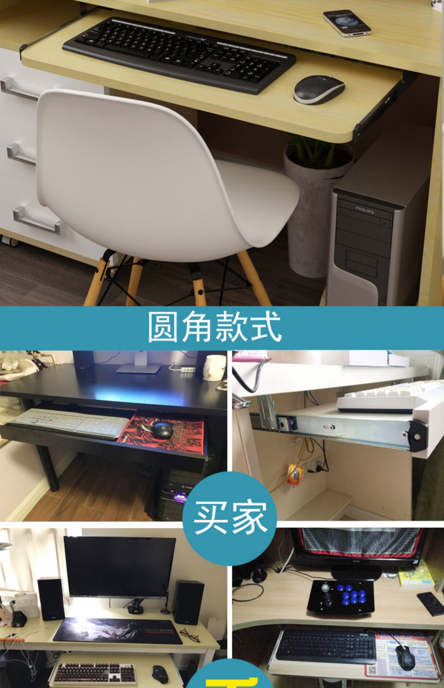 BTV4 컴퓨터 책상 아래 키보드 트레이 서랍 슬라이딩 트랙 하단 액세서리 나무 트레이 무음 교수형 키보드 드래그 프리