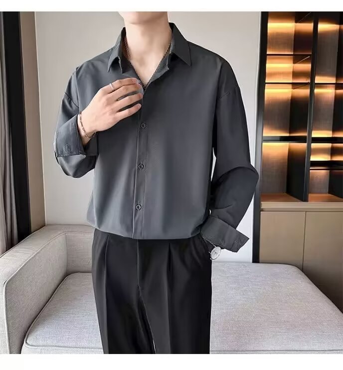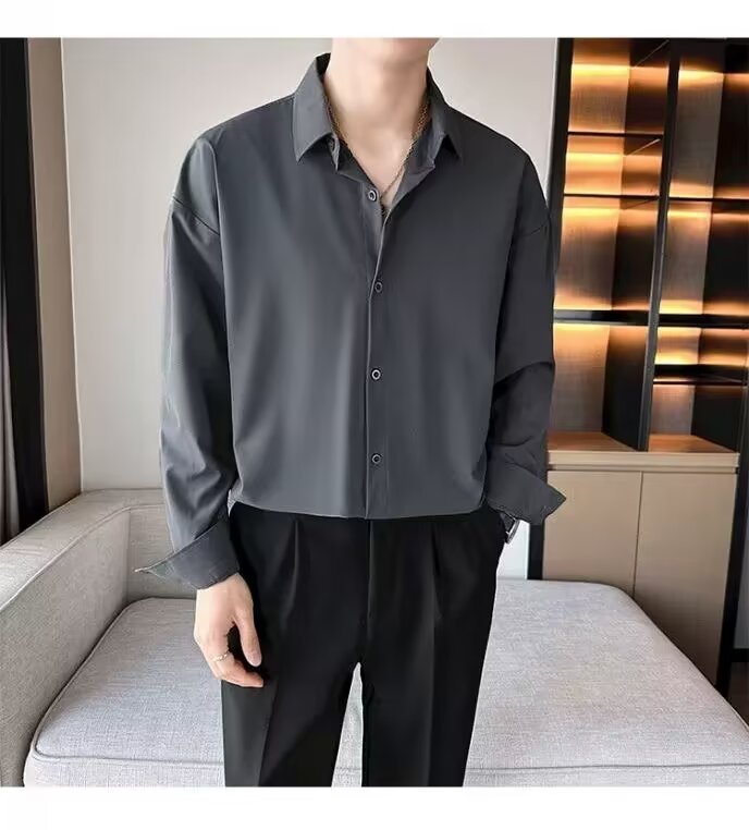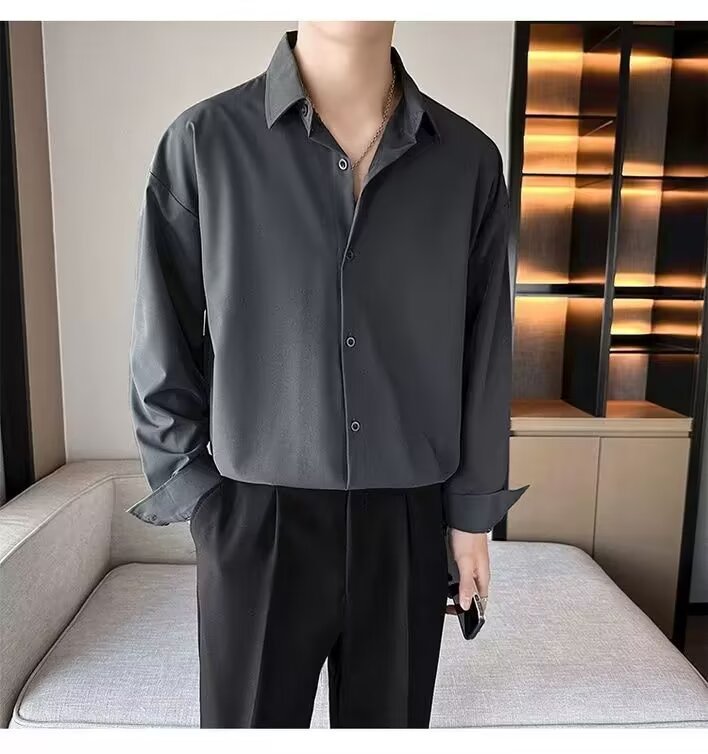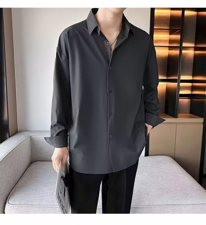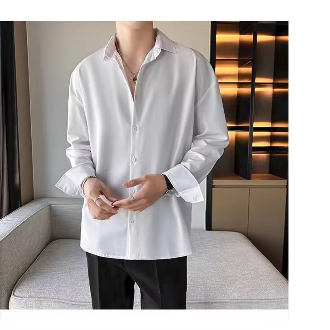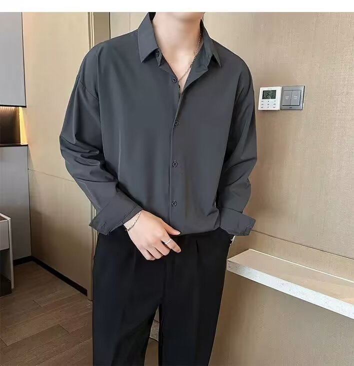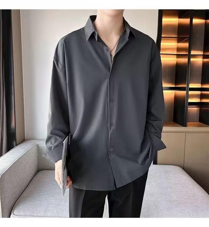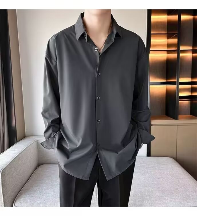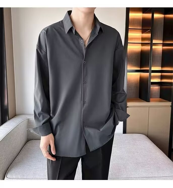 2024 아이스 실크 긴팔 셔츠 일본 홍콩 스타일 ins 루즈 셔츠 소년 여름 트렌드 다목적 캐주얼 재킷스토어 가기