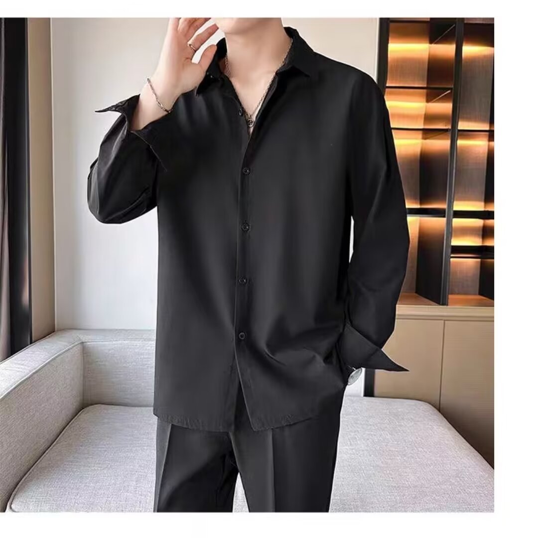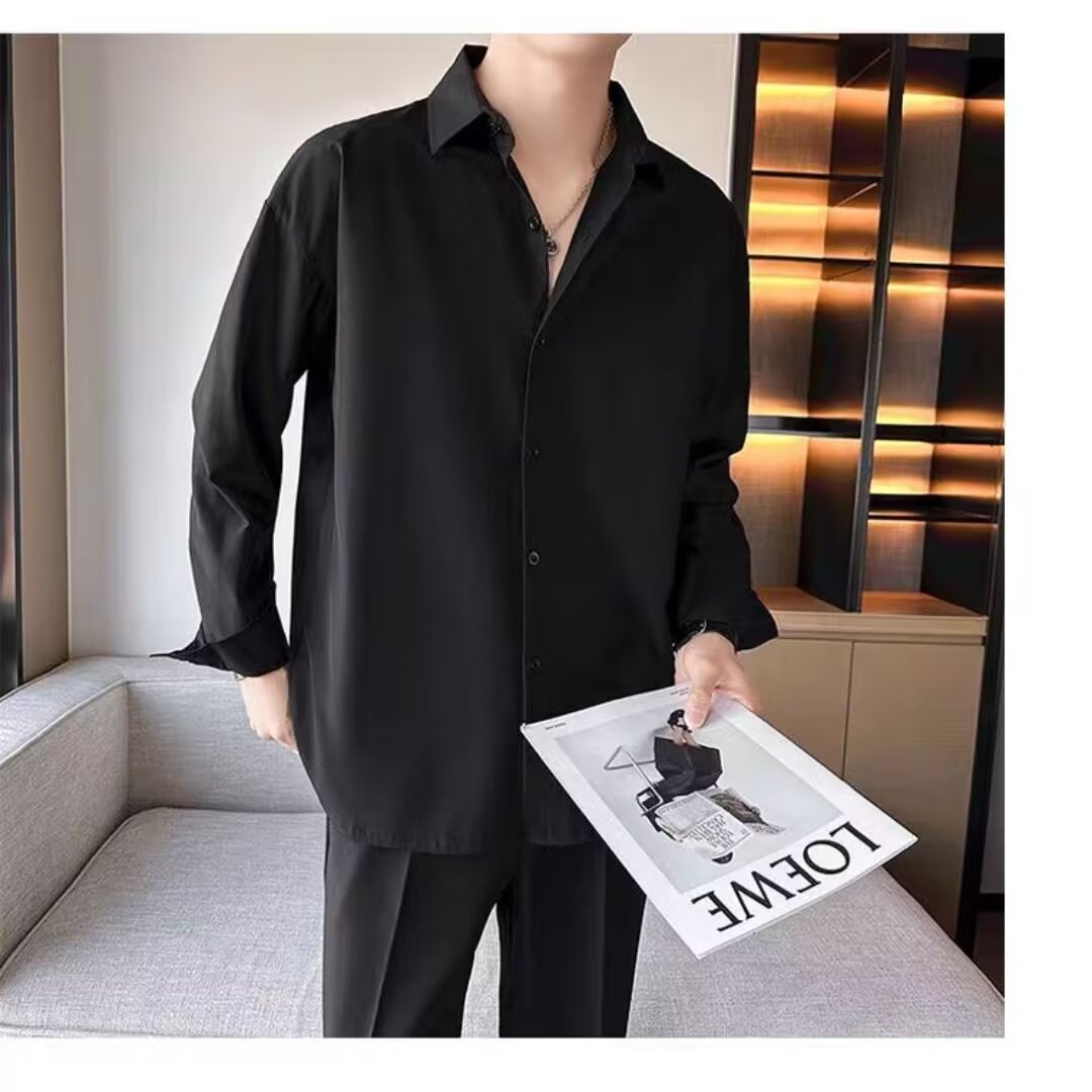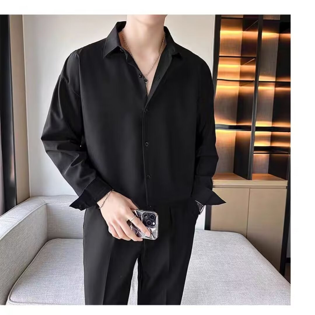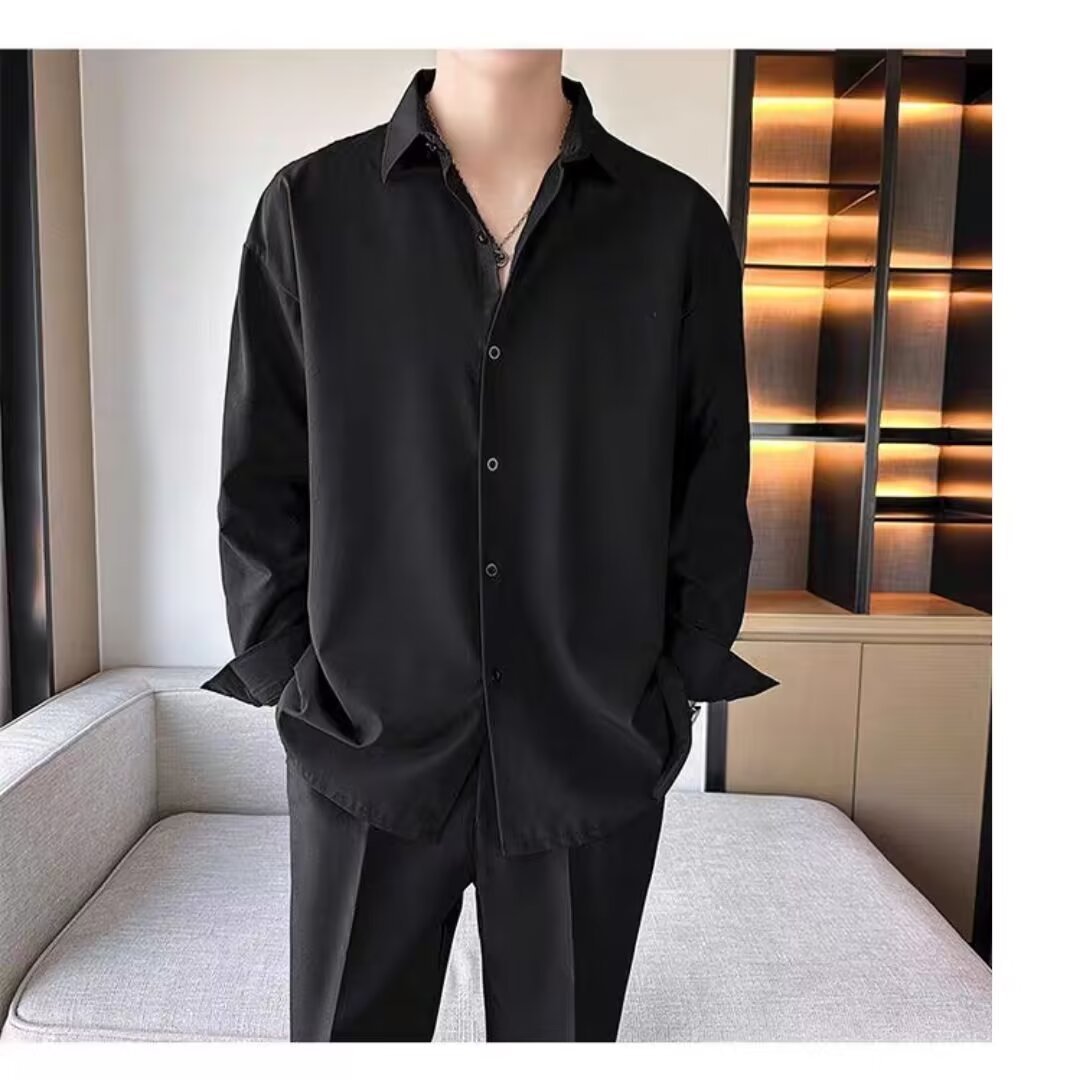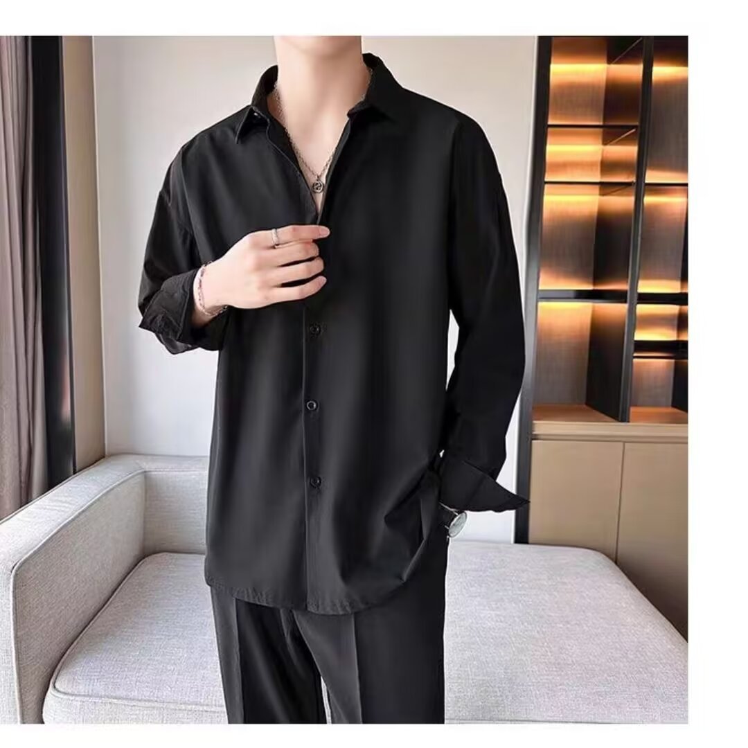 2024 아이스 실크 긴팔 셔츠 일본 홍콩 스타일 ins 루즈 셔츠 소년 여름 트렌드 다목적 캐주얼 재킷스토어 가기