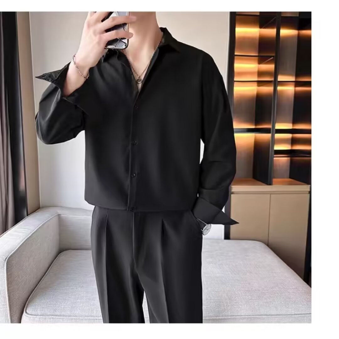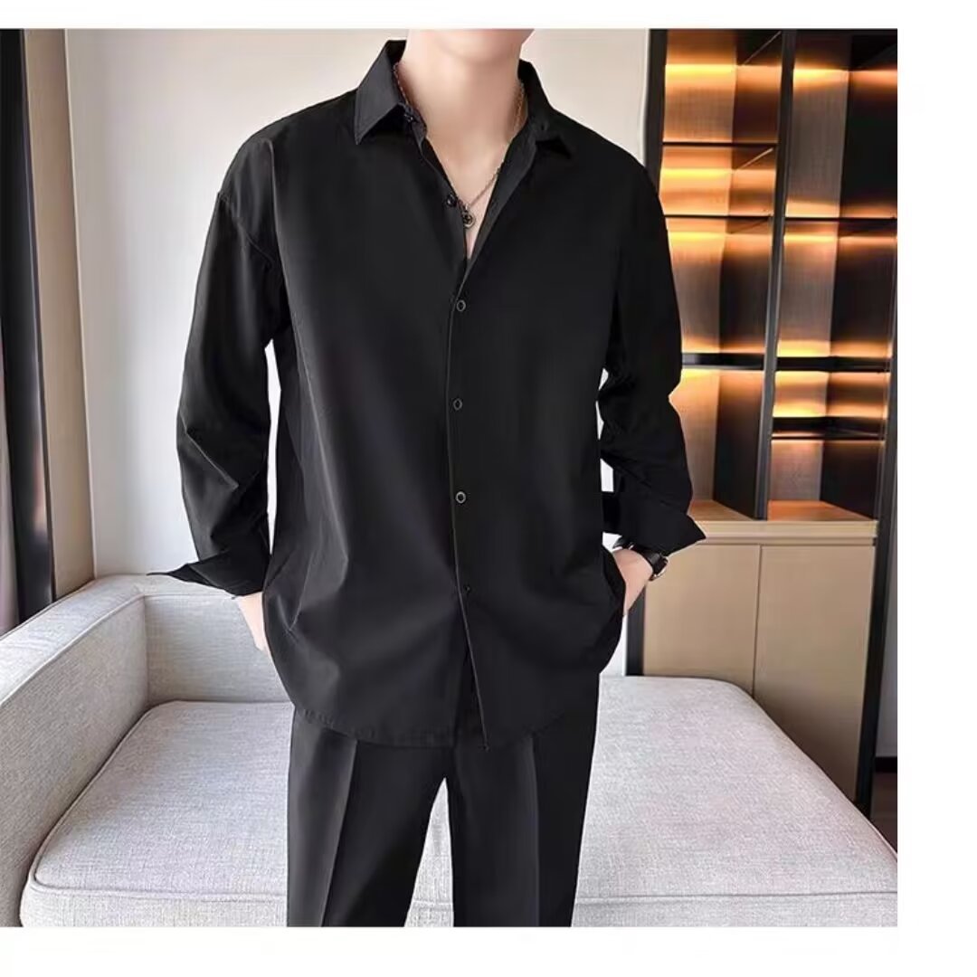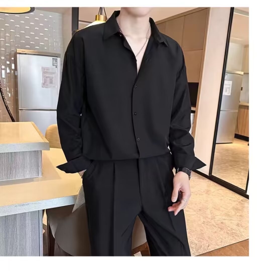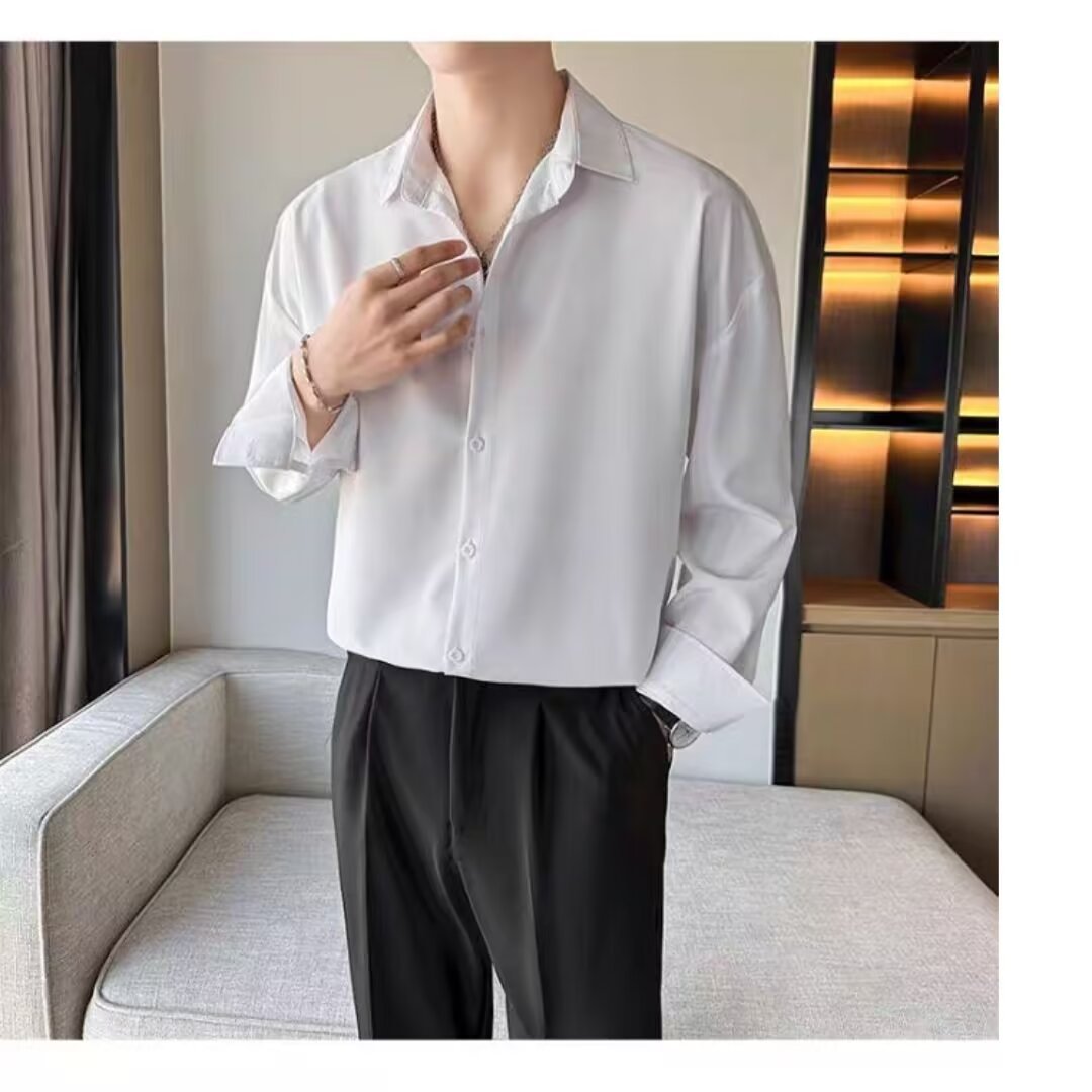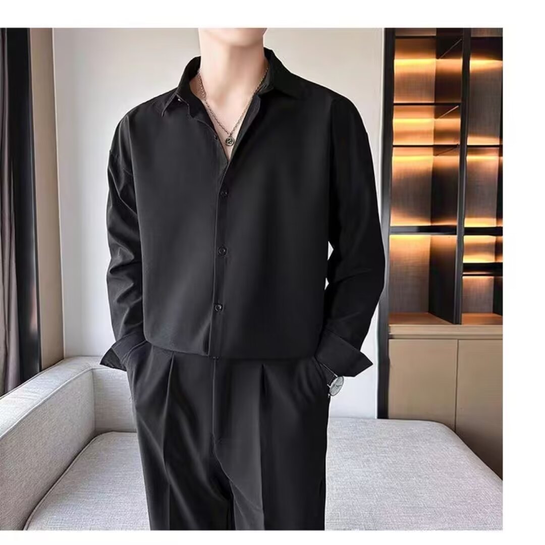 2024 아이스 실크 긴팔 셔츠 일본 홍콩 스타일 ins 루즈 셔츠 소년 여름 트렌드 다목적 캐주얼 재킷스토어 가기