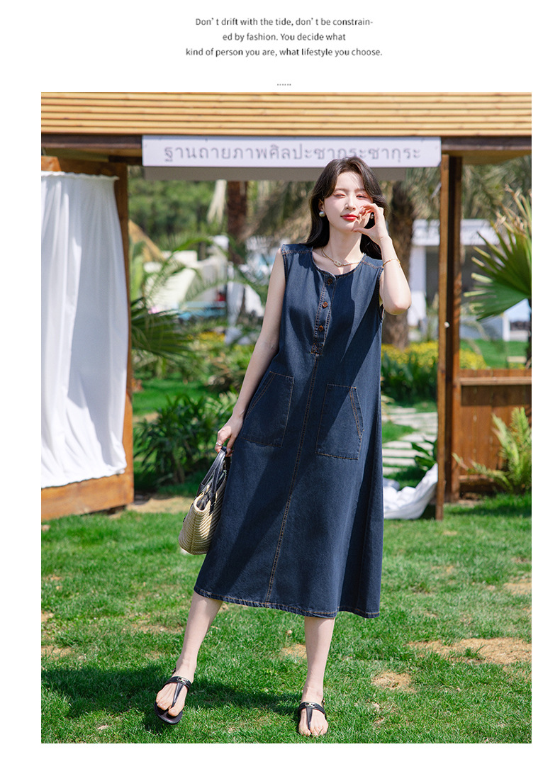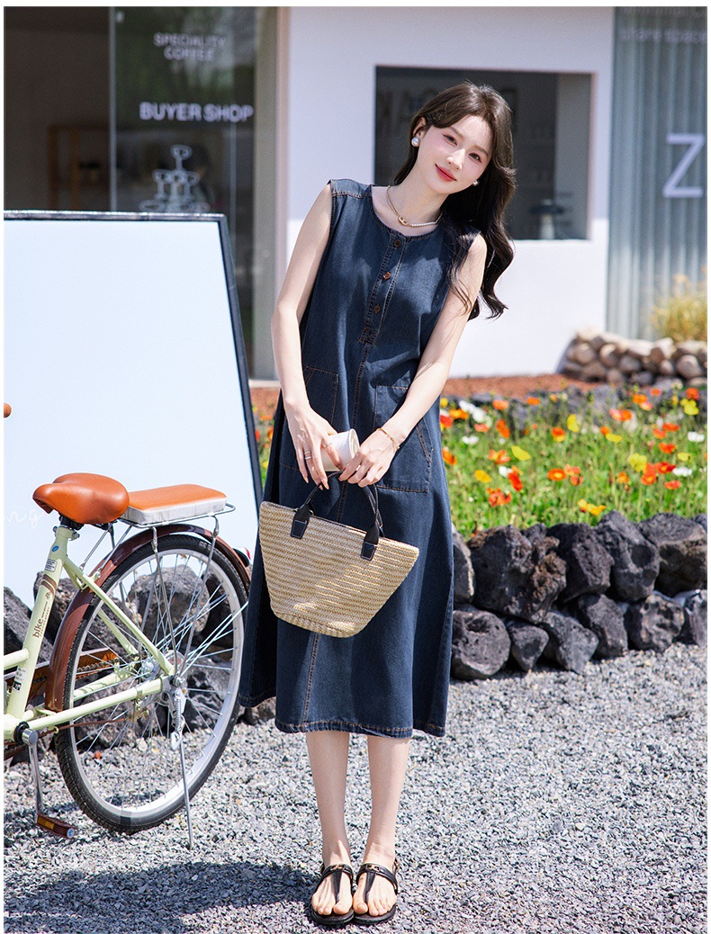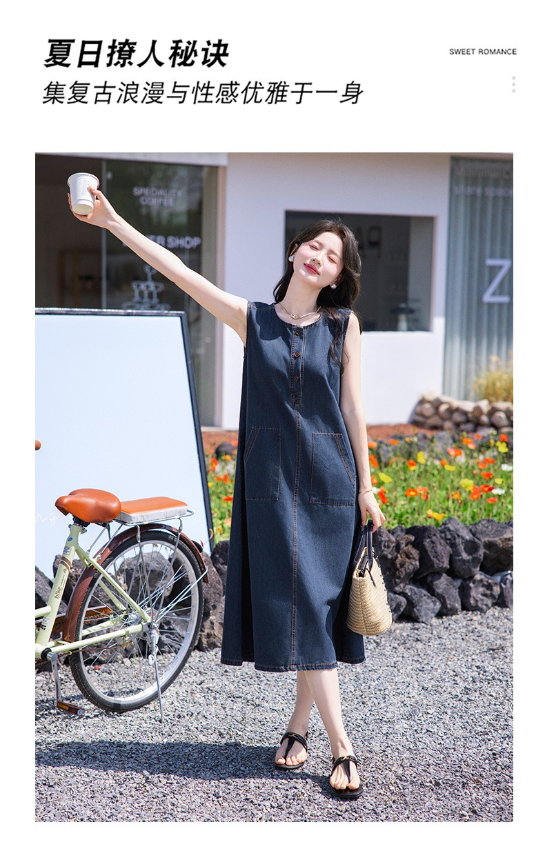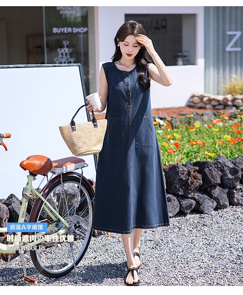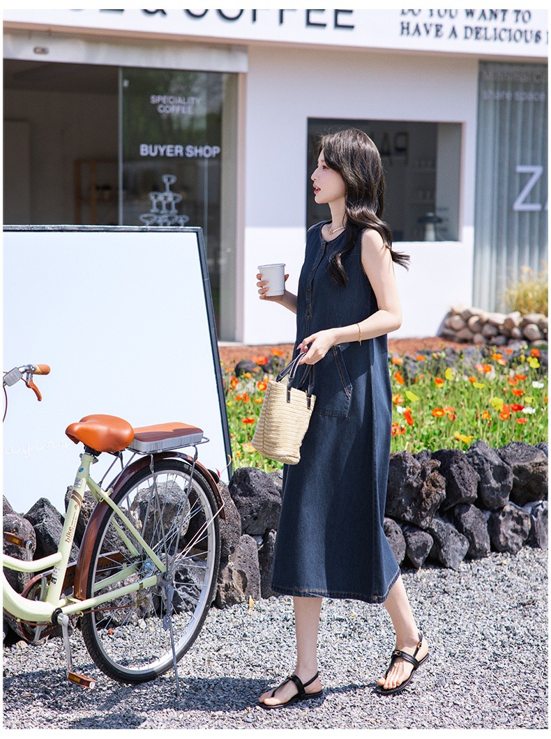 홍콩 스타일 레트로 민소매 조끼 데님 원피스 여름 느슨한 우아한 나이 감소 한국 스타일 긴 원피스스토어 가기