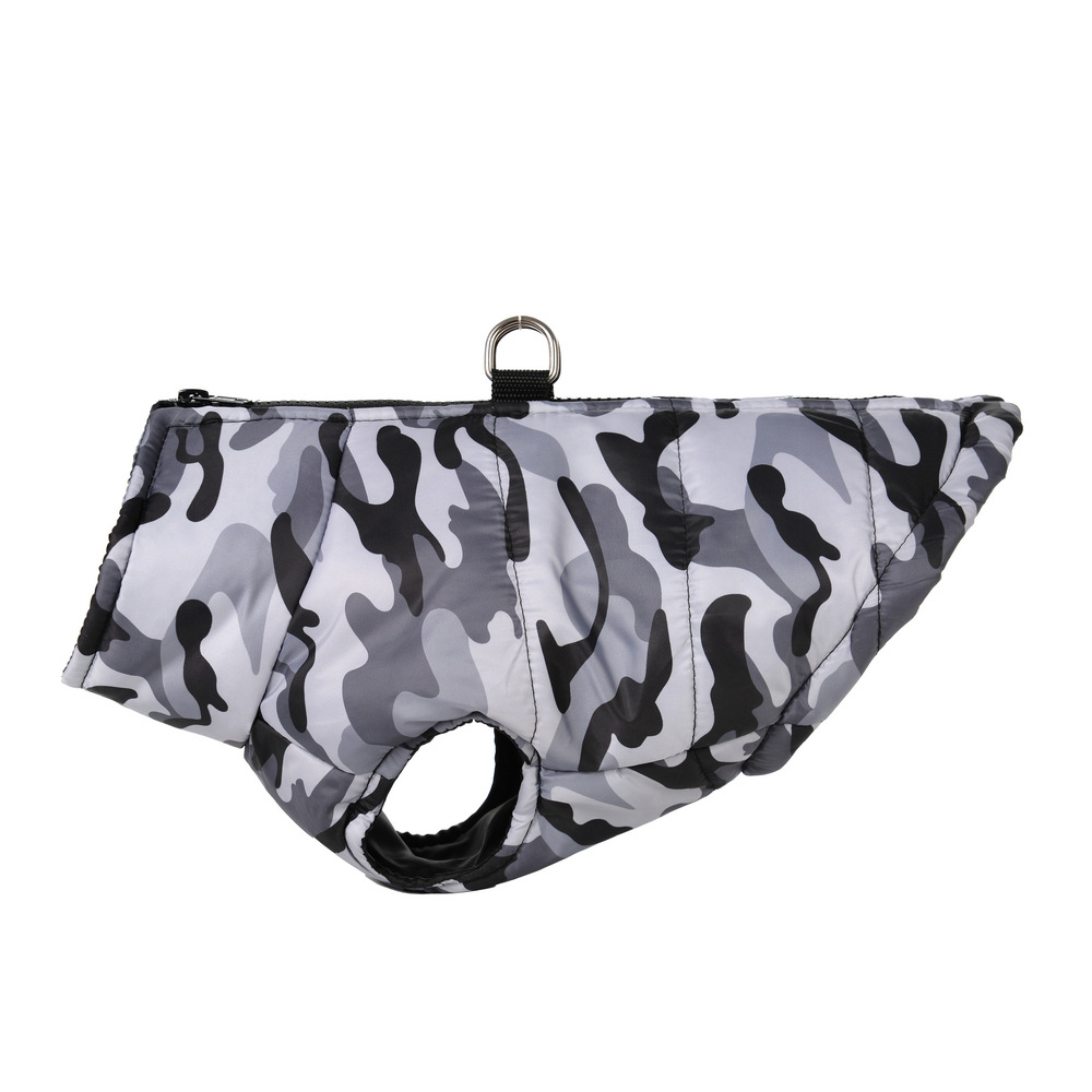 가을, 겨울 두꺼운 애완견 옷 위장 중형 및 대형견 지퍼 견인 구멍 조끼 방수 스키 복