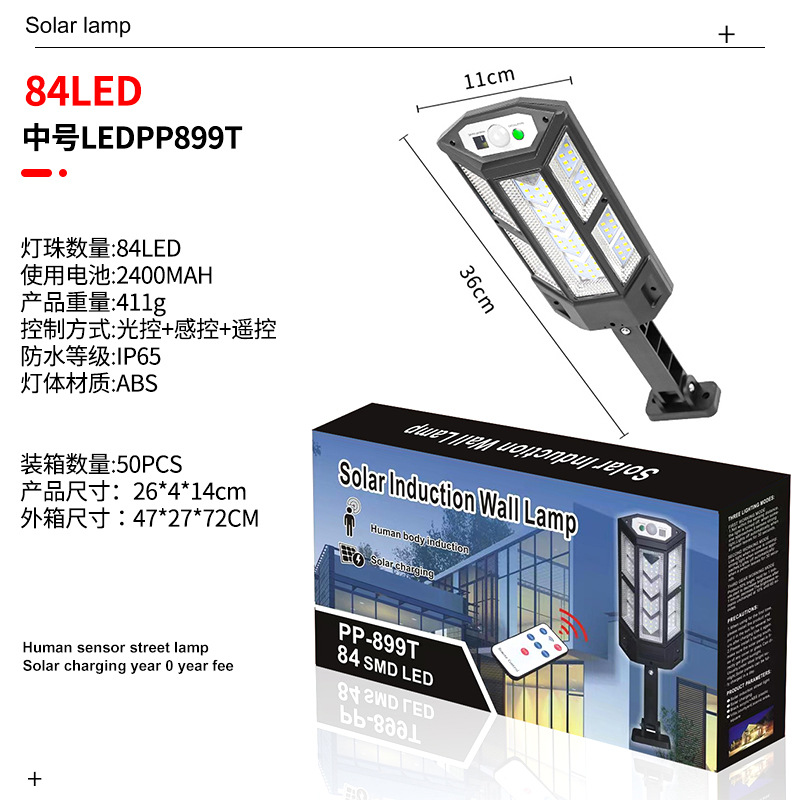 국경 간 태양 광 어두운 자동 야외 정원 조명 인체 유도 조명 통합 태양 가로등